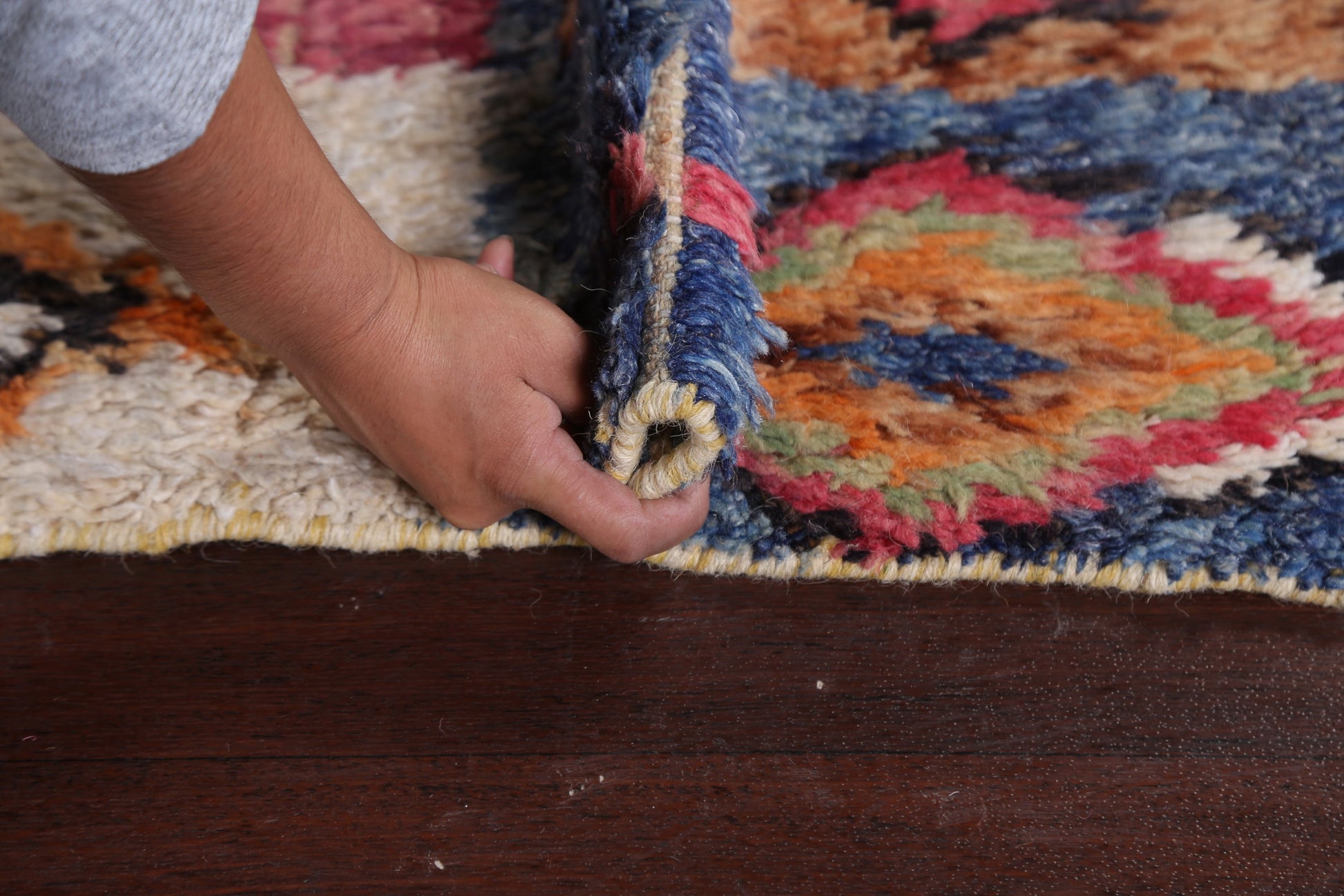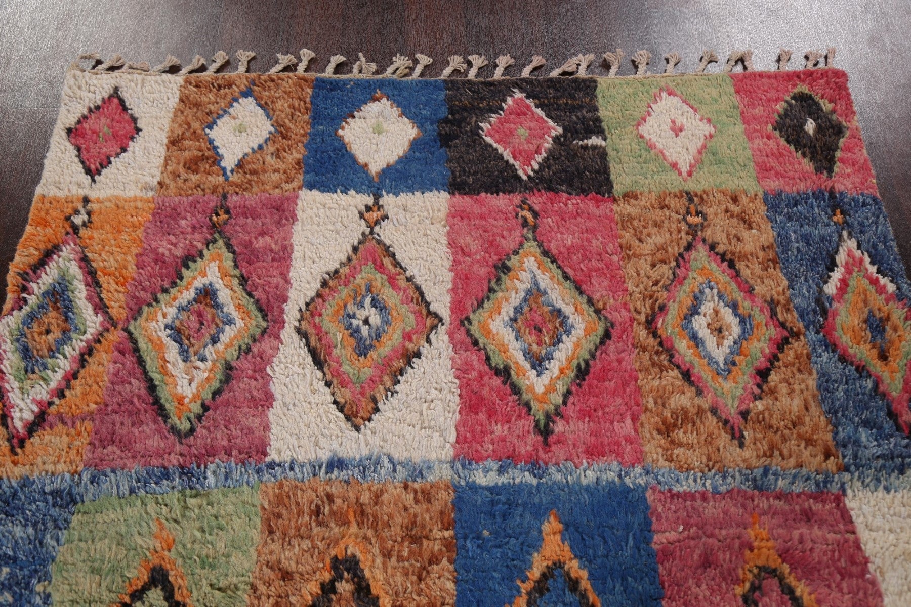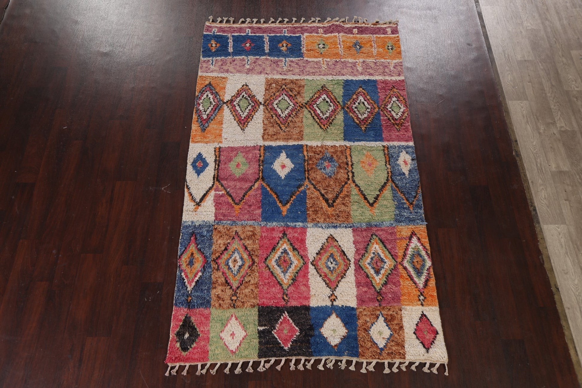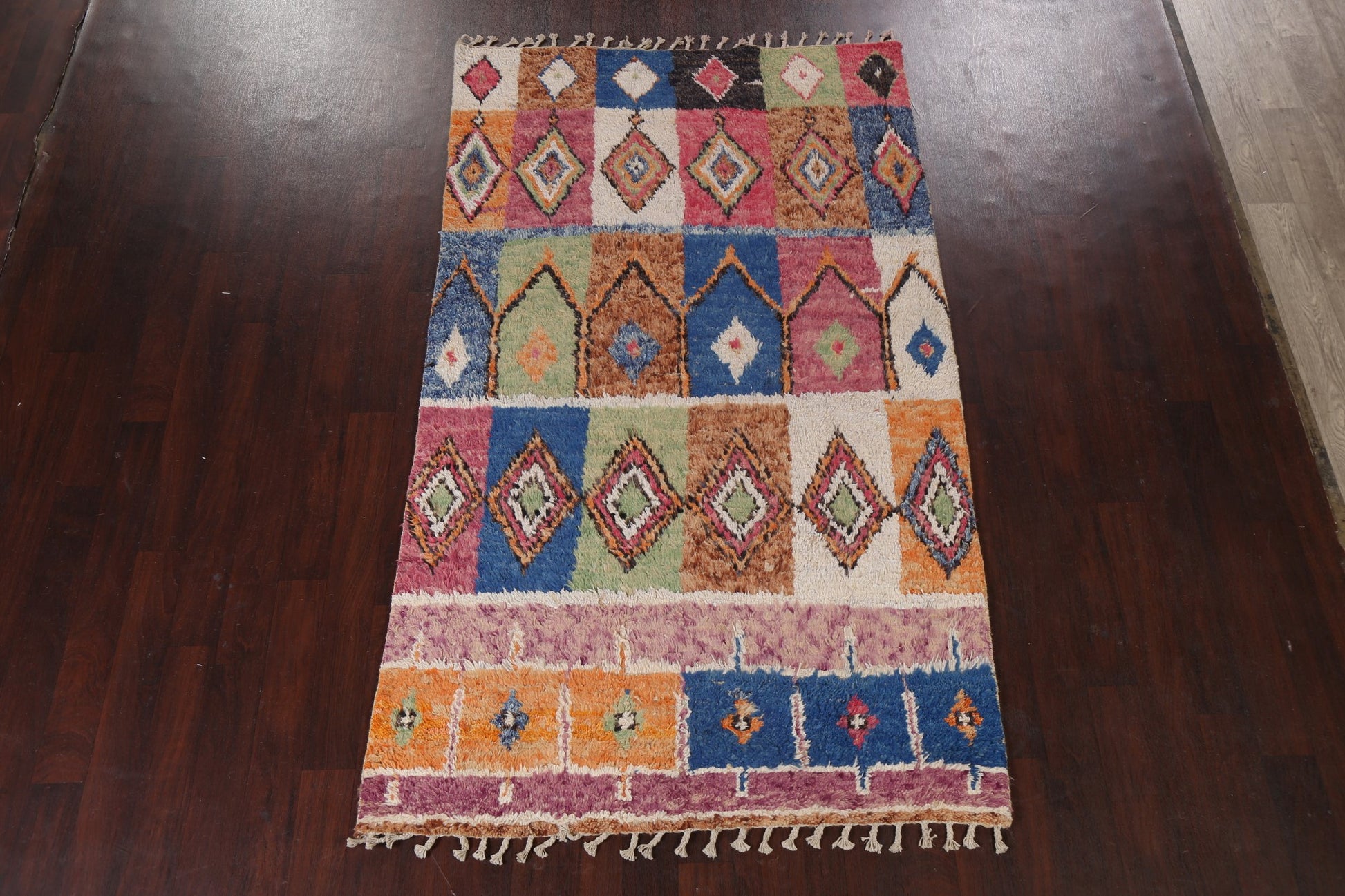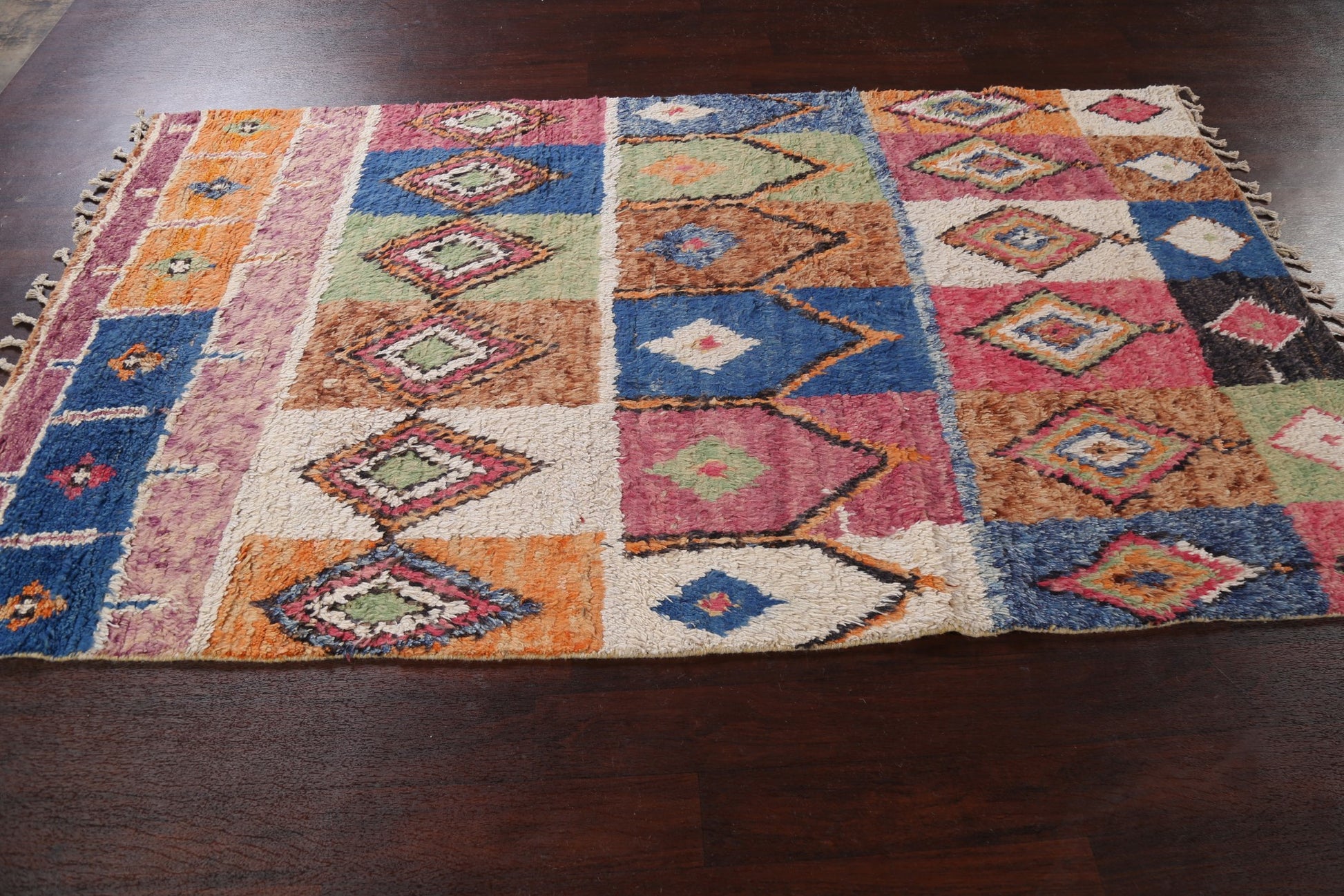 A Beautiful Genuine Morocco Moroccan rug is Hand Knotted by skillful weavers in Morocco with 100% Wool Material. This rug is in New, First Quality condition. dimensions are 8' 5'' X 4' 11'' in foot and 257 X 150 in centimeter. the primary color is Multi-Colored.