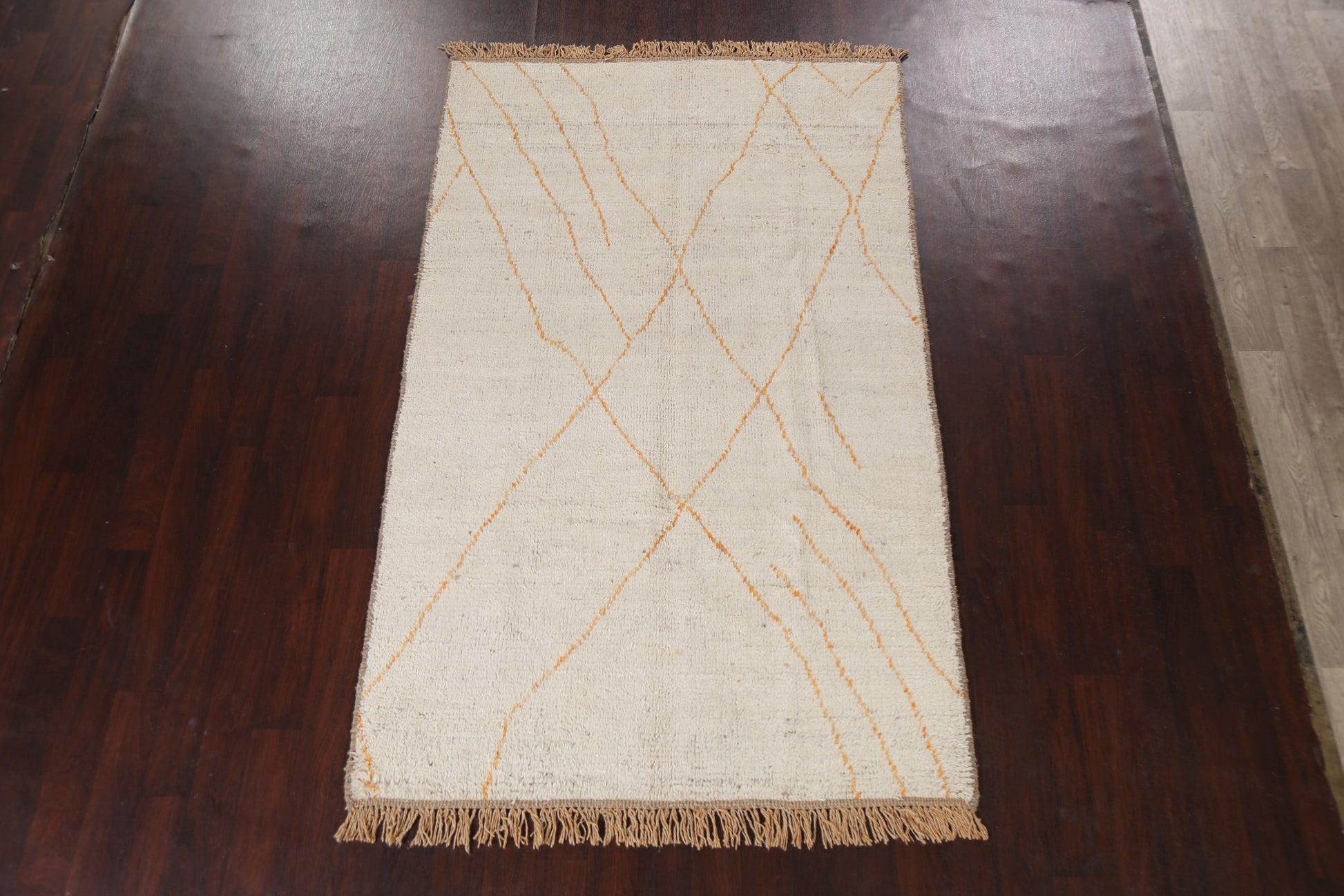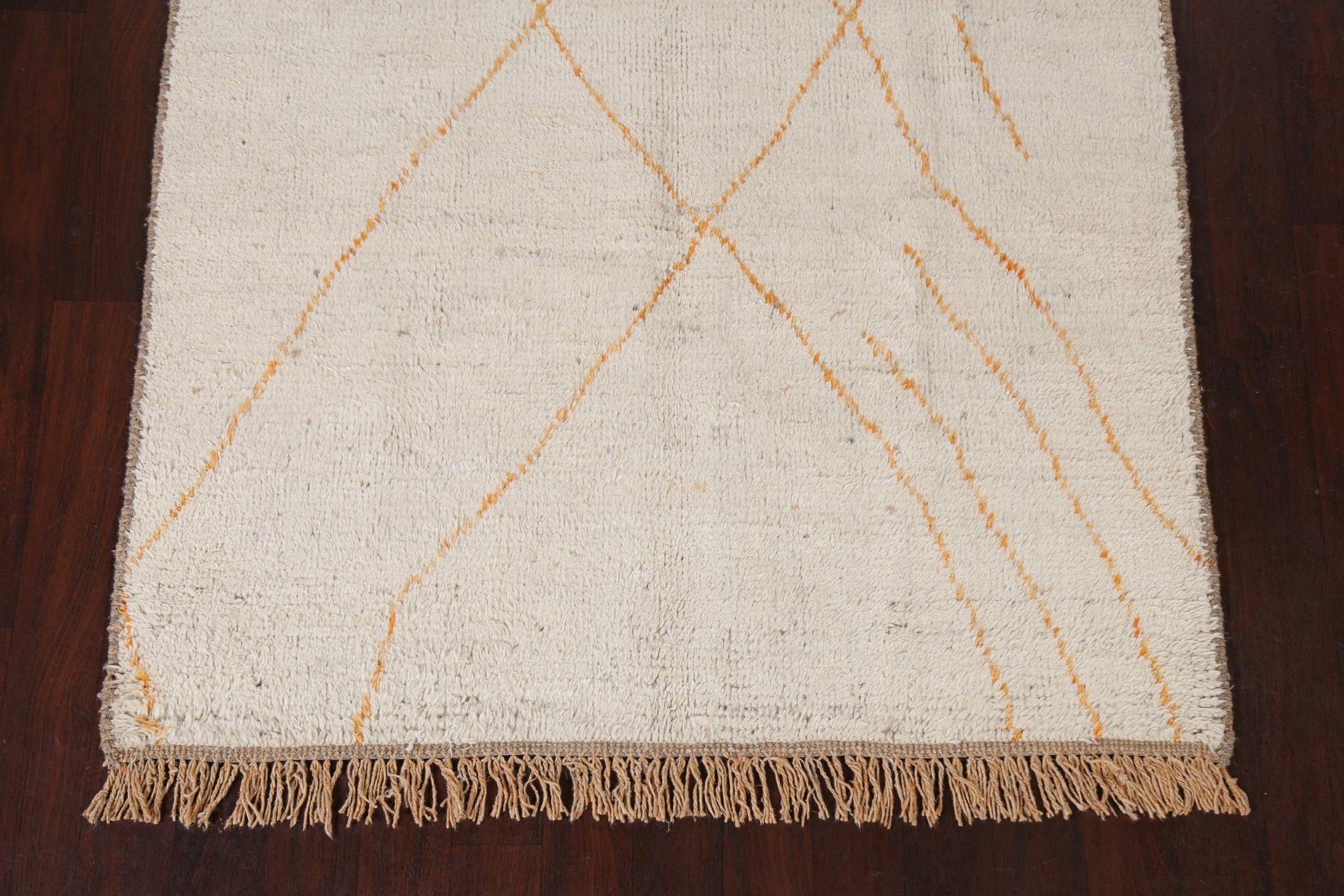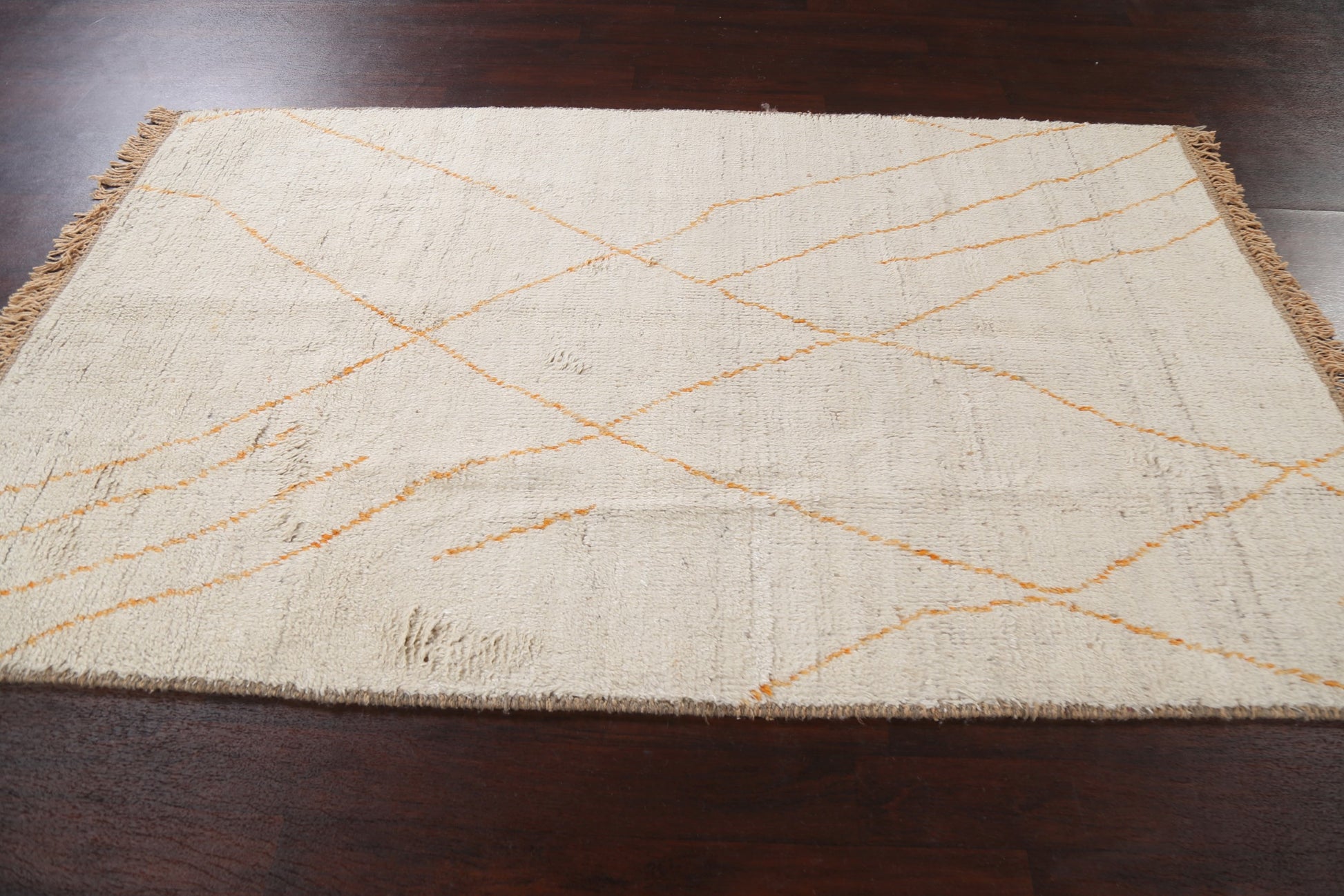 A Beautiful Genuine Morocco Moroccan rug is Hand Knotted by skillful weavers in Morocco with 100% Wool Material. This rug is in New, First Quality condition. dimensions are 8' 5'' X 5' 1'' in foot and 257 X 155 in centimeter. the primary color is Beige & Ivories.