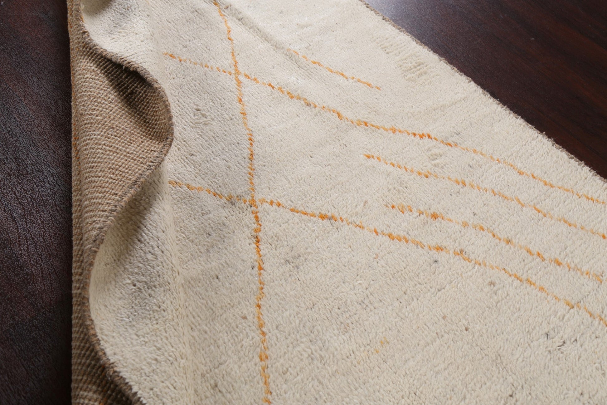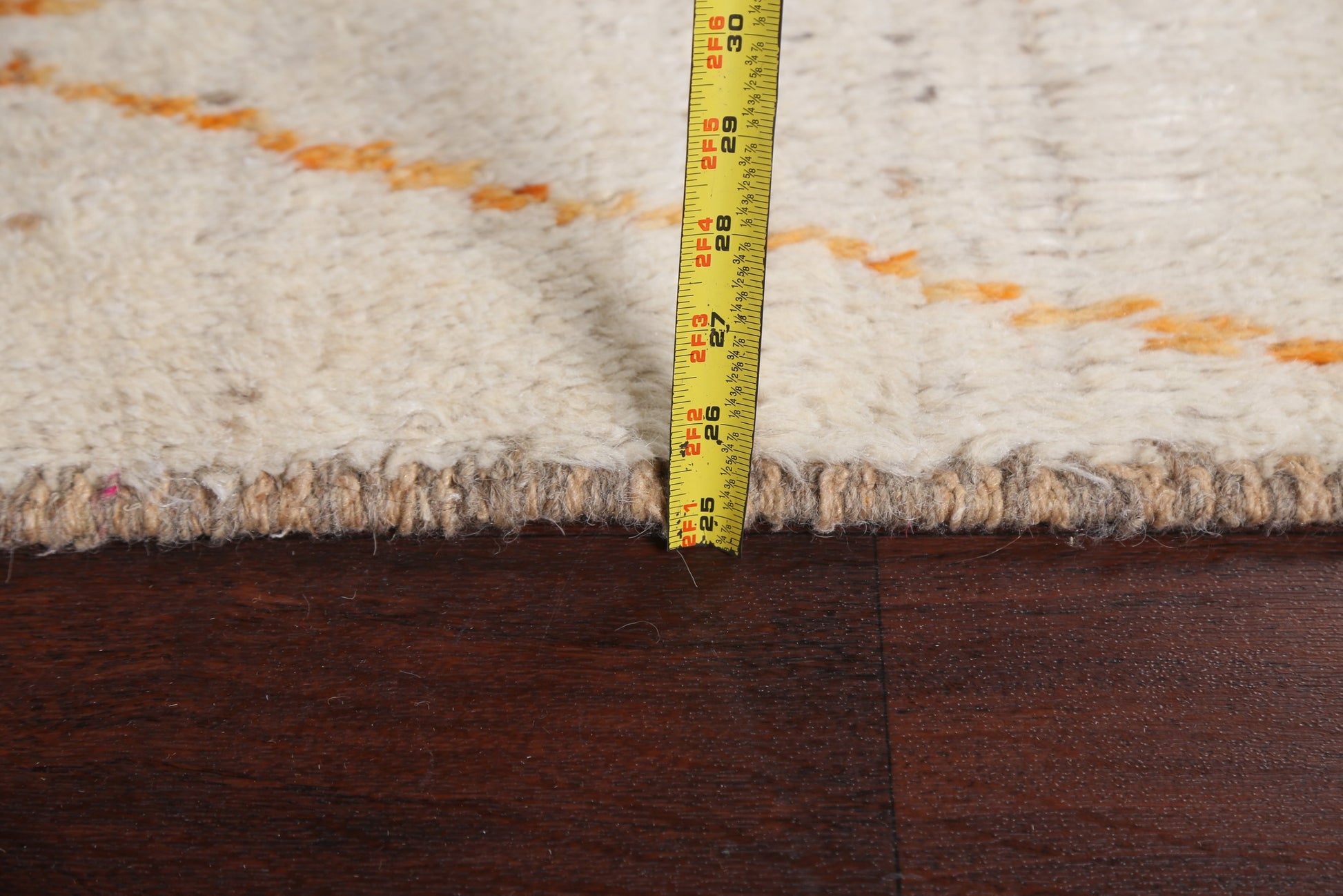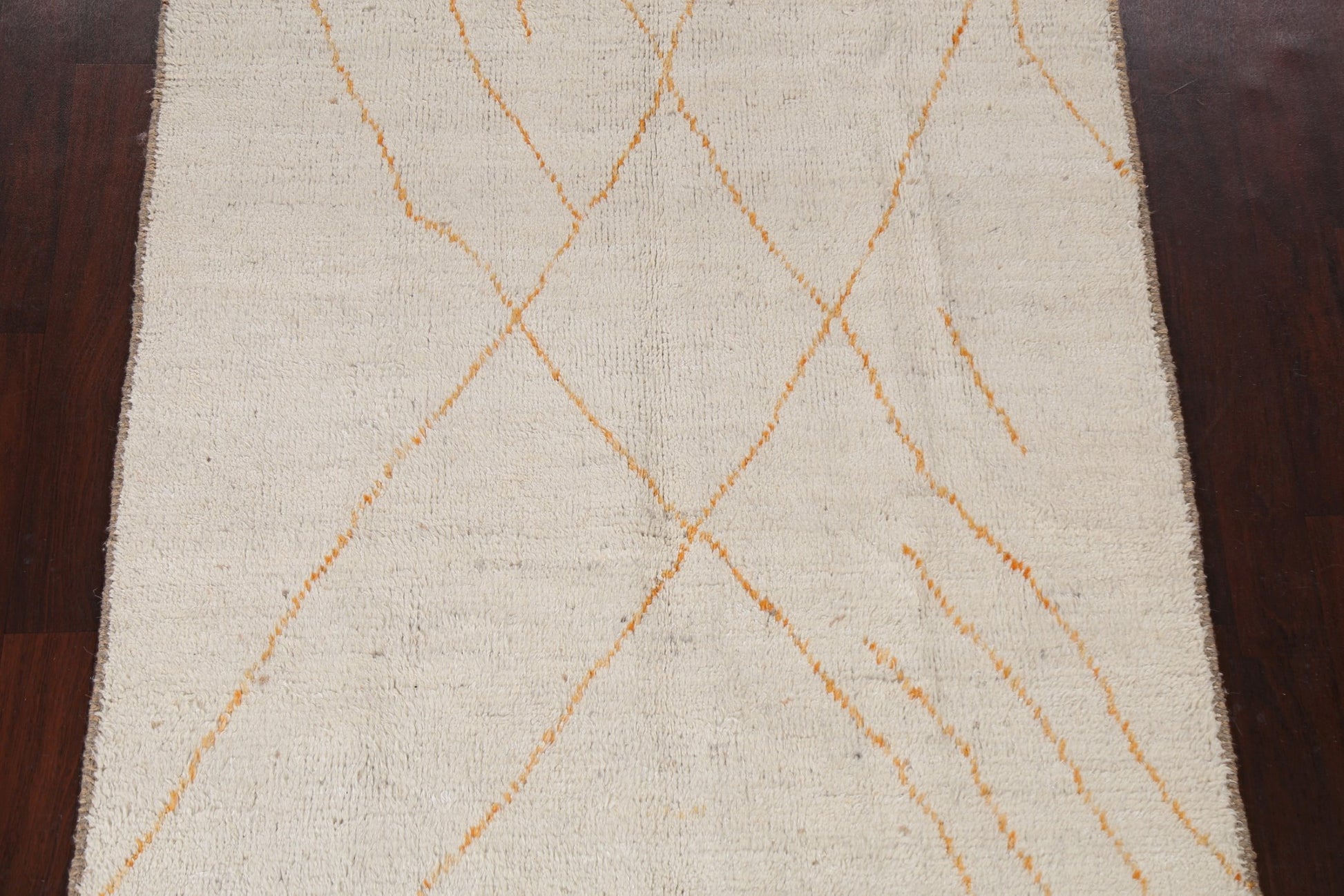 A Beautiful Genuine Morocco Moroccan rug is Hand Knotted by skillful weavers in Morocco with 100% Wool Material. This rug is in New, First Quality condition. dimensions are 8' 5'' X 5' 1'' in foot and 257 X 155 in centimeter. the primary color is Beige & Ivories.