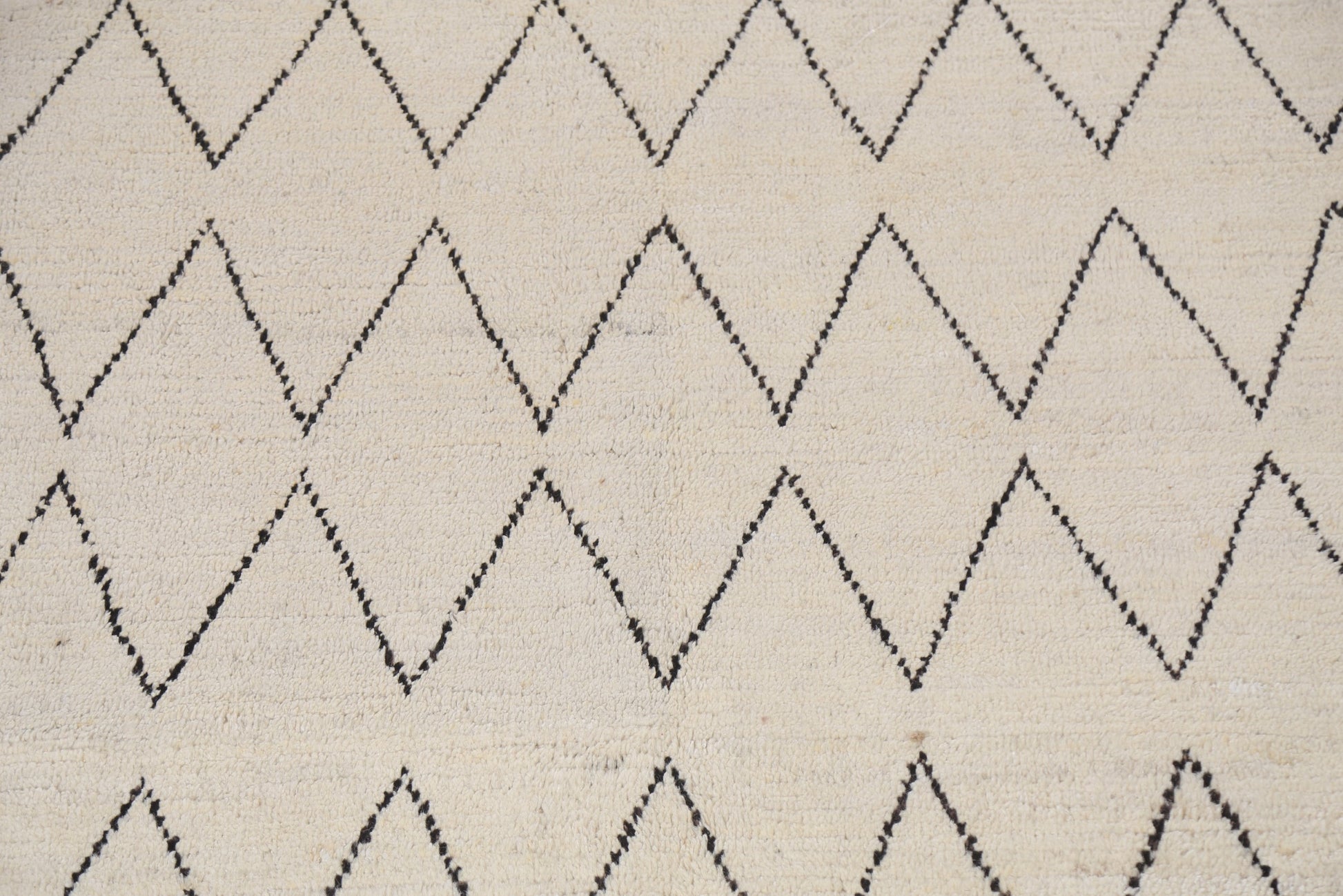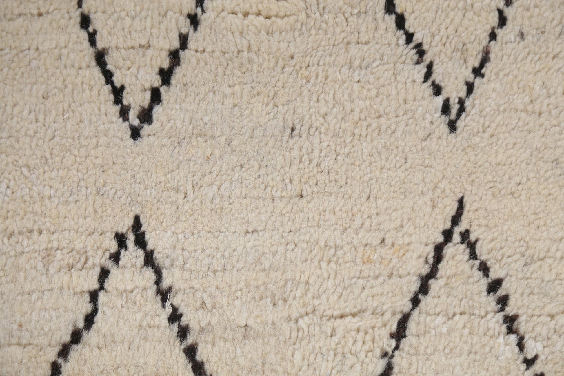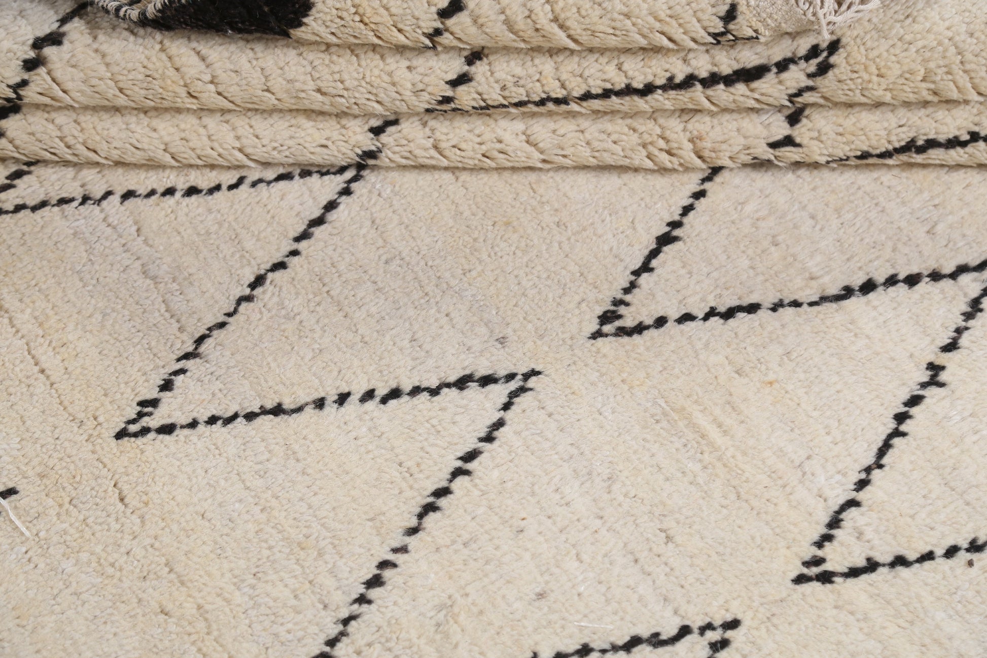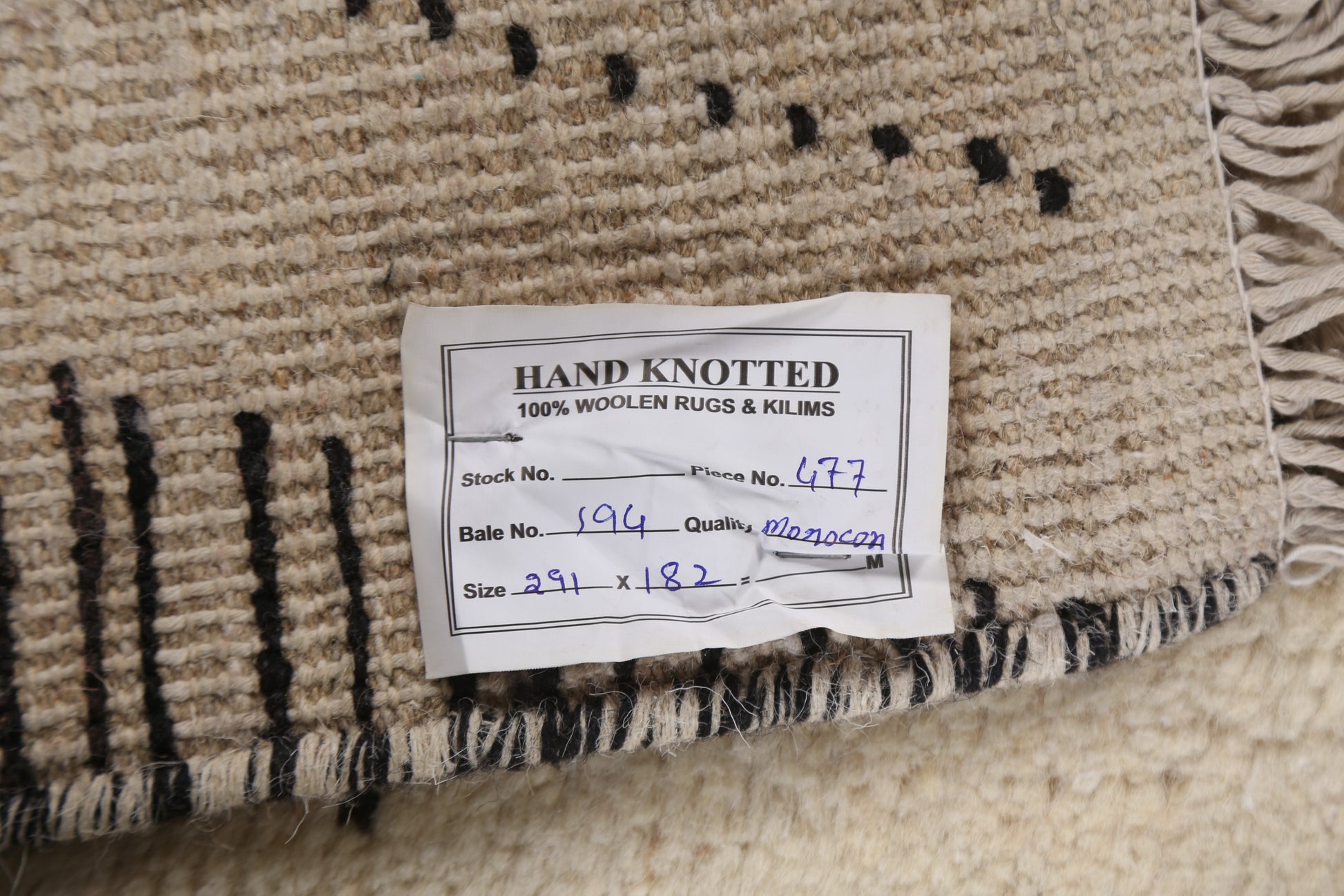 A Beautiful Genuine Morocco Moroccan rug is Hand Knotted by skillful weavers in Morocco with 100% Wool Material. This rug is in New, First Quality condition. dimensions are 9' 9'' X 6' 1'' in foot and 297 X 185 in centimeter. the primary color is Beige & Ivories.