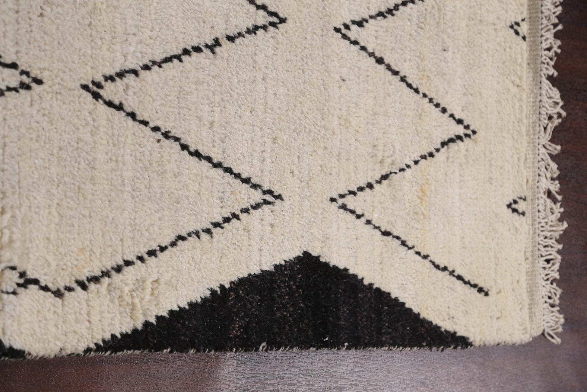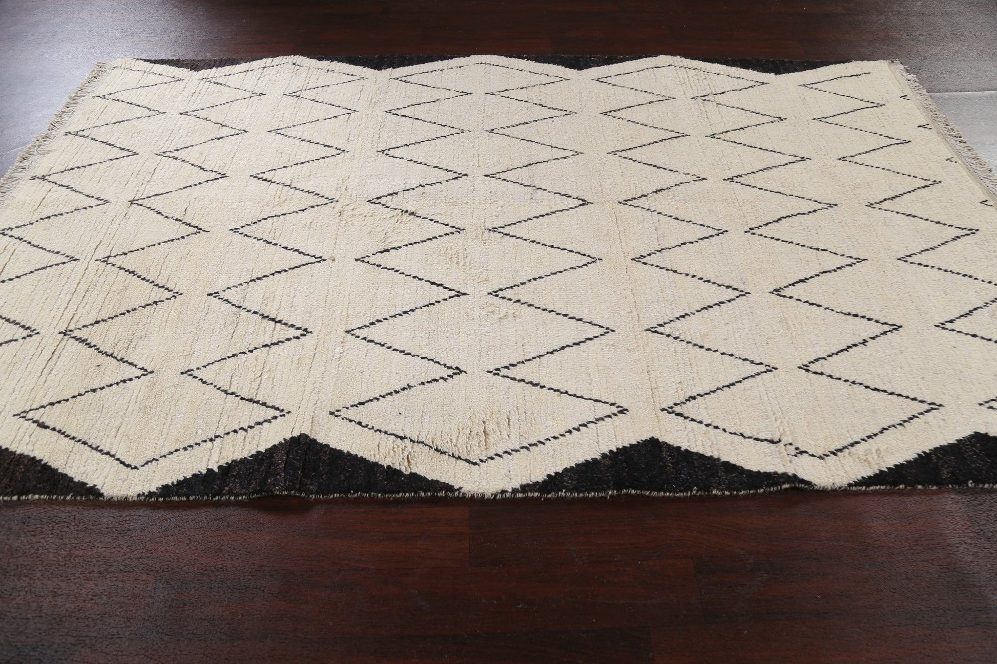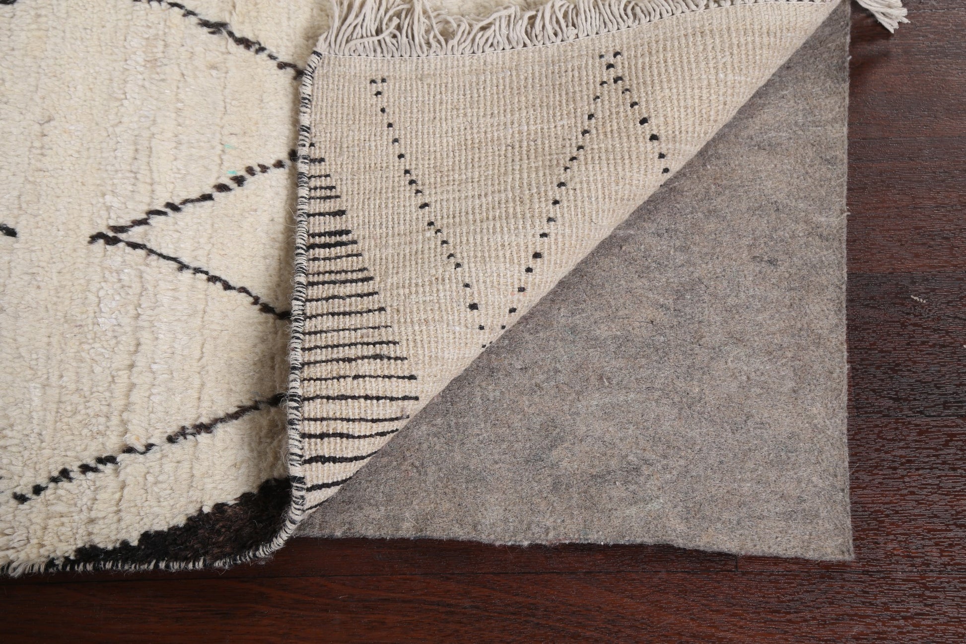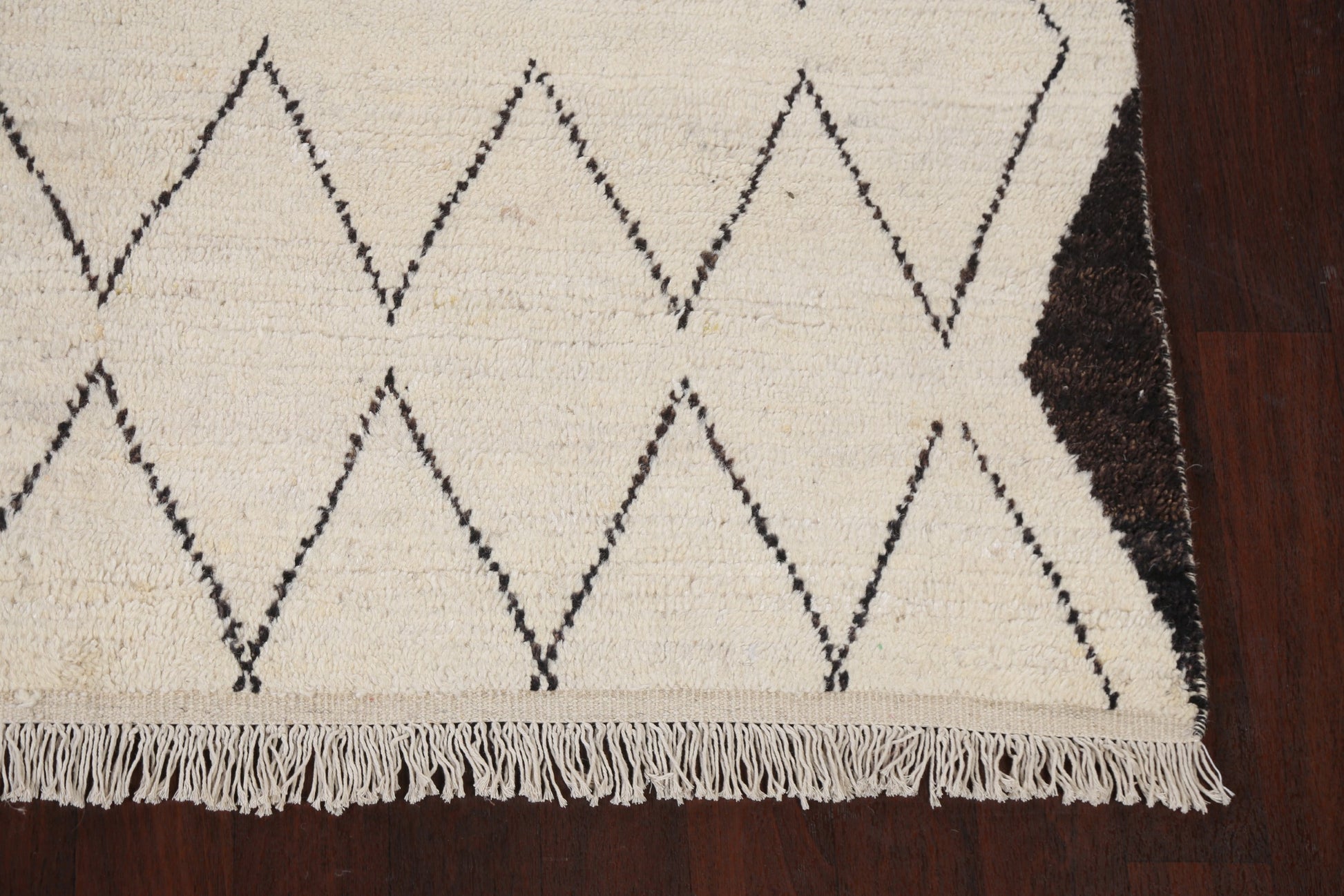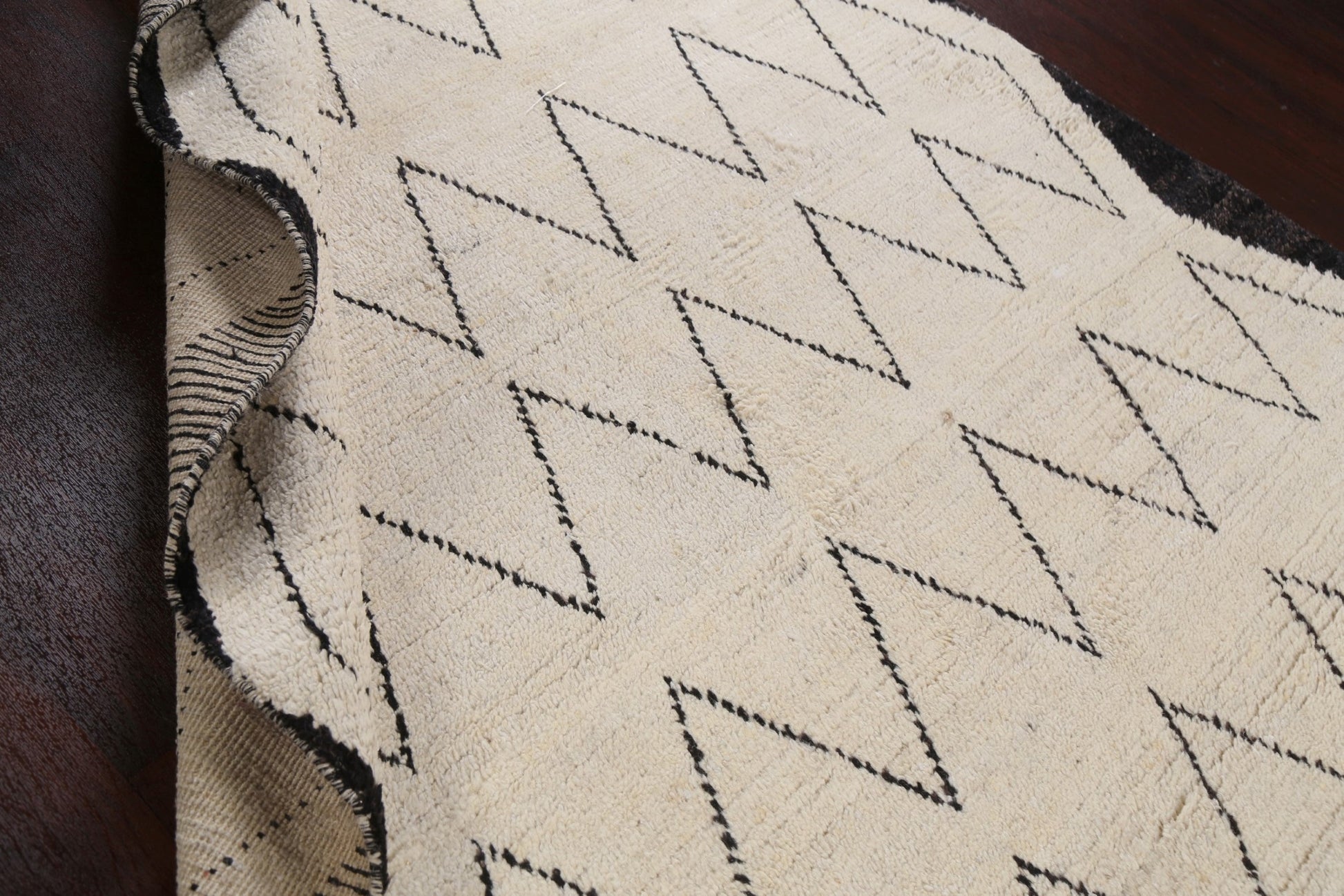 A Beautiful Genuine Morocco Moroccan rug is Hand Knotted by skillful weavers in Morocco with 100% Wool Material. This rug is in New, First Quality condition. dimensions are 9' 9'' X 6' 1'' in foot and 297 X 185 in centimeter. the primary color is Beige & Ivories.