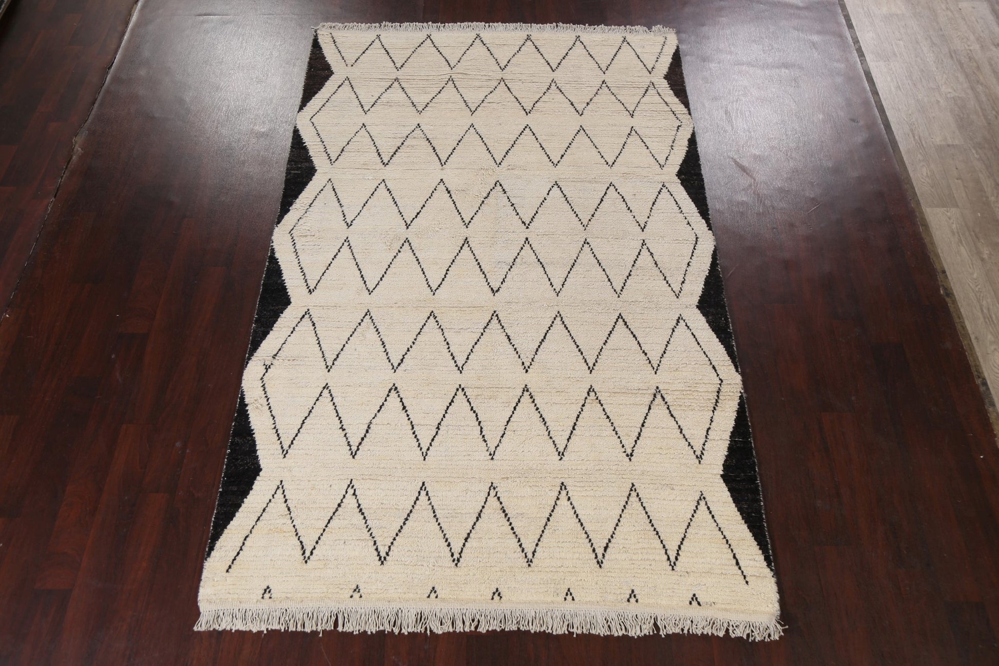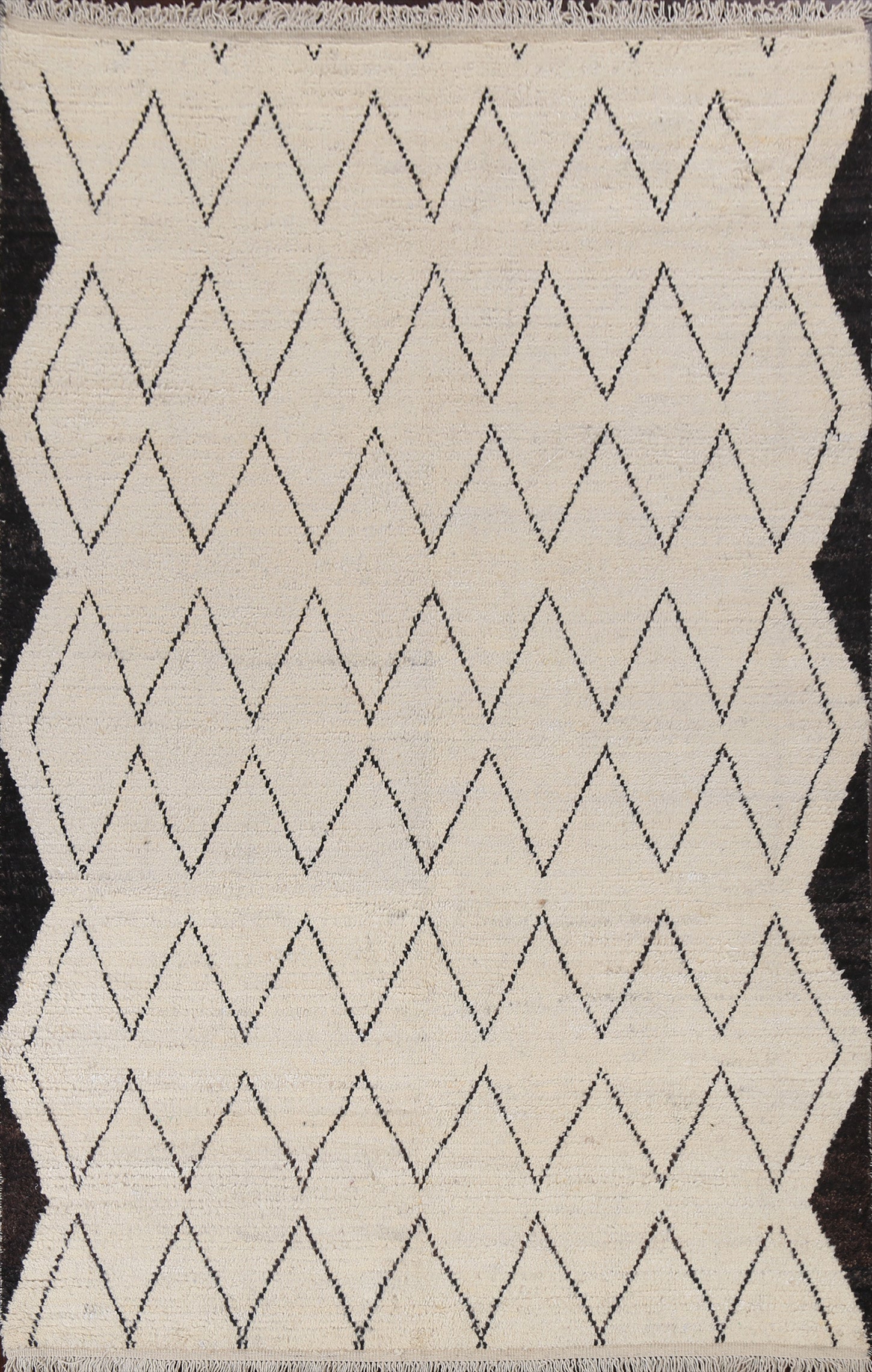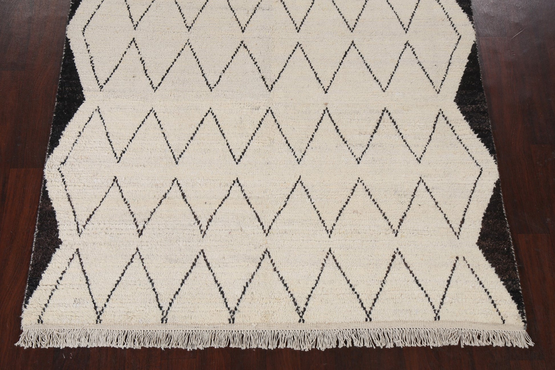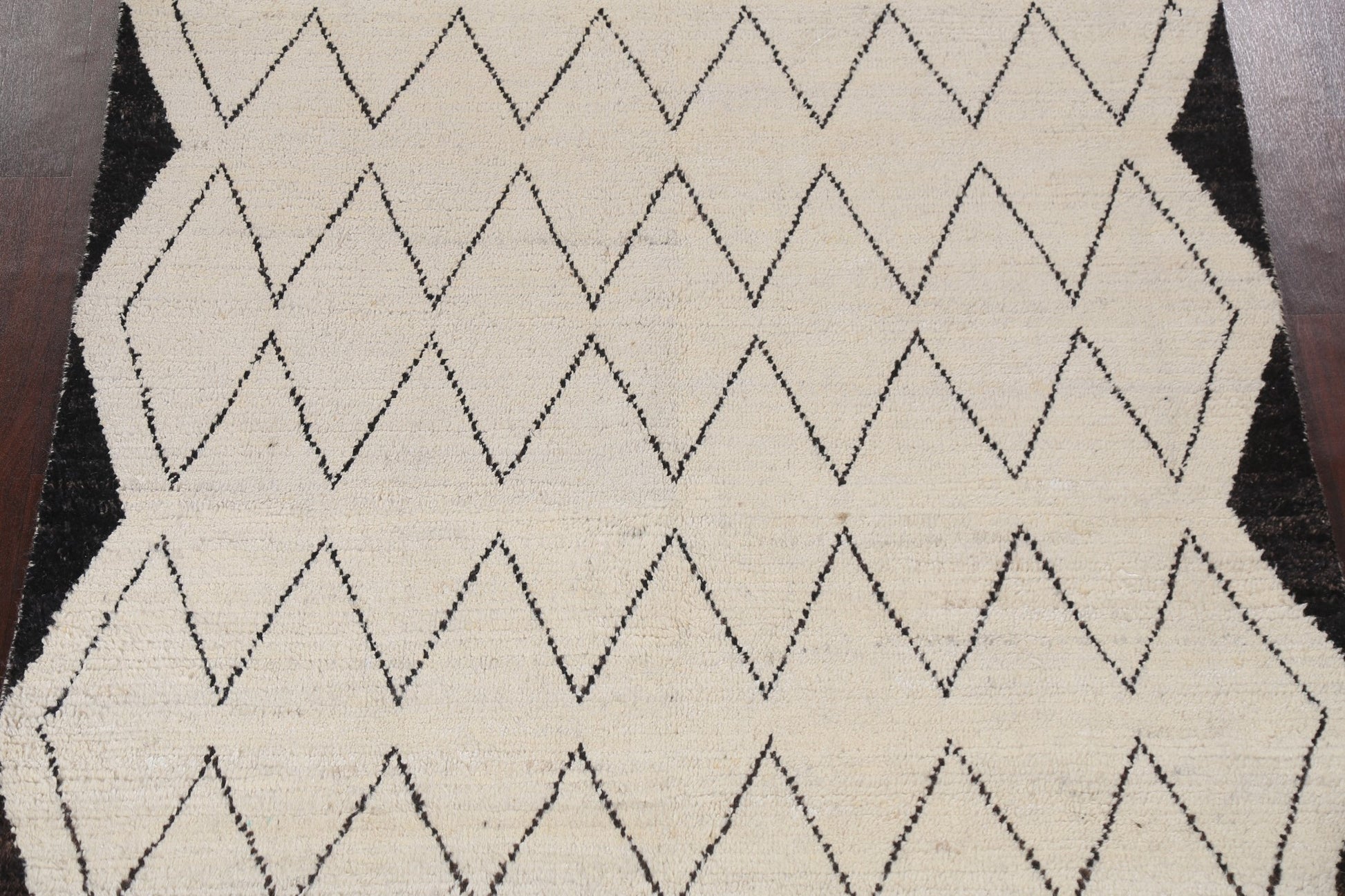A Beautiful Genuine Morocco Moroccan rug is Hand Knotted by skillful weavers in Morocco with 100% Wool Material. This rug is in New, First Quality condition. dimensions are 9' 9'' X 6' 1'' in foot and 297 X 185 in centimeter. the primary color is Beige & Ivories.