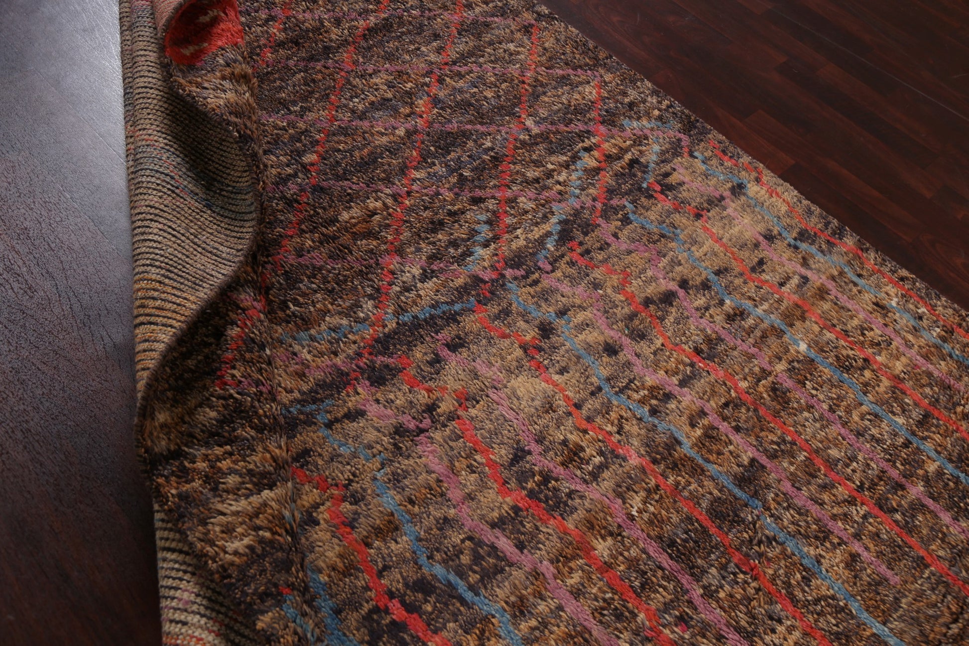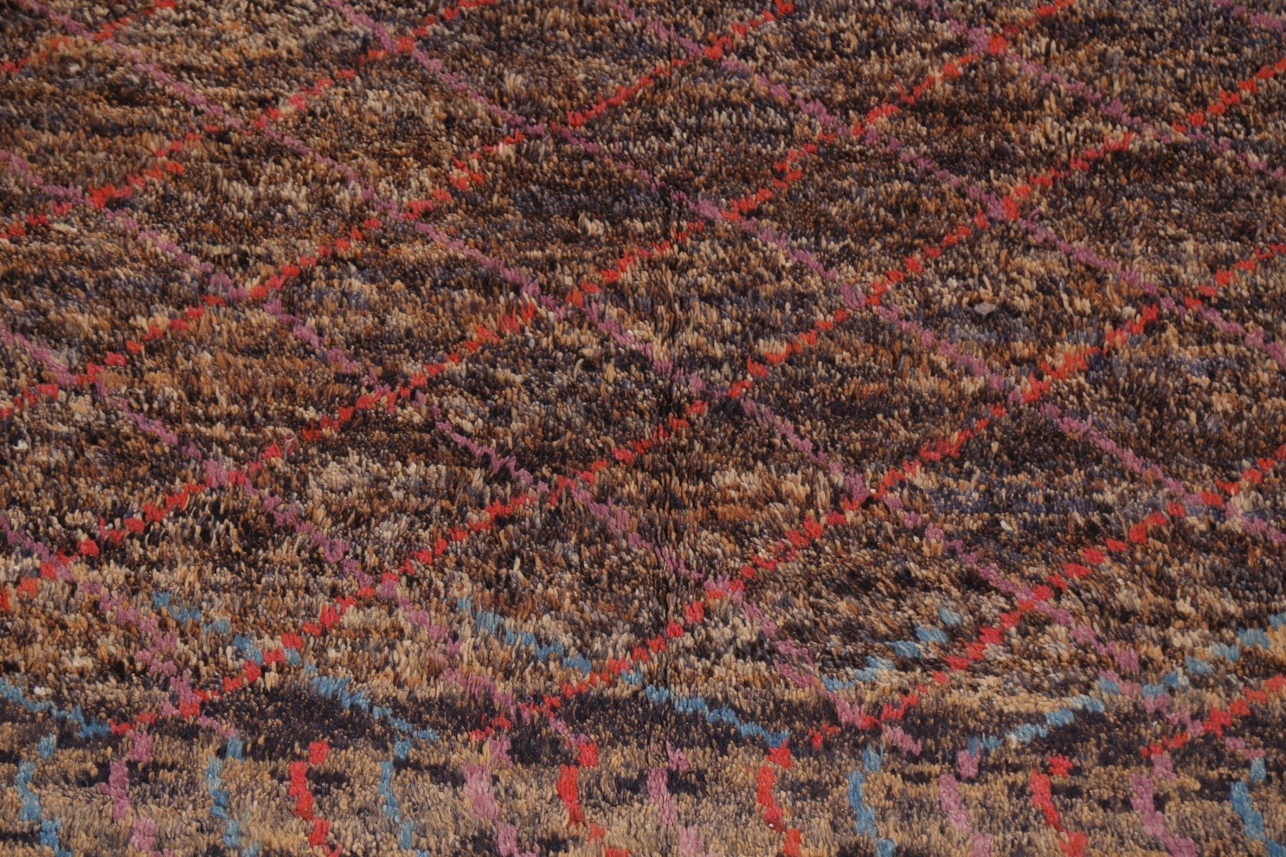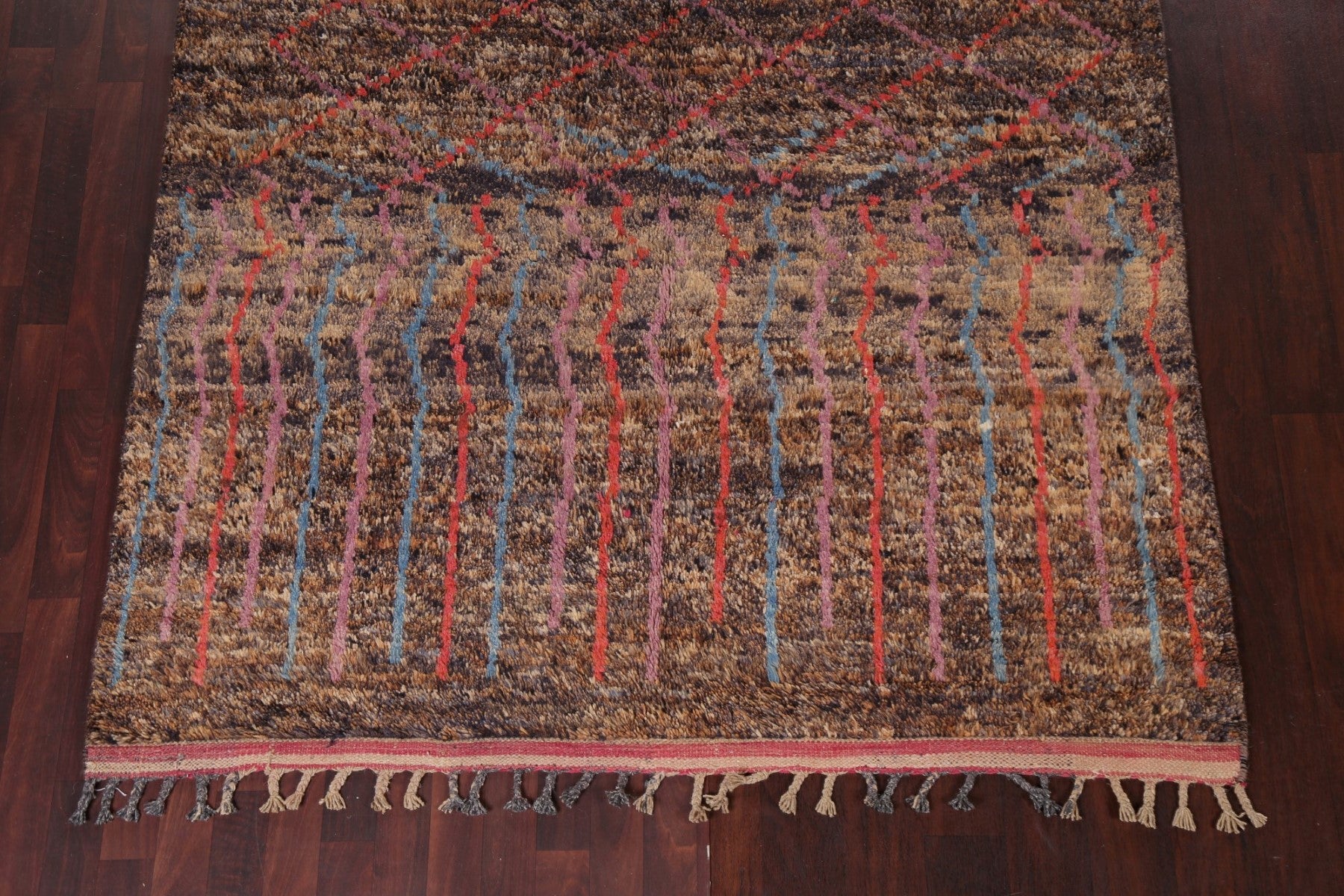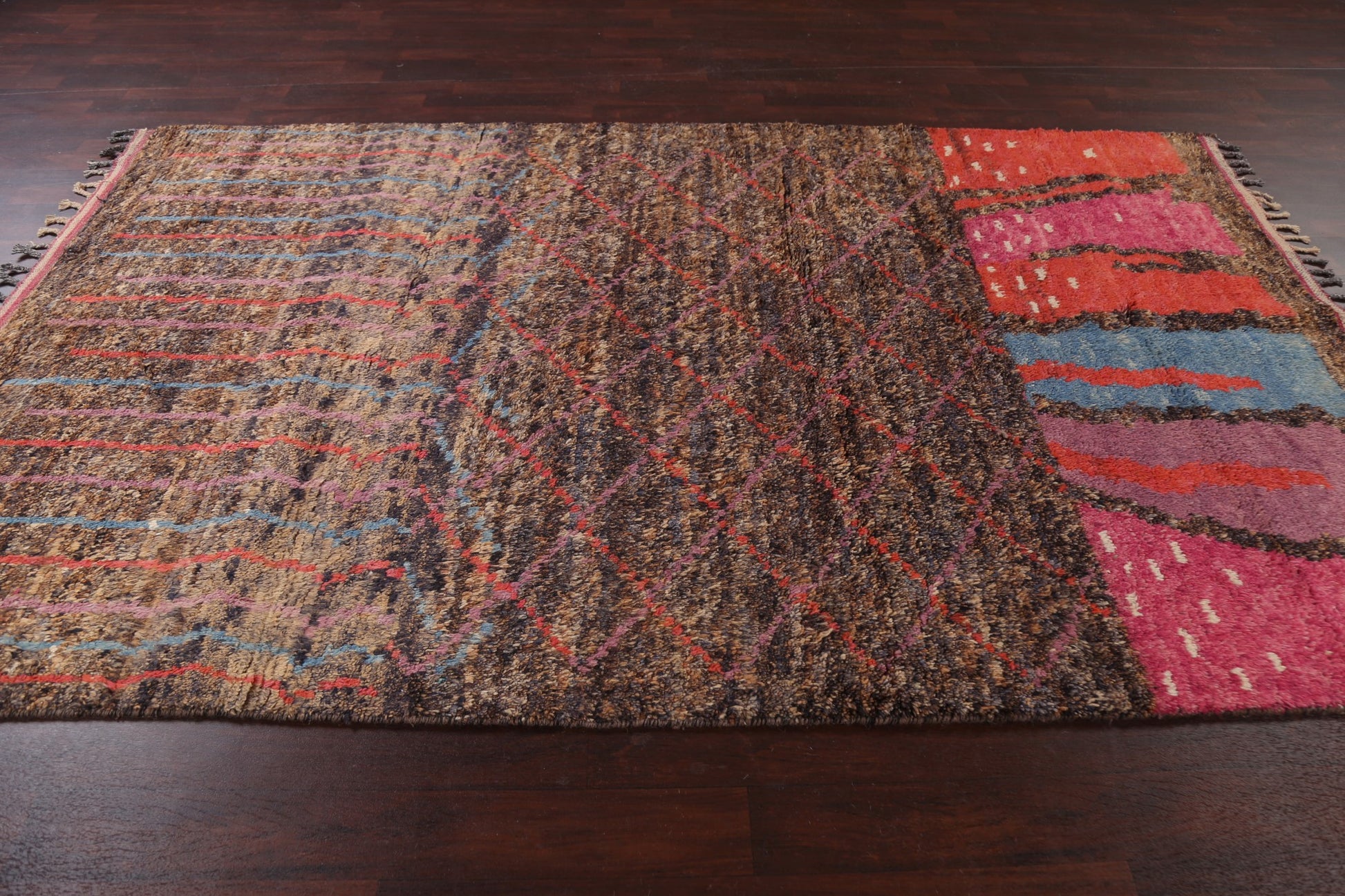 A Beautiful Genuine Morocco Moroccan rug is Hand Knotted by skillful weavers in Morocco with 100% Wool Material. This rug is in New, First Quality condition. dimensions are 9' 11'' X 6' 0'' in foot and 302 X 183 in centimeter. the primary color is Brown.