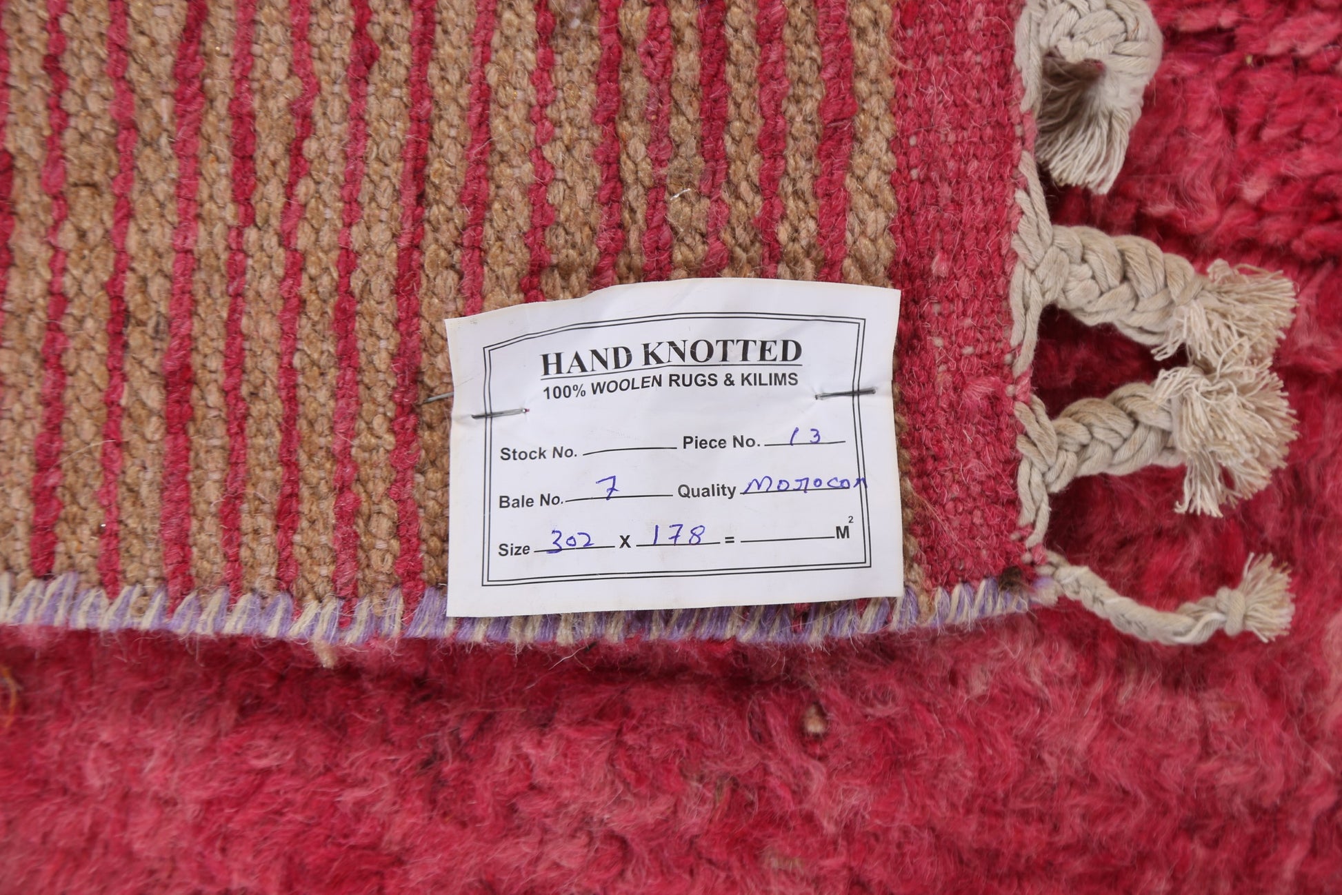 A Beautiful Genuine Morocco Moroccan rug is Hand Knotted by skillful weavers in Morocco with 100% Wool Material. This rug is in New, First Quality condition. dimensions are 10' 3'' X 5' 10'' in foot and 312 X 178 in centimeter. the primary color is Pink.