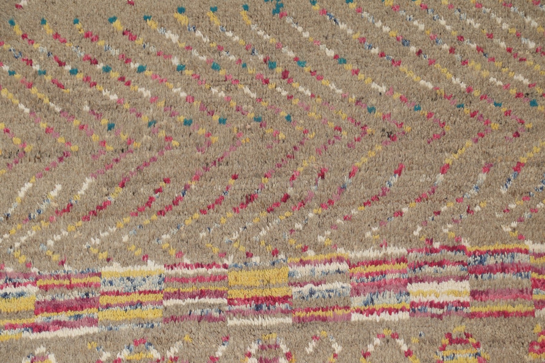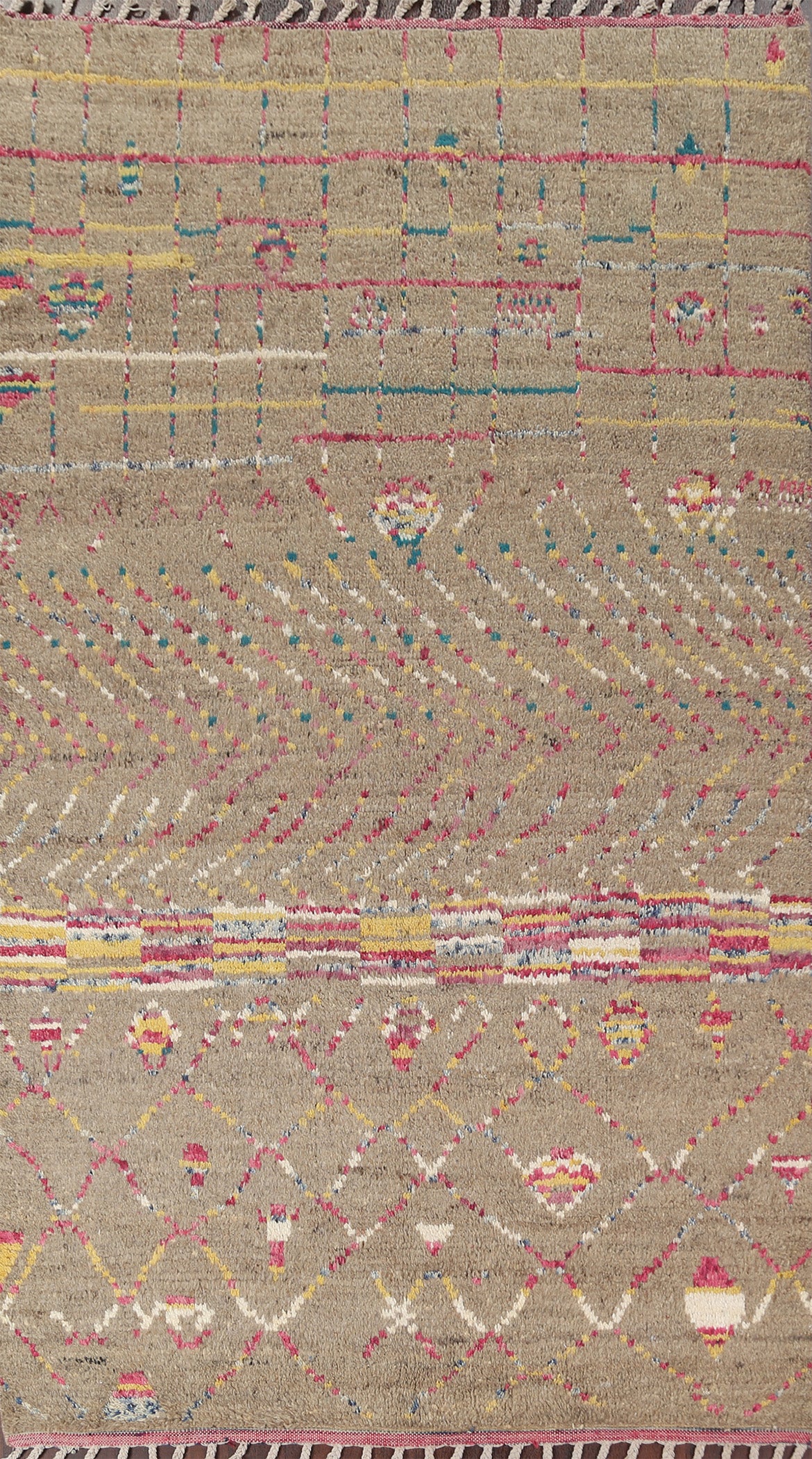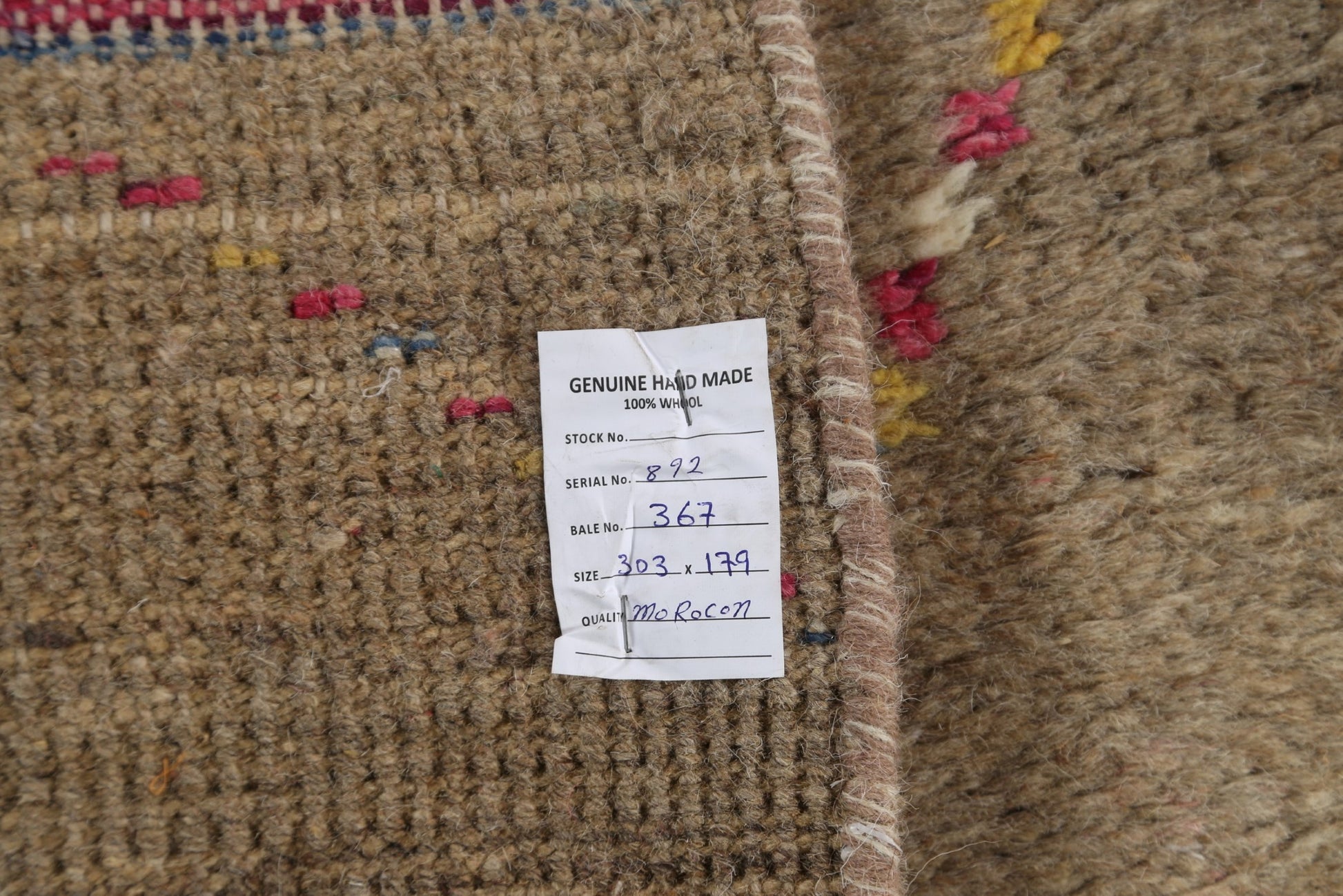 A Beautiful Genuine Morocco Moroccan rug is Hand Knotted by skillful weavers in Morocco with 100% Wool Material. This rug is in New, First Quality condition. dimensions are 10' 1'' X 5' 10'' in foot and 307 X 178 in centimeter. the primary color is Beige & Ivories.