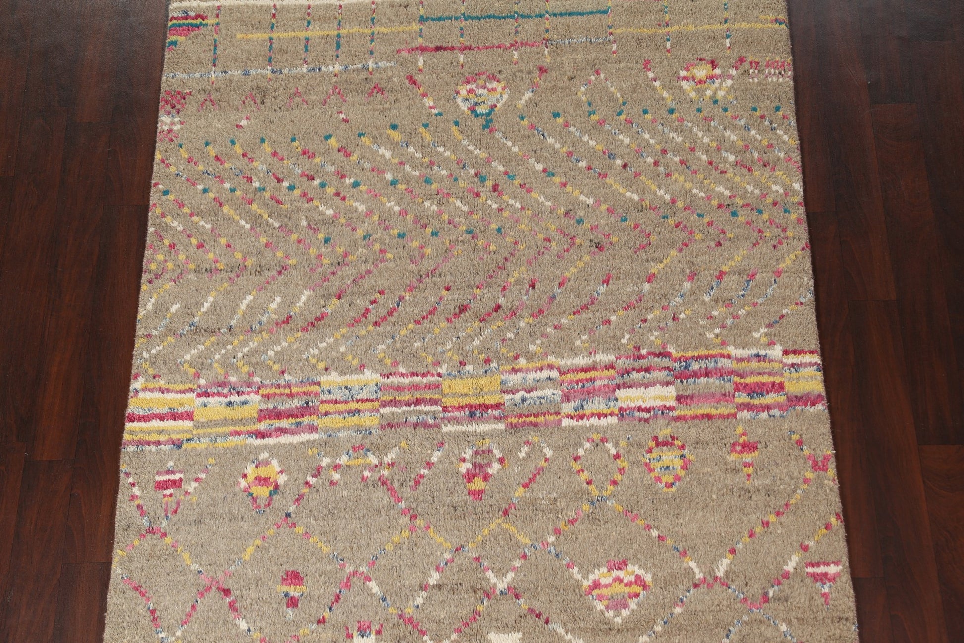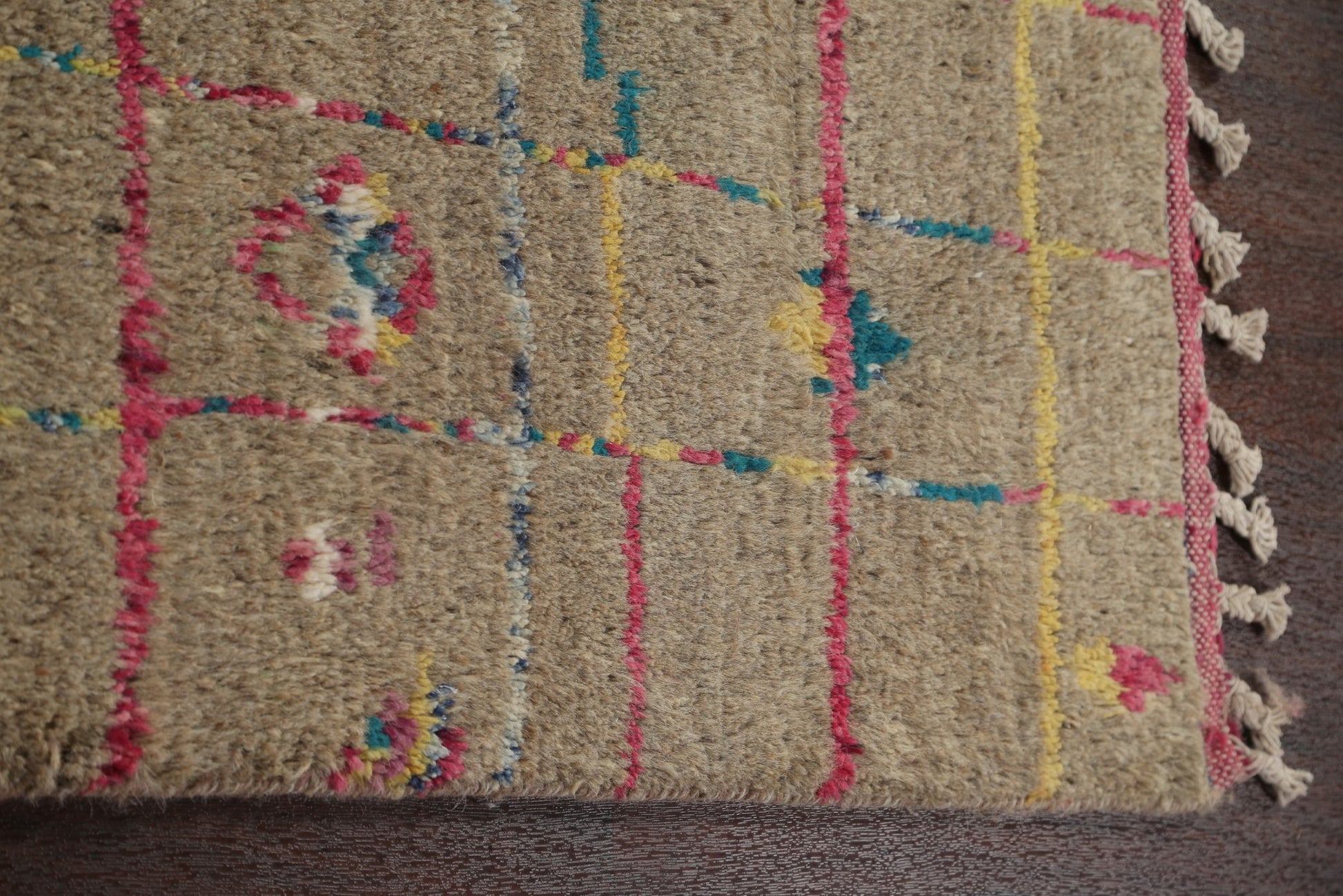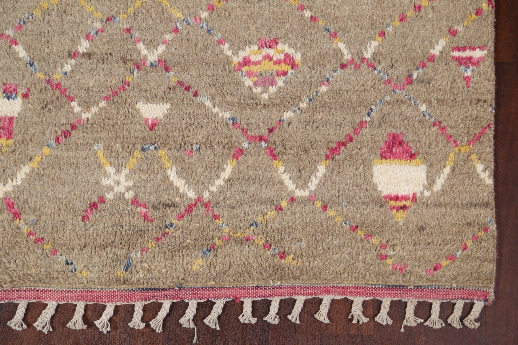 A Beautiful Genuine Morocco Moroccan rug is Hand Knotted by skillful weavers in Morocco with 100% Wool Material. This rug is in New, First Quality condition. dimensions are 10' 1'' X 5' 10'' in foot and 307 X 178 in centimeter. the primary color is Beige & Ivories.