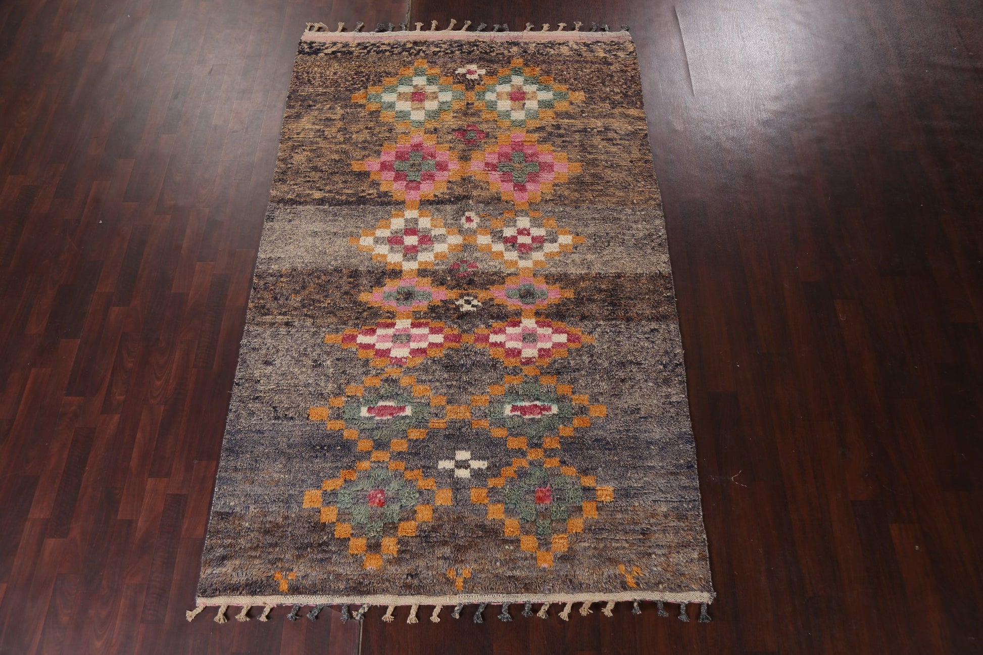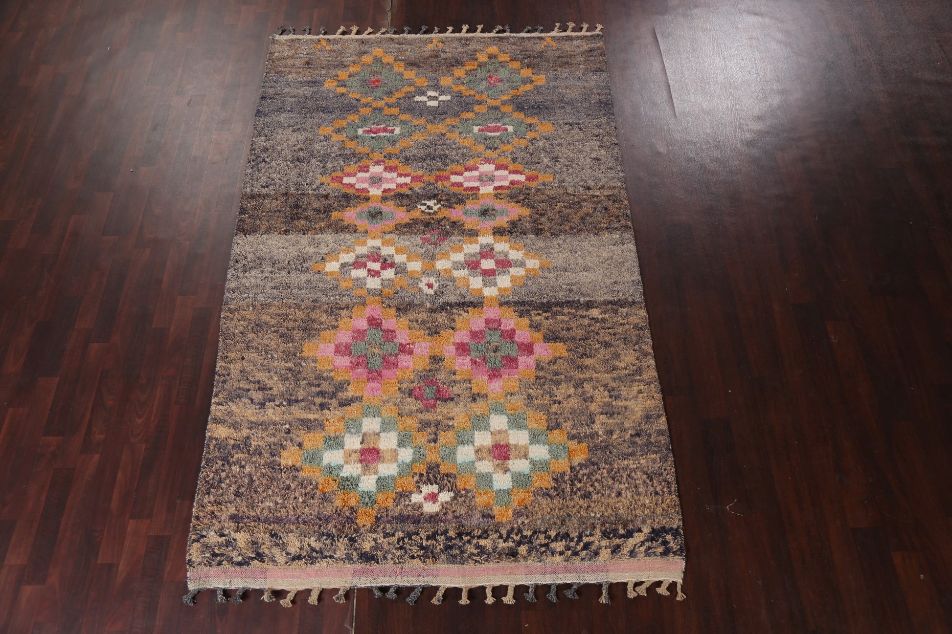 A Beautiful Genuine Morocco Moroccan rug is Hand Knotted by skillful weavers in Morocco with 100% Wool Material. This rug is in New, First Quality condition. dimensions are 9' 10'' X 6' 0'' in foot and 300 X 183 in centimeter. the primary color is Multi-Colored.