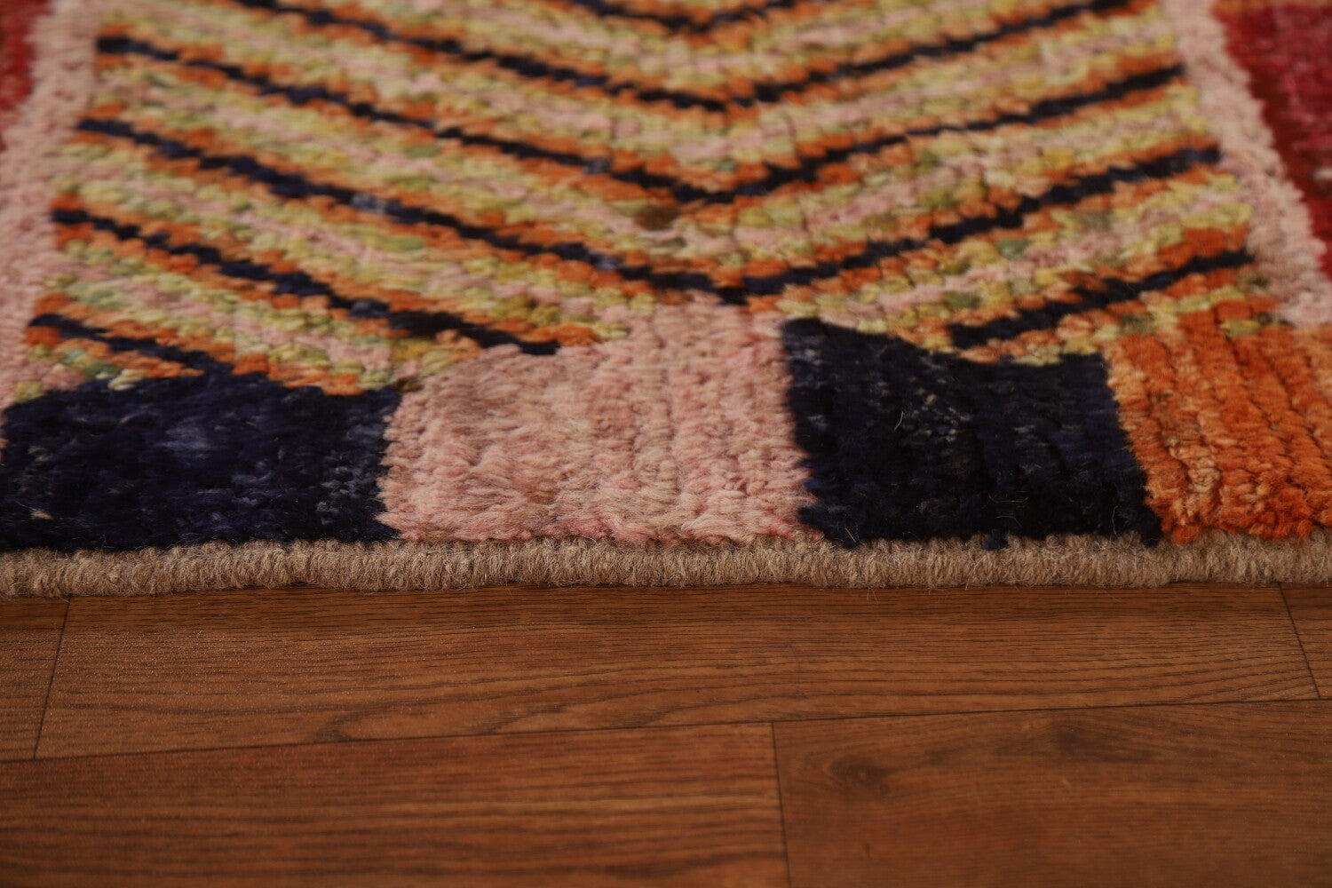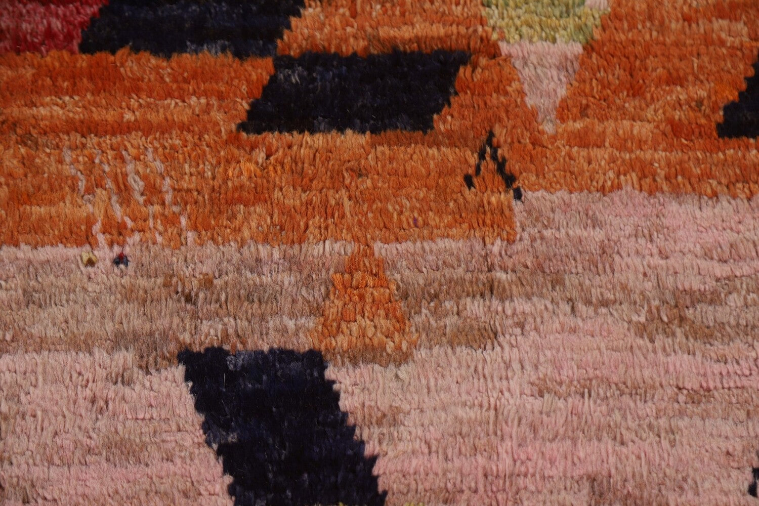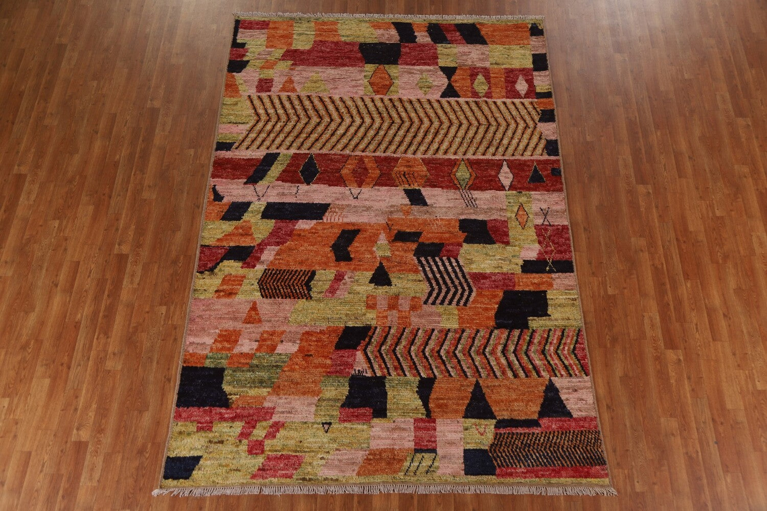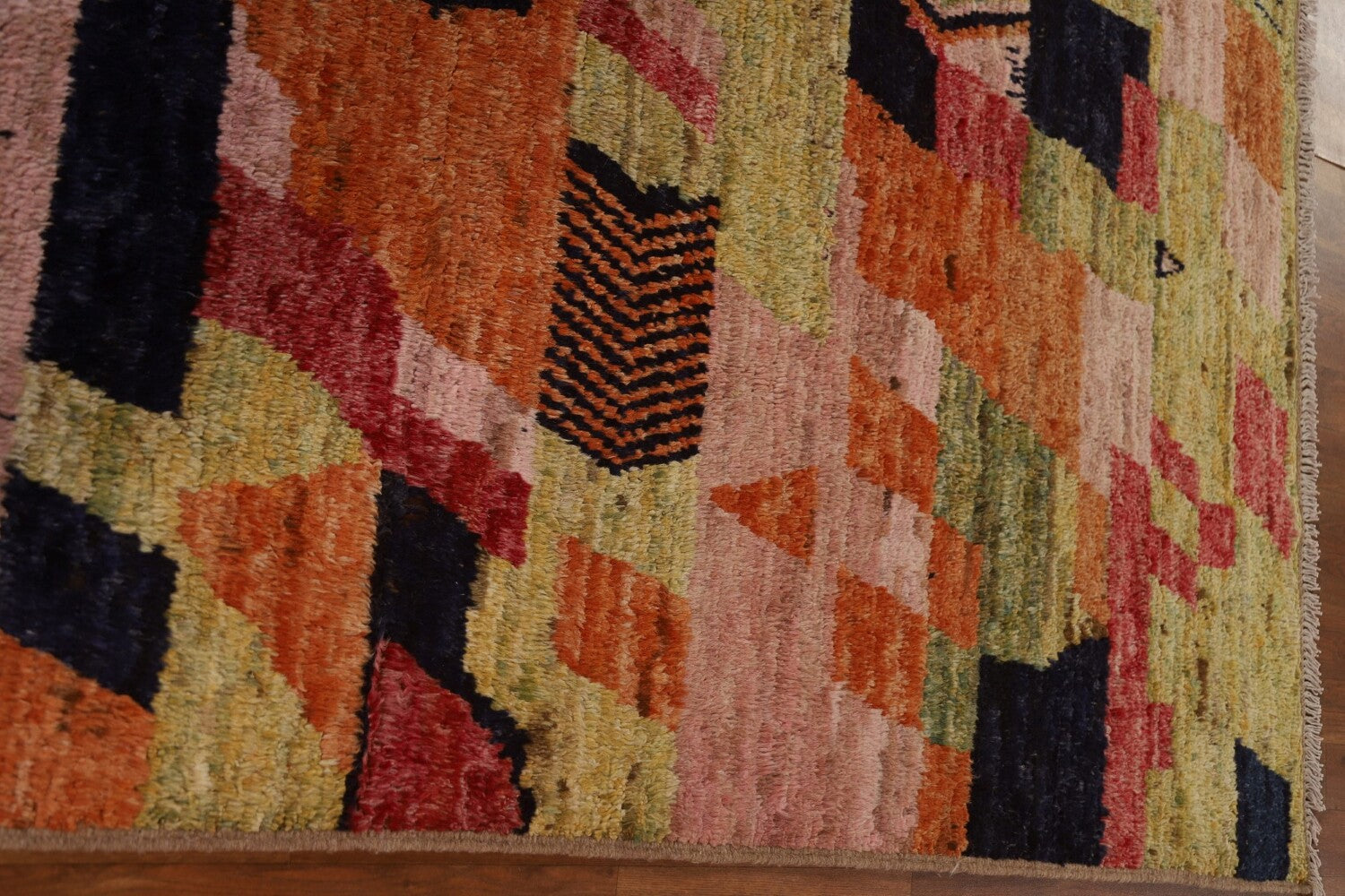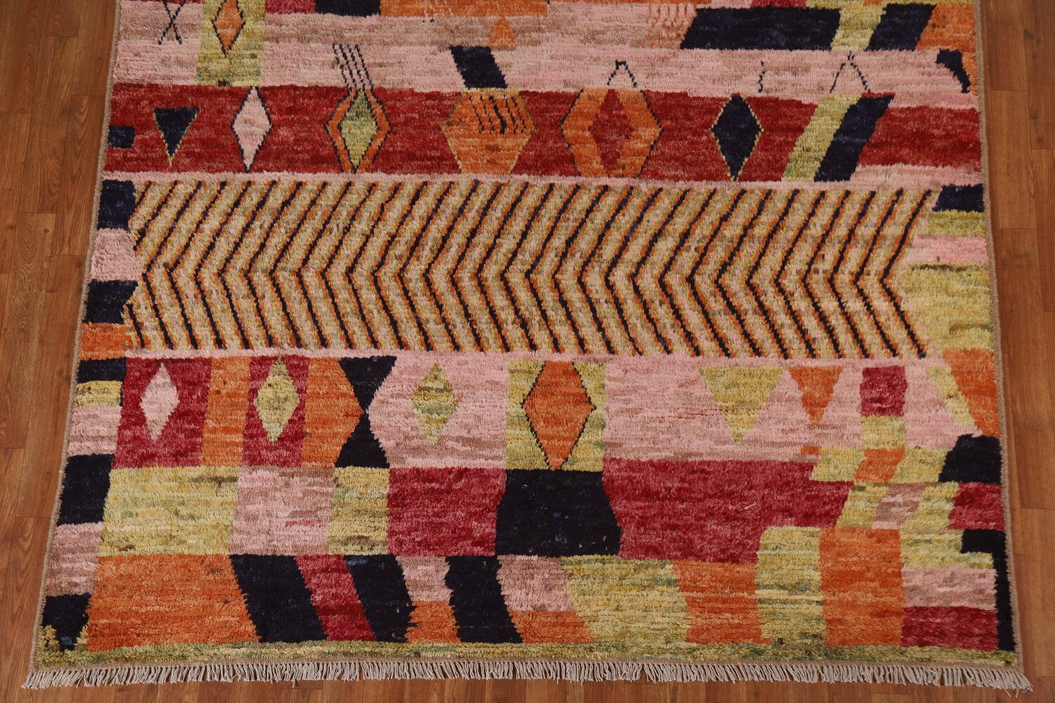 A Beautiful Genuine Pakistan Moroccan rug is Hand Knotted by skillful weavers in Pakistan with 100% Wool Material. This rug is in condition. dimensions are 9' 8'' X 6' 8'' in foot and 295 X 203 in centimeter. the primary color is Multi-Colored.