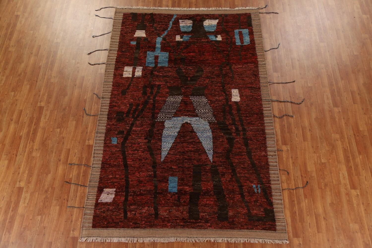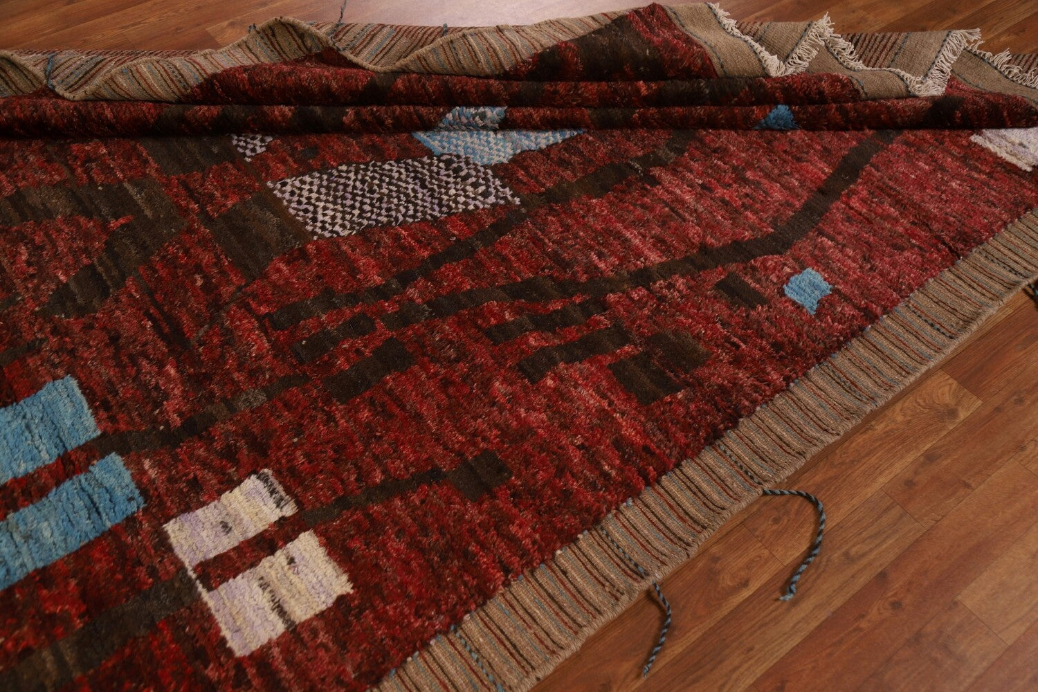 A Beautiful Genuine Pakistan Moroccan rug is Hand Knotted by skillful weavers in Pakistan with 100% Wool Material. This rug is in condition. dimensions are 10' 2'' X 6' 9'' in foot and 310 X 206 in centimeter. the primary color is Red.