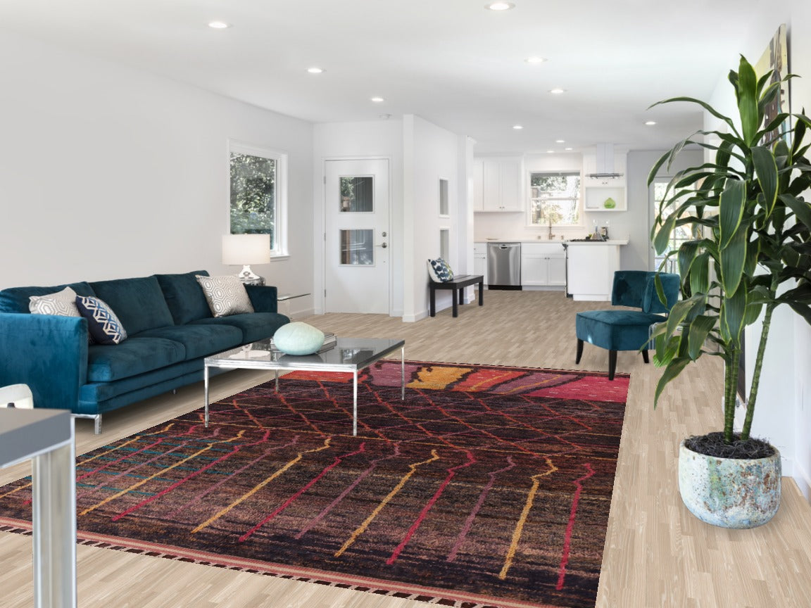 A Beautiful Genuine Morocco Moroccan rug is Hand Knotted by skillful weavers in Morocco with 100% Wool Material. This rug is in New, First Quality condition. dimensions are 10' 9'' X 7' 0'' in foot and 328 X 213 in centimeter. the primary color is Multi-Colored.