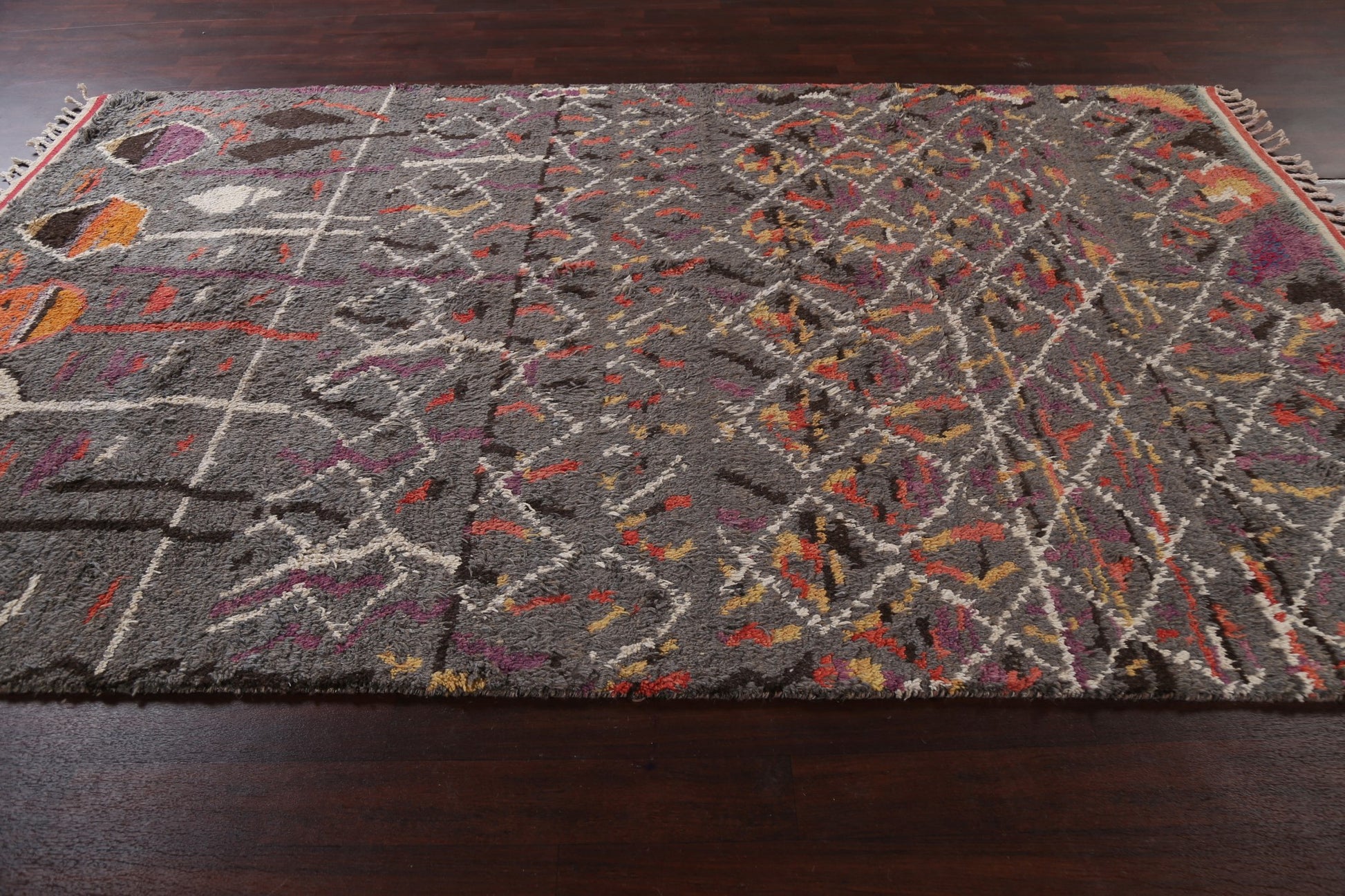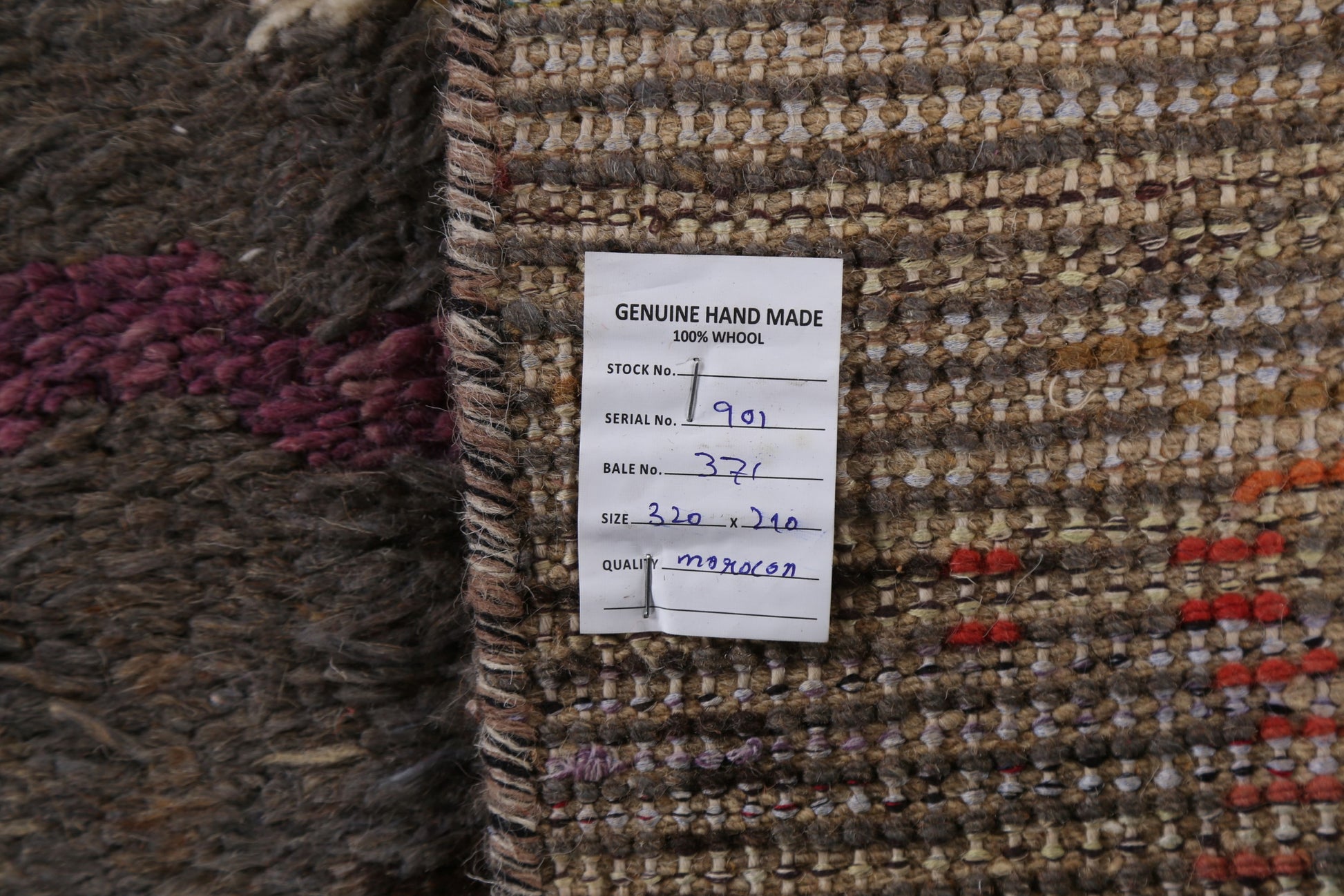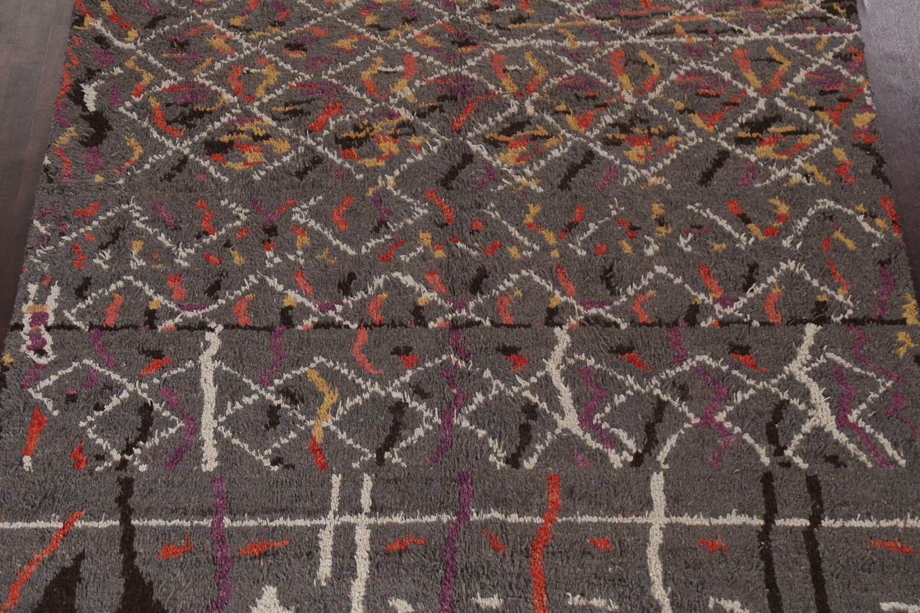 A Beautiful Genuine Morocco Moroccan rug is Hand Knotted by skillful weavers in Morocco with 100% Wool Material. This rug is in New, First Quality condition. dimensions are 10' 11'' X 6' 11'' in foot and 333 X 211 in centimeter. the primary color is Greys & Charcoal.