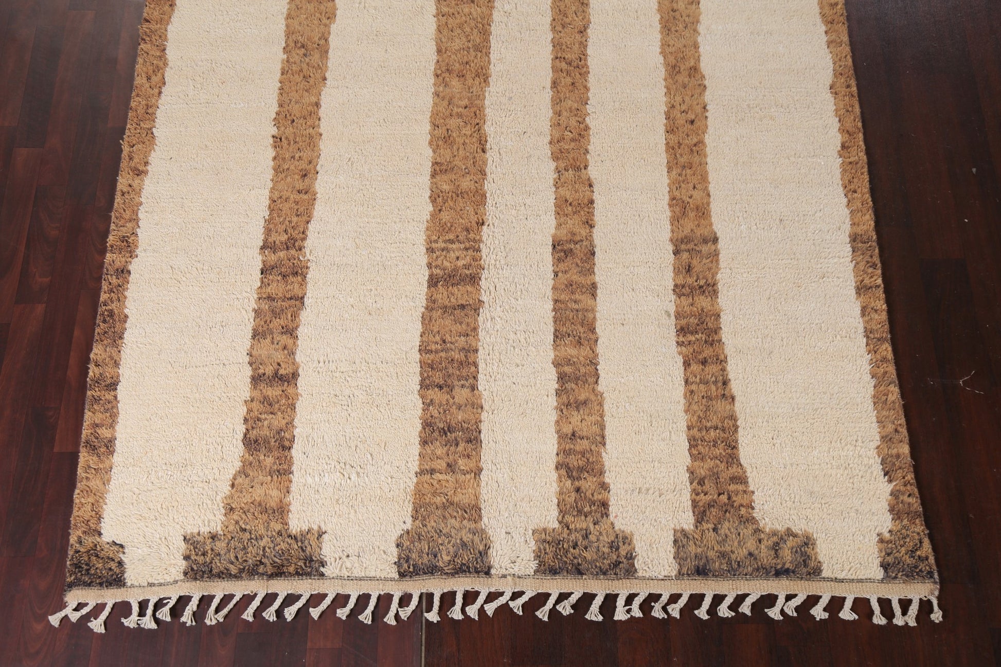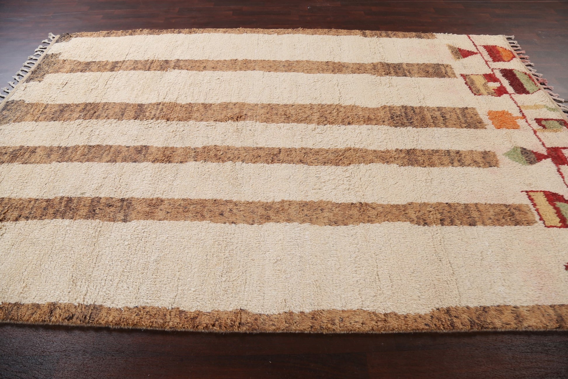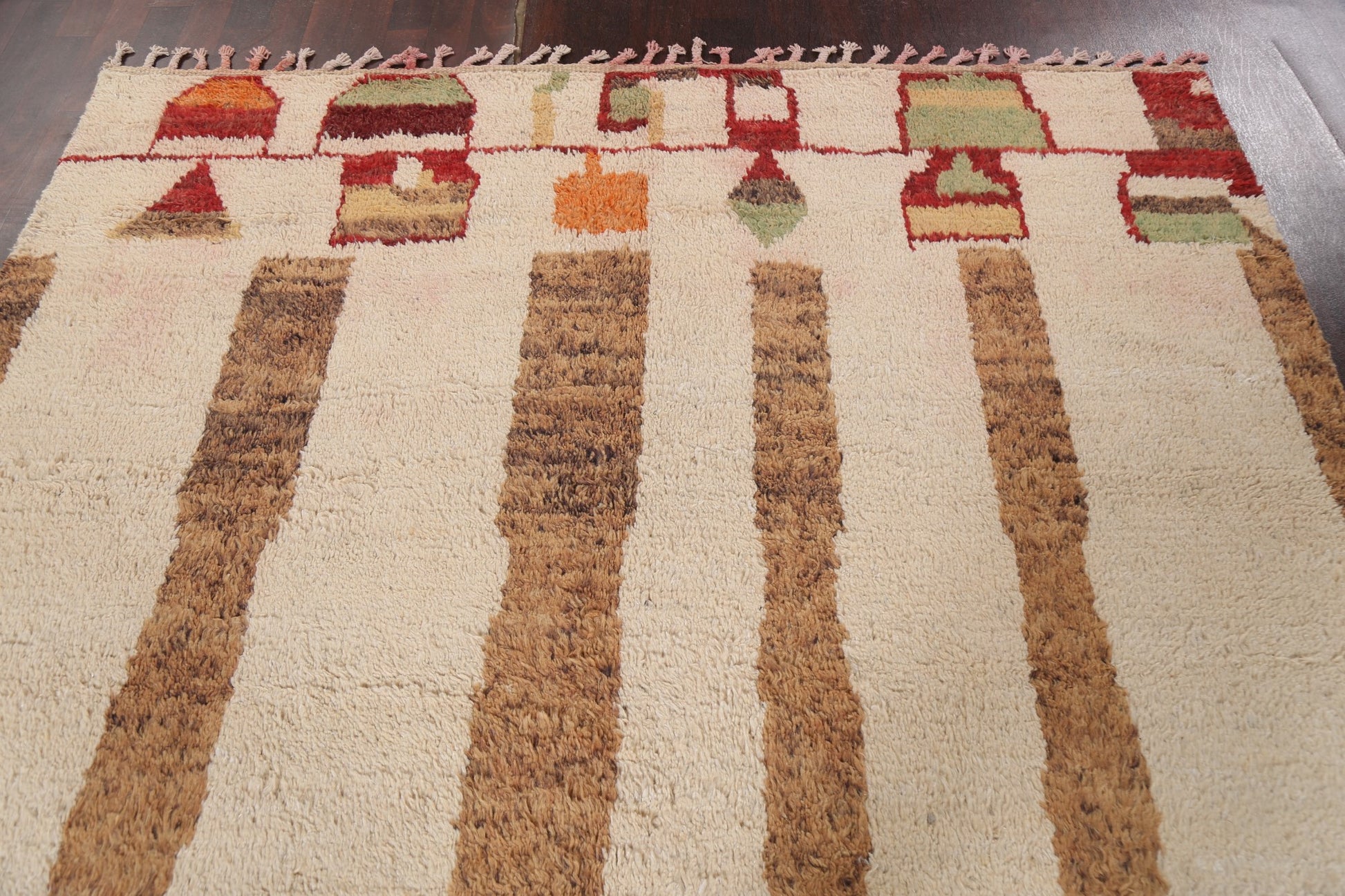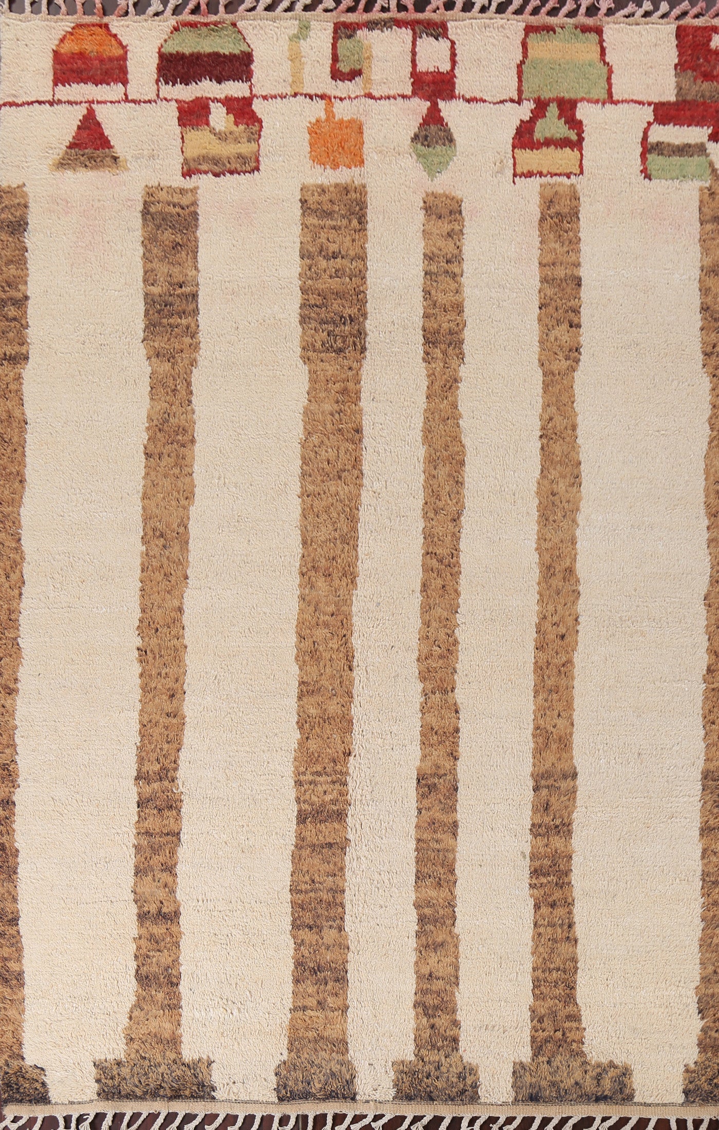 A Beautiful Genuine Morocco Moroccan rug is Hand Knotted by skillful weavers in Morocco with 100% Wool Material. This rug is in New, First Quality condition. dimensions are 10' 6'' X 6' 11'' in foot and 320 X 211 in centimeter. the primary color is Beige & Ivories.