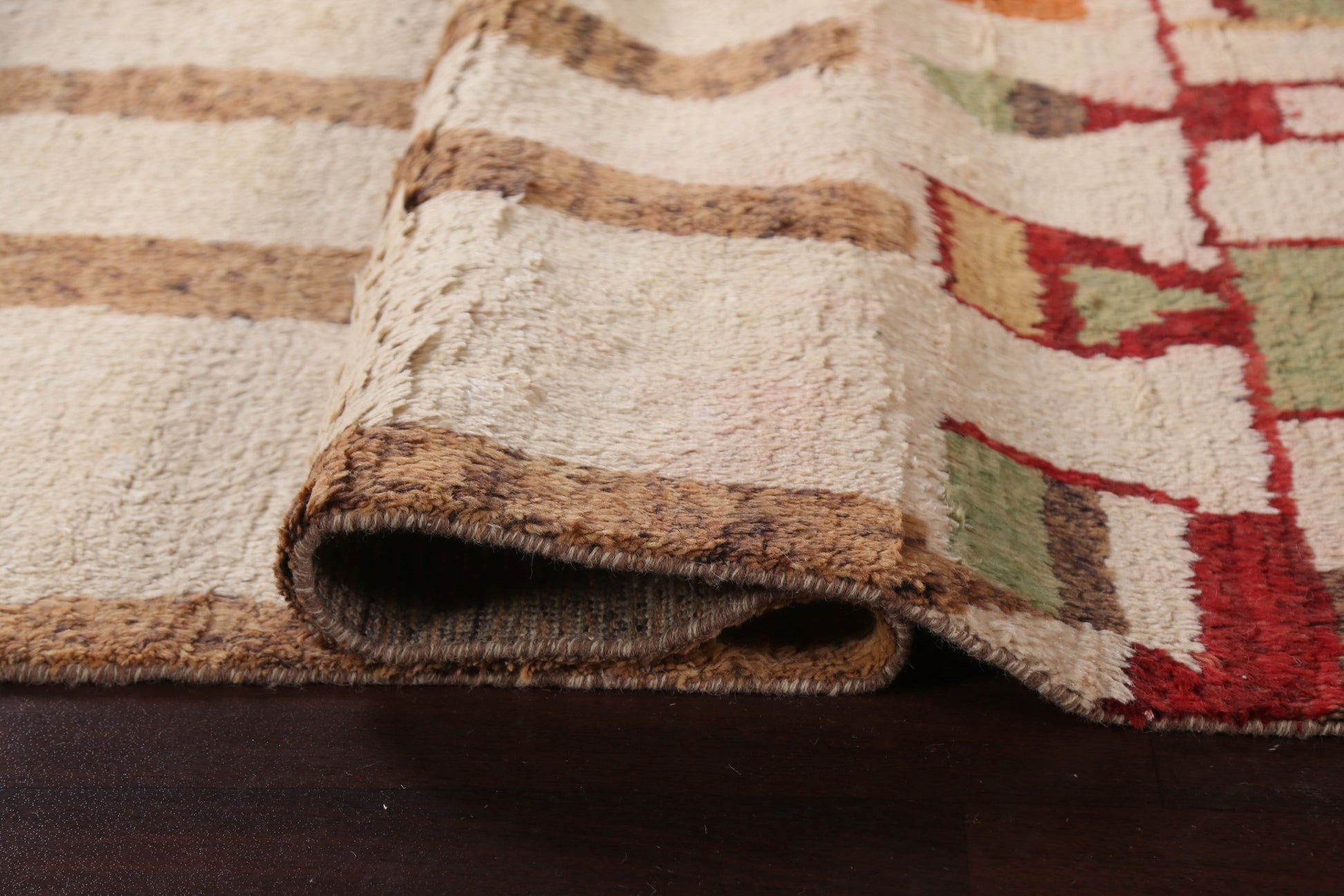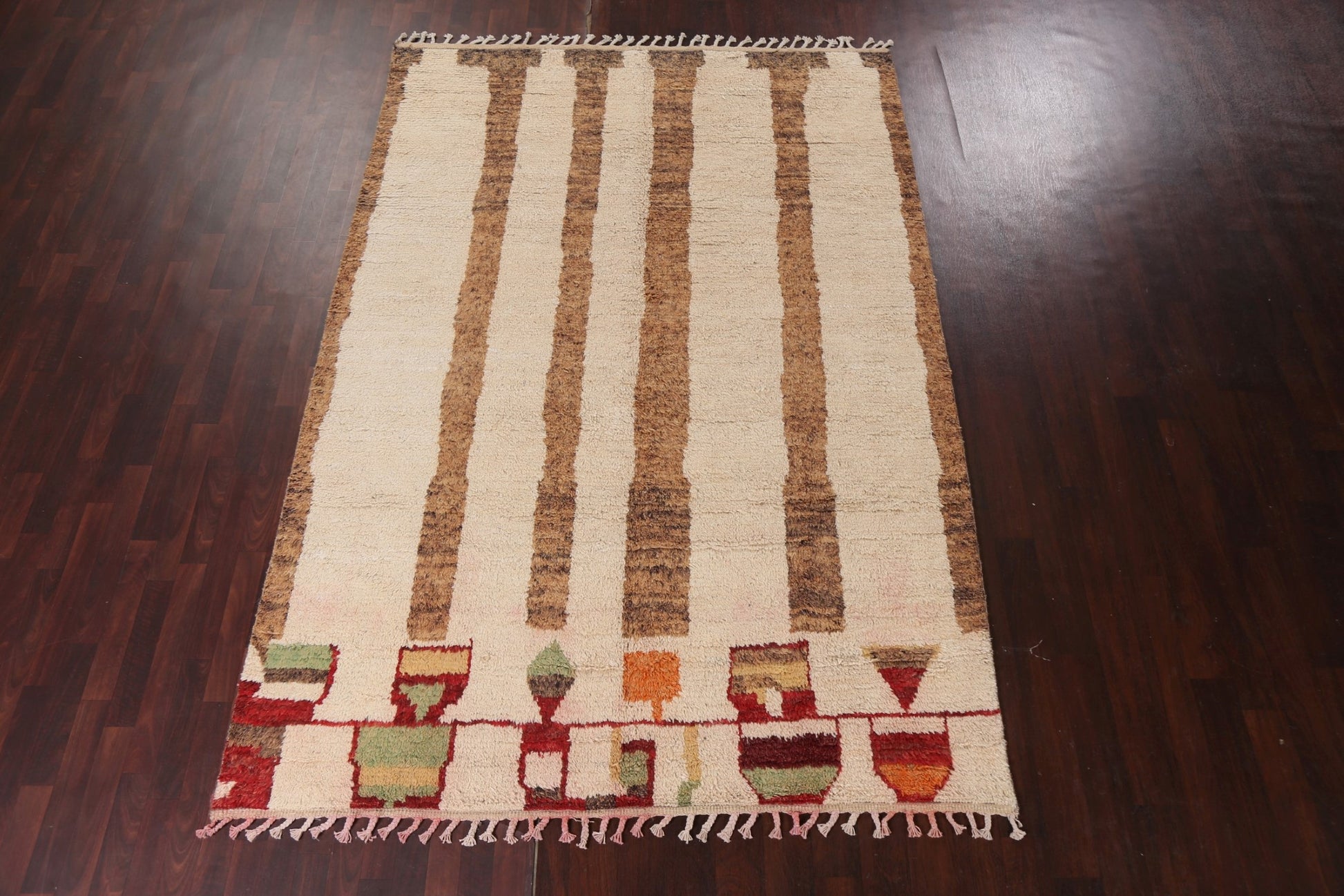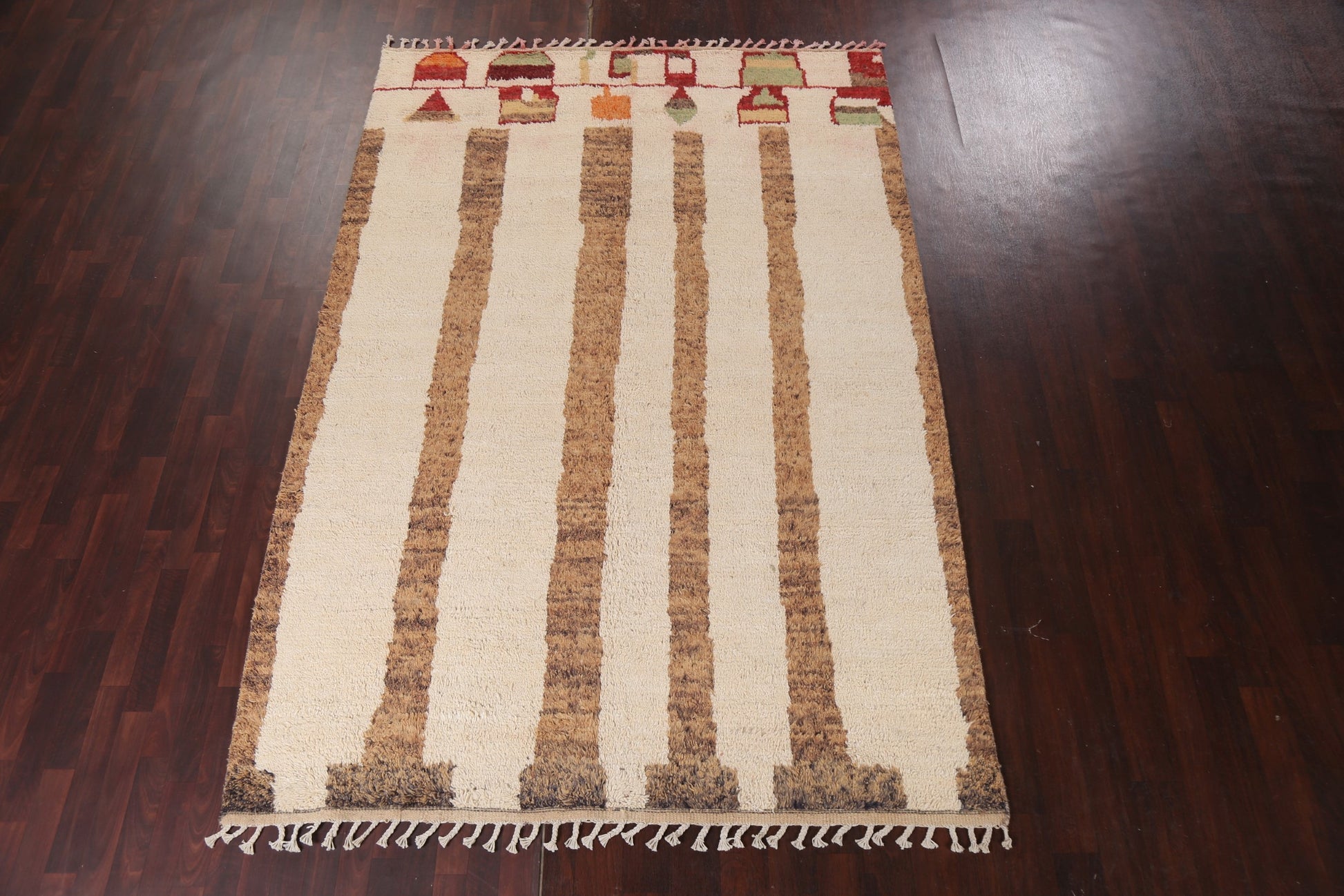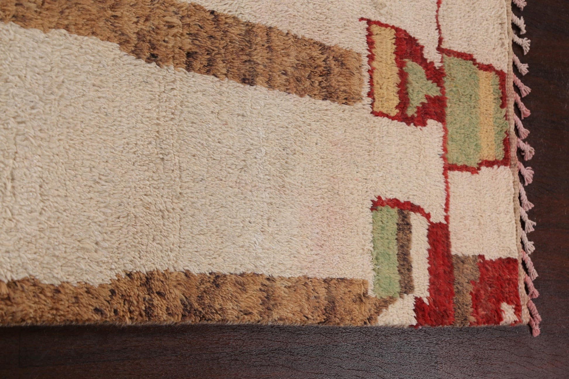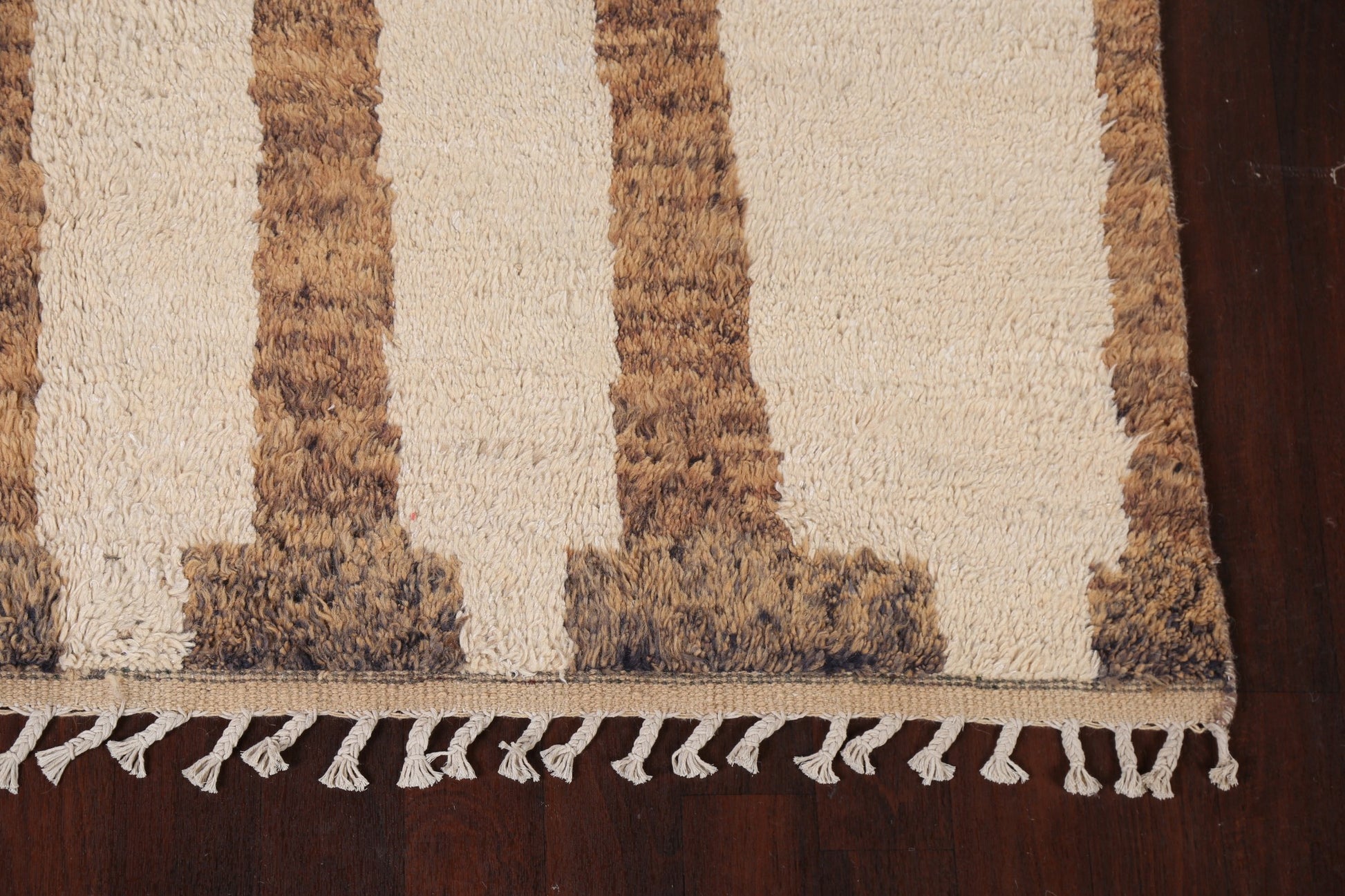 A Beautiful Genuine Morocco Moroccan rug is Hand Knotted by skillful weavers in Morocco with 100% Wool Material. This rug is in New, First Quality condition. dimensions are 10' 6'' X 6' 11'' in foot and 320 X 211 in centimeter. the primary color is Beige & Ivories.