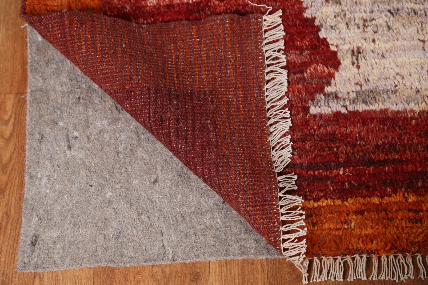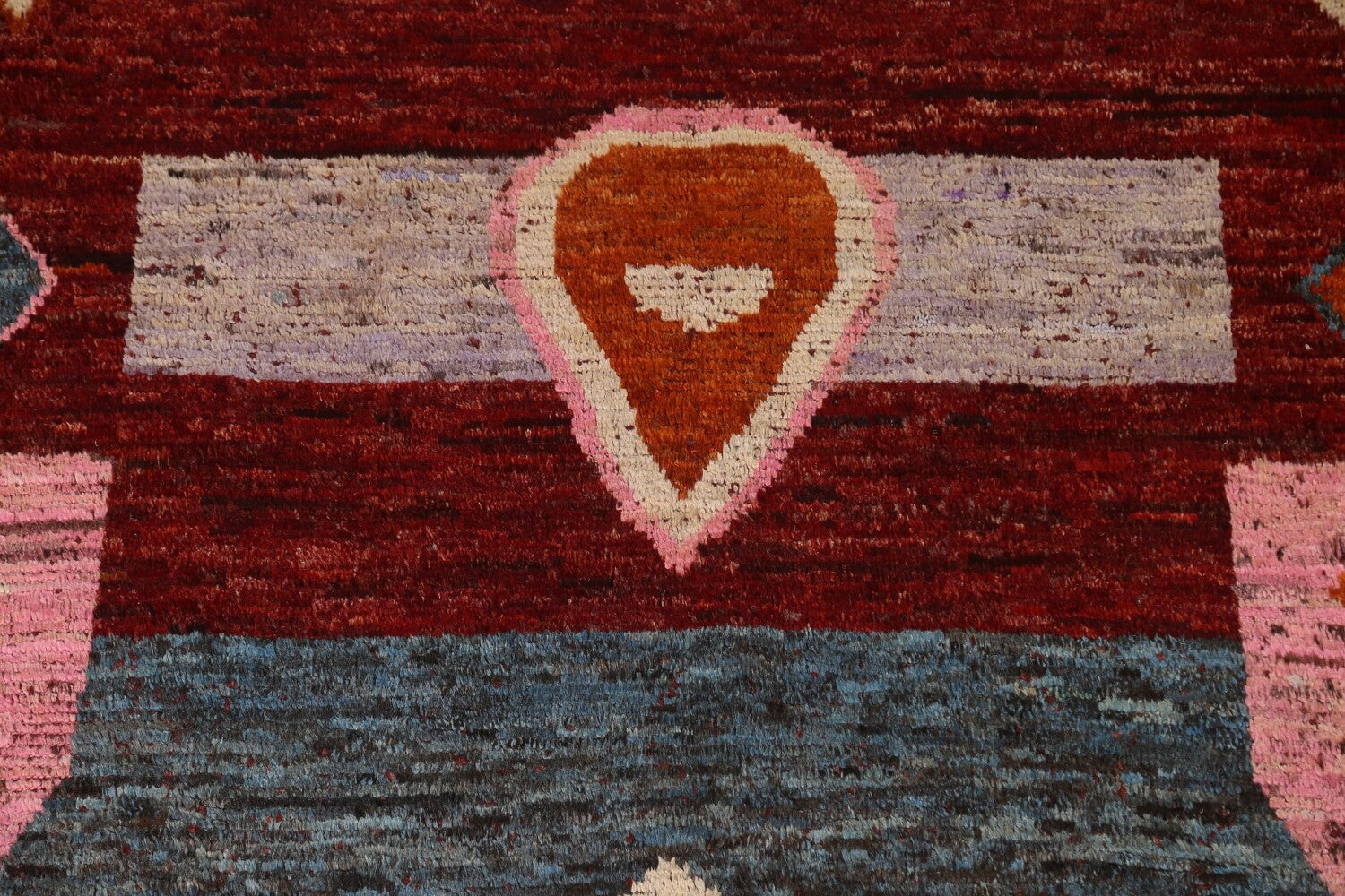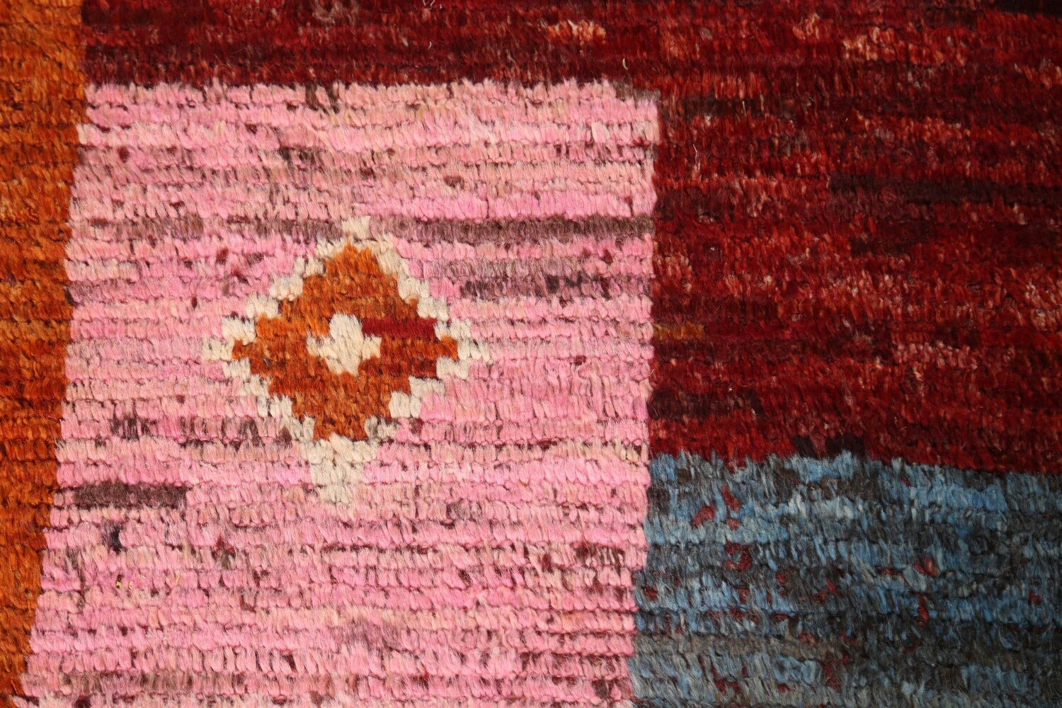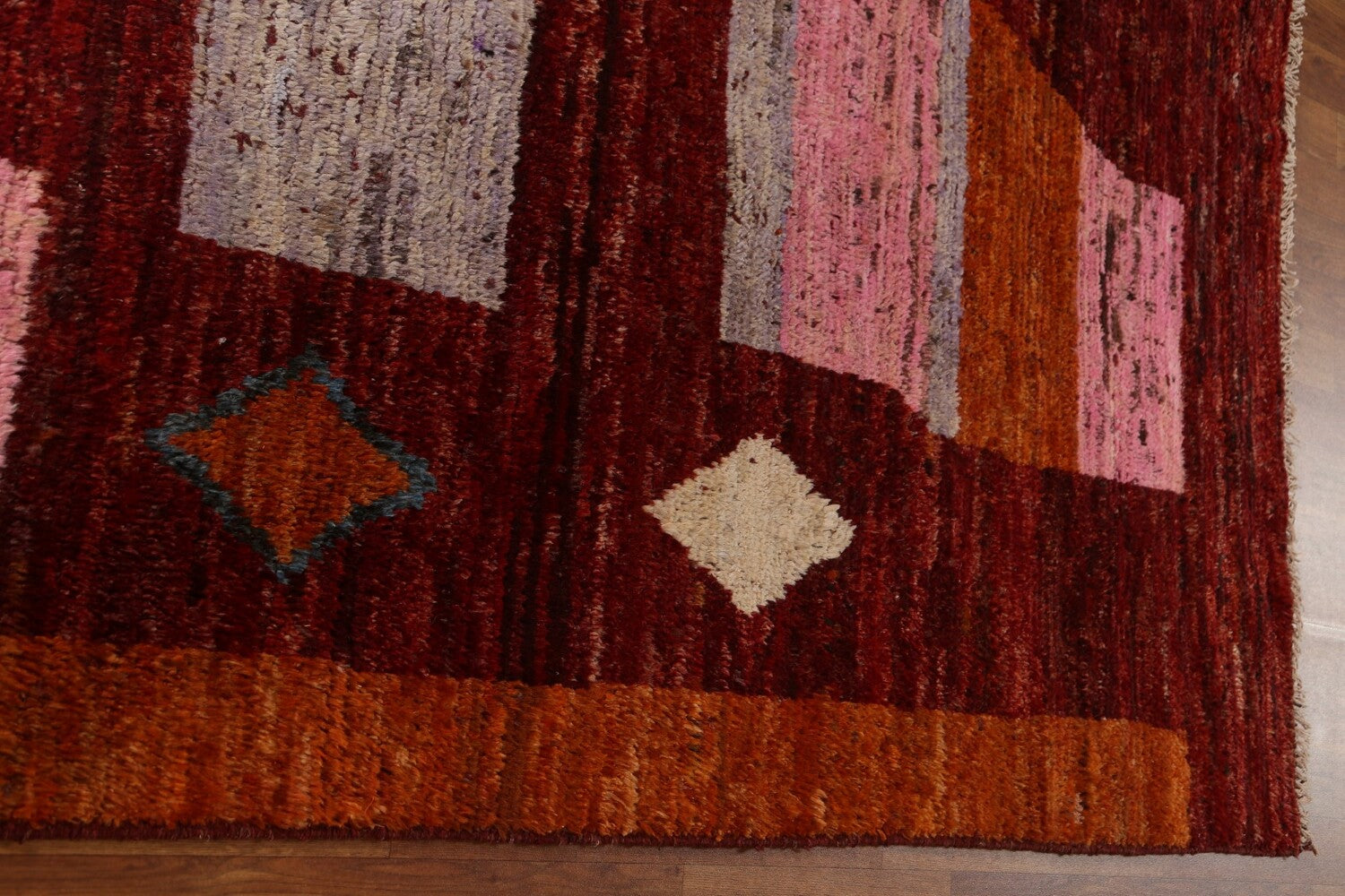 A Beautiful Genuine Pakistan Moroccan rug is Hand Knotted by skillful weavers in Pakistan with 100% Wool Material. This rug is in condition. dimensions are 9' 5'' X 6' 11'' in foot and 287 X 211 in centimeter. the primary color is Red.