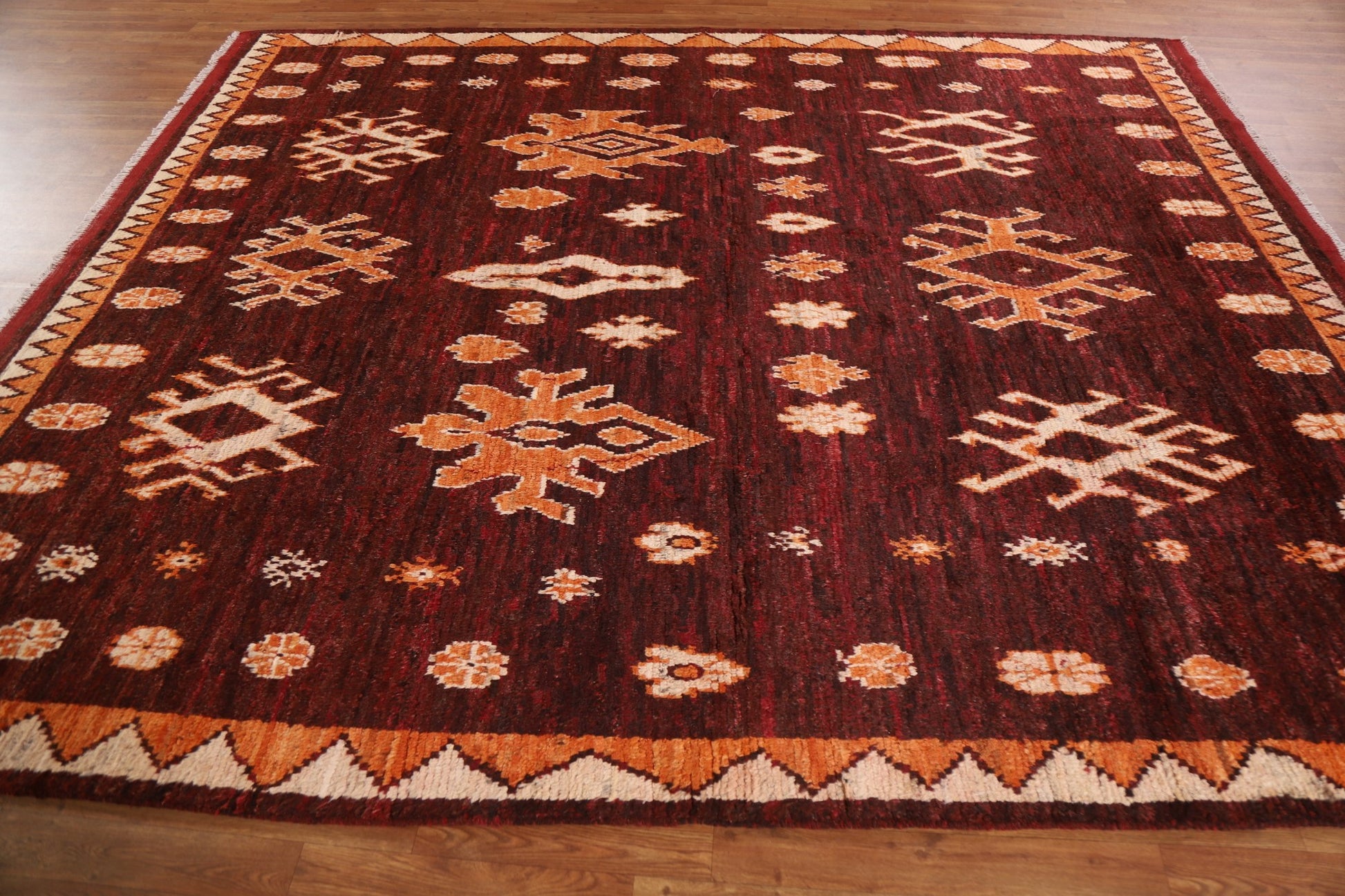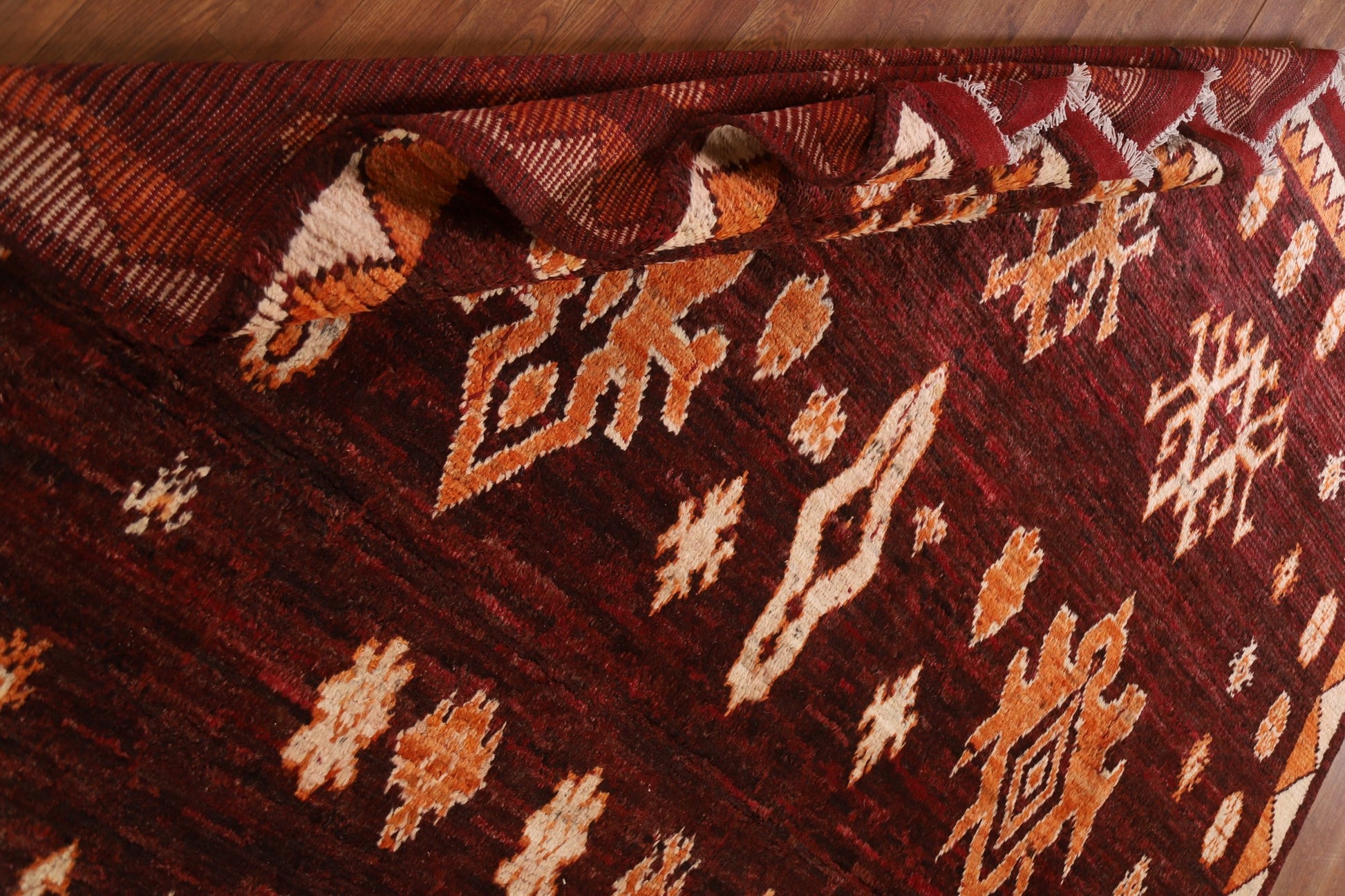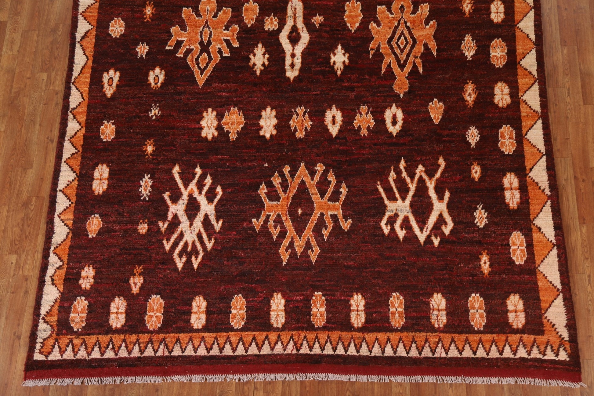 A Beautiful Genuine Pakistan Moroccan rug is Hand Knotted by skillful weavers in Pakistan with 100% Wool Material. This rug is in New, First Quality condition. dimensions are 10' 0'' X 8' 3'' in foot and 305 X 251 in centimeter. the primary color is Red.