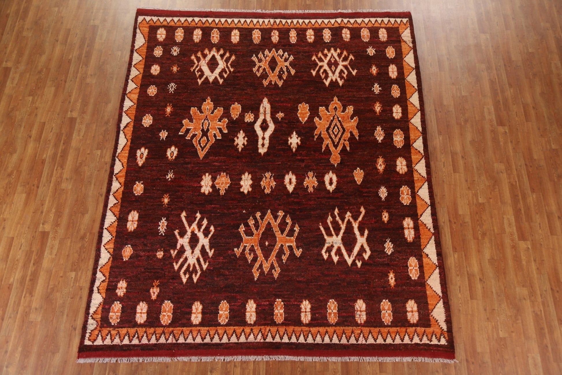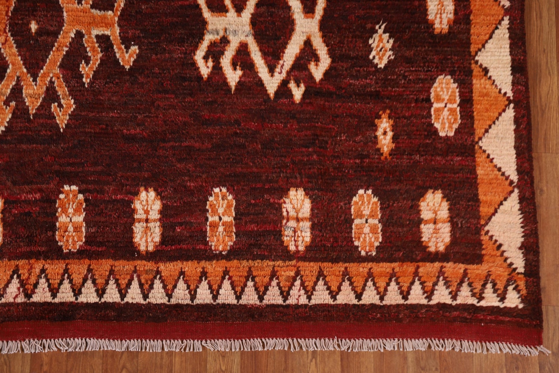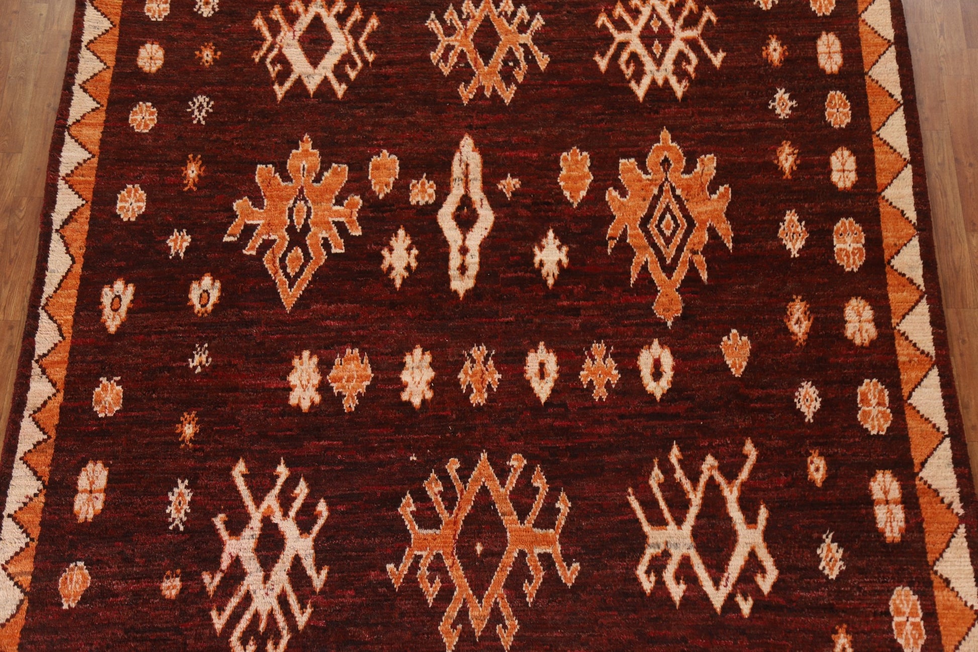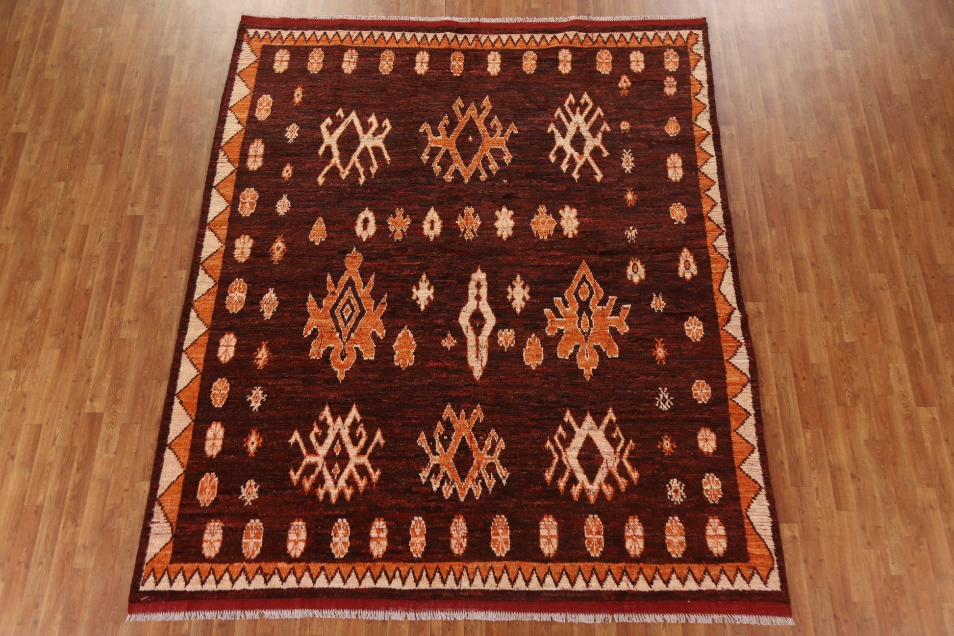 A Beautiful Genuine Pakistan Moroccan rug is Hand Knotted by skillful weavers in Pakistan with 100% Wool Material. This rug is in New, First Quality condition. dimensions are 10' 0'' X 8' 3'' in foot and 305 X 251 in centimeter. the primary color is Red.