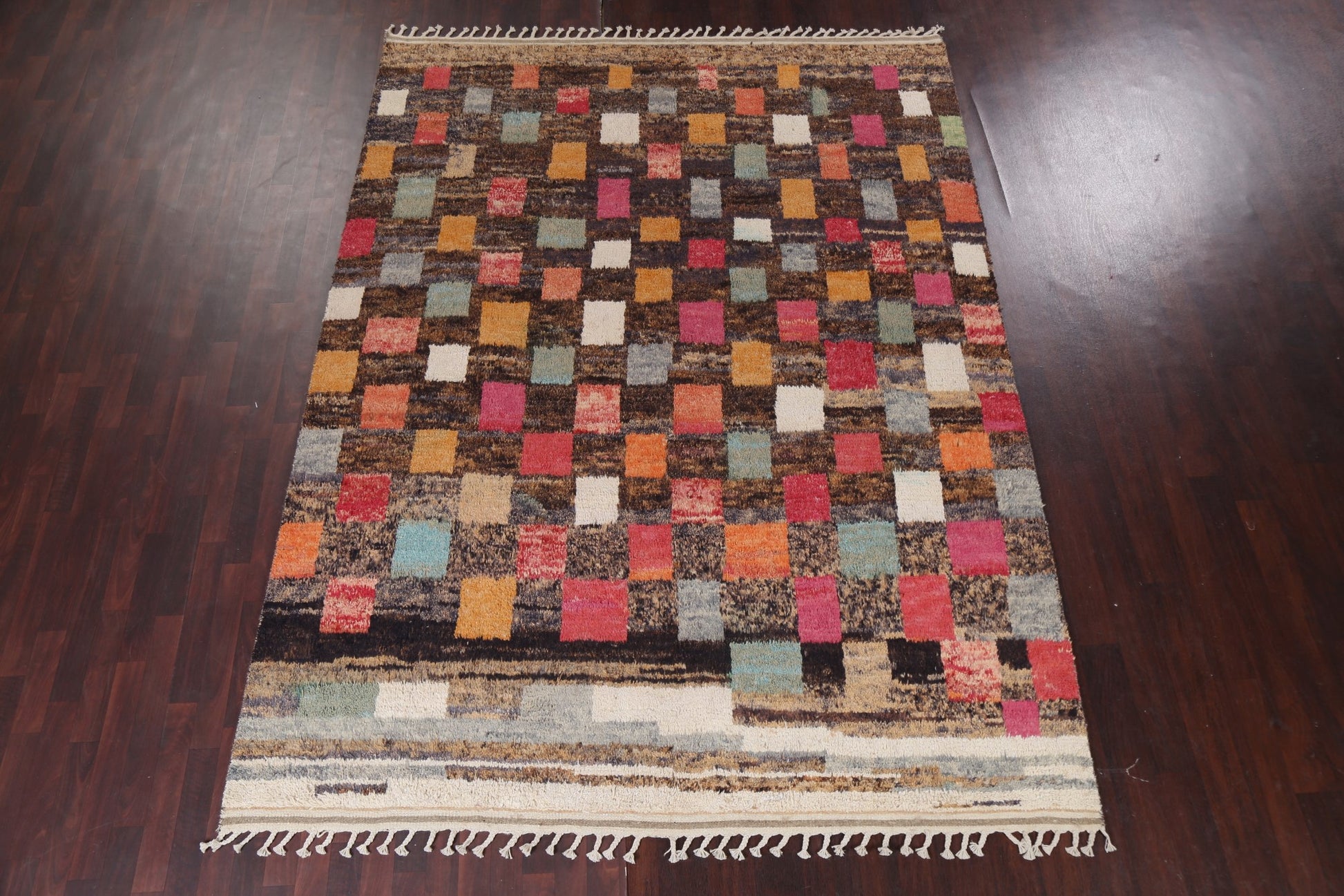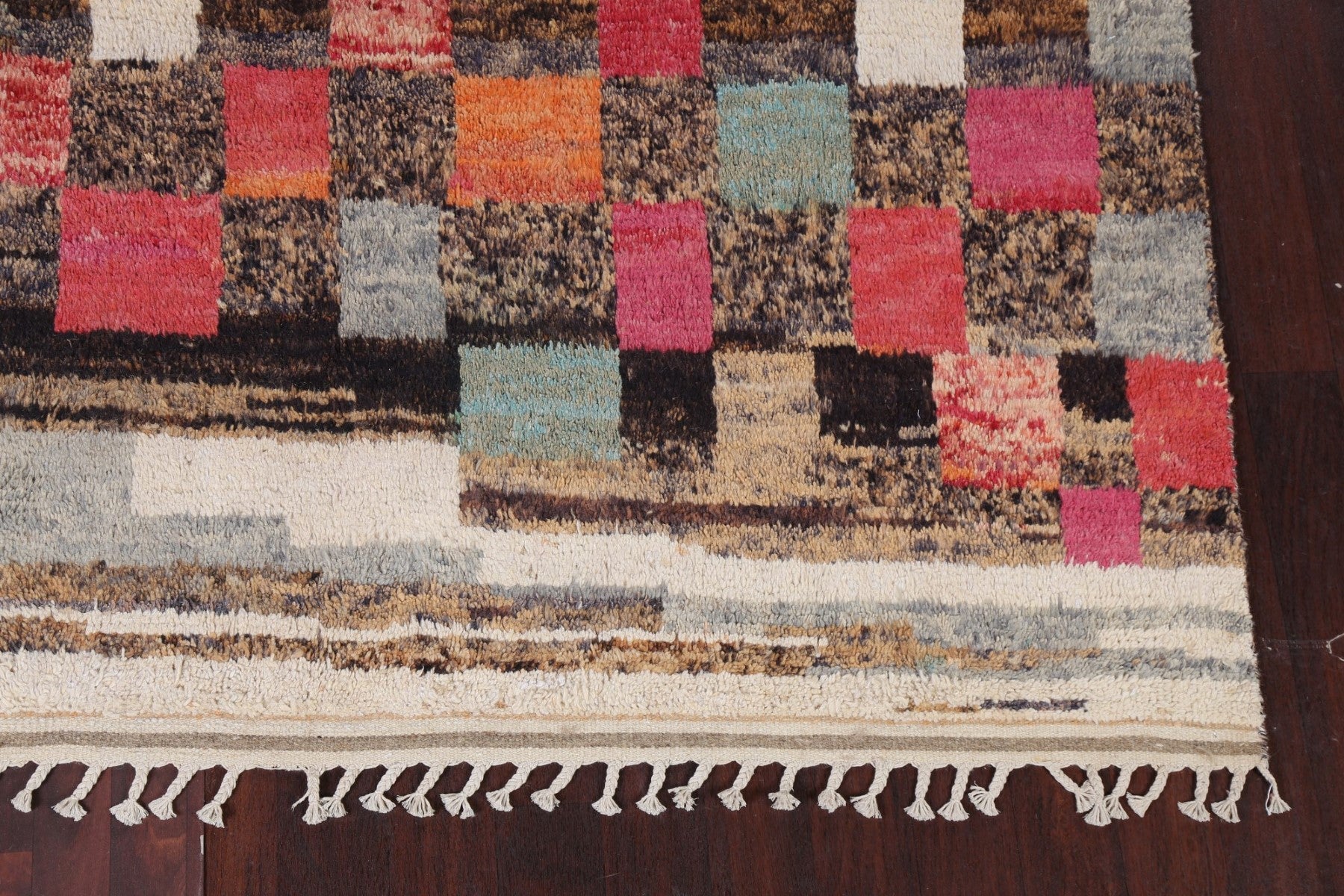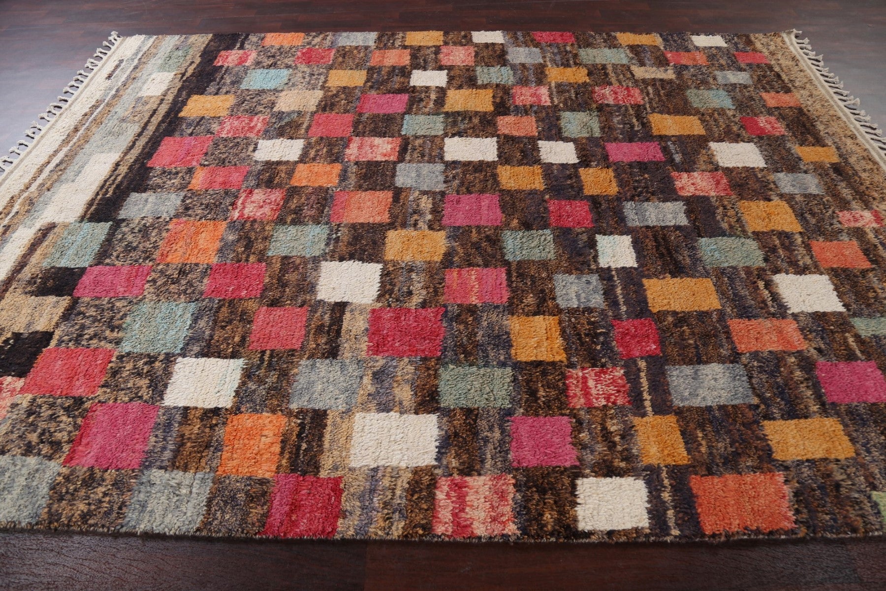 A Beautiful Genuine Pakistan Moroccan rug is Hand Knotted by skillful weavers in Pakistan with 100% Wool Material. This rug is in New, First Quality condition. dimensions are 10' 7'' X 7' 8'' in foot and 323 X 234 in centimeter. the primary color is Multi-Colored.