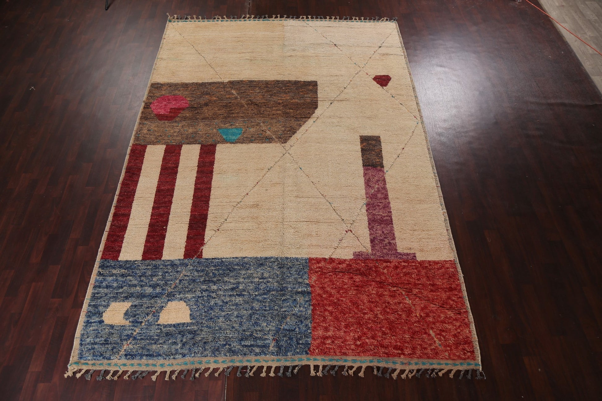 A Beautiful Genuine Morocco Moroccan rug is Hand Knotted by skillful weavers in Morocco with 100% Wool Material. This rug is in New, First Quality condition. dimensions are 12' 11'' X 8' 10'' in foot and 394 X 269 in centimeter. the primary color is Beige & Ivories.