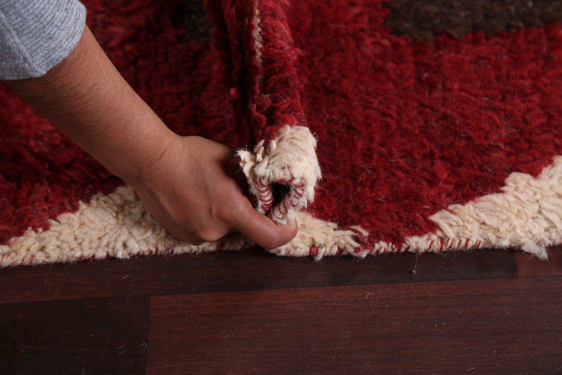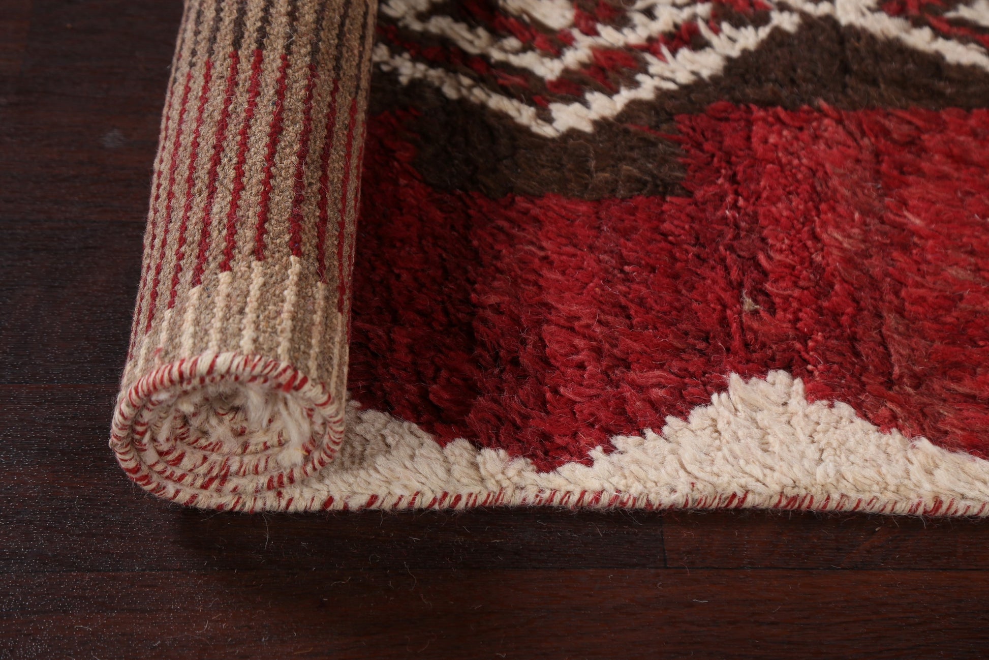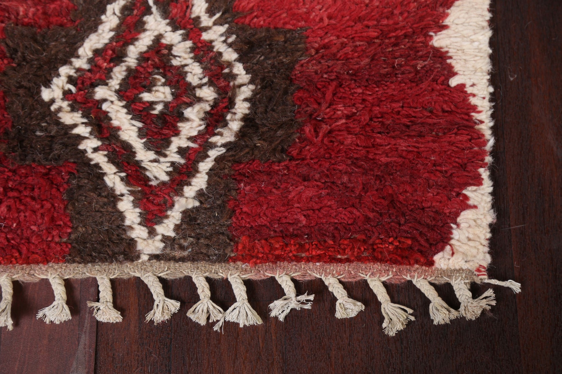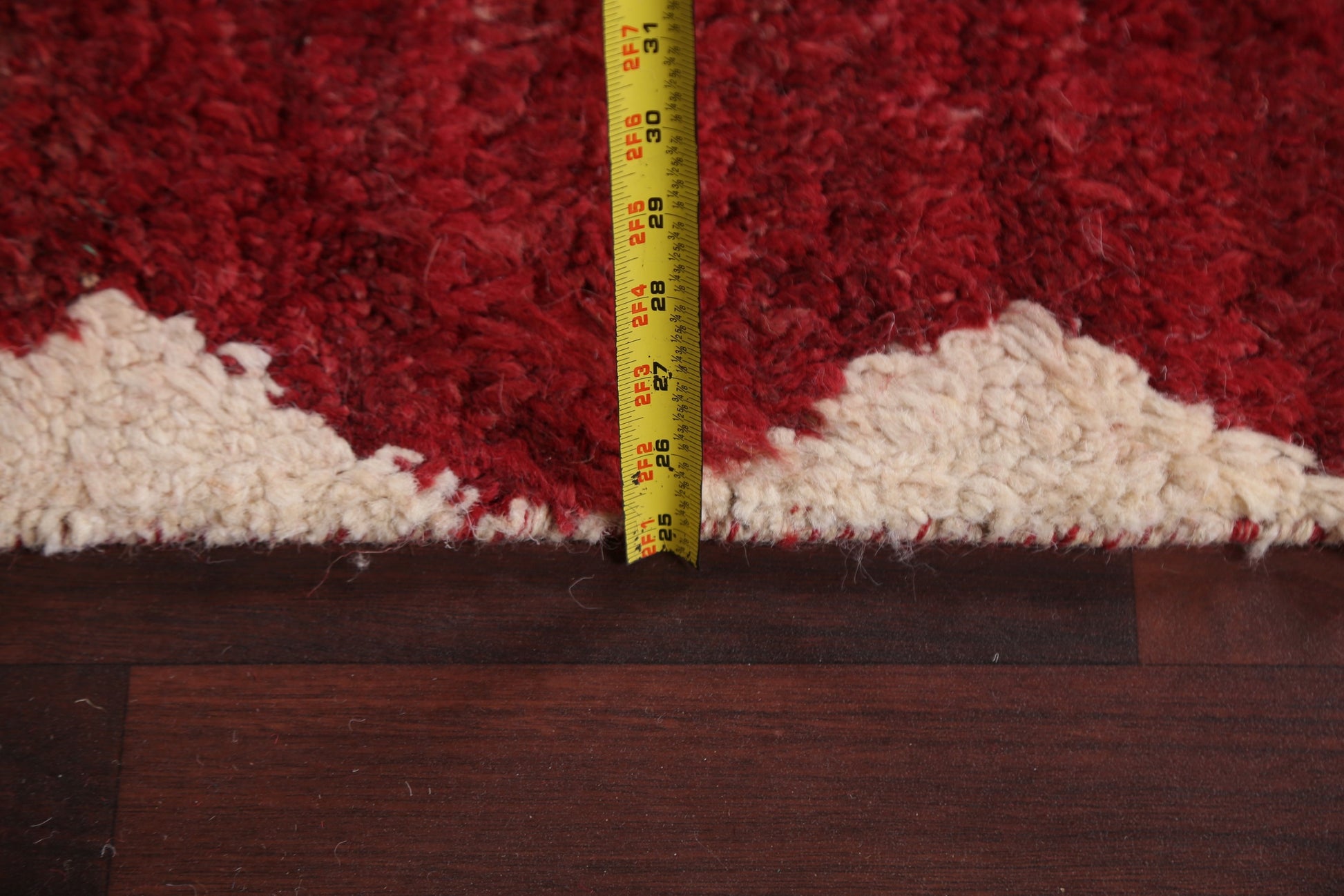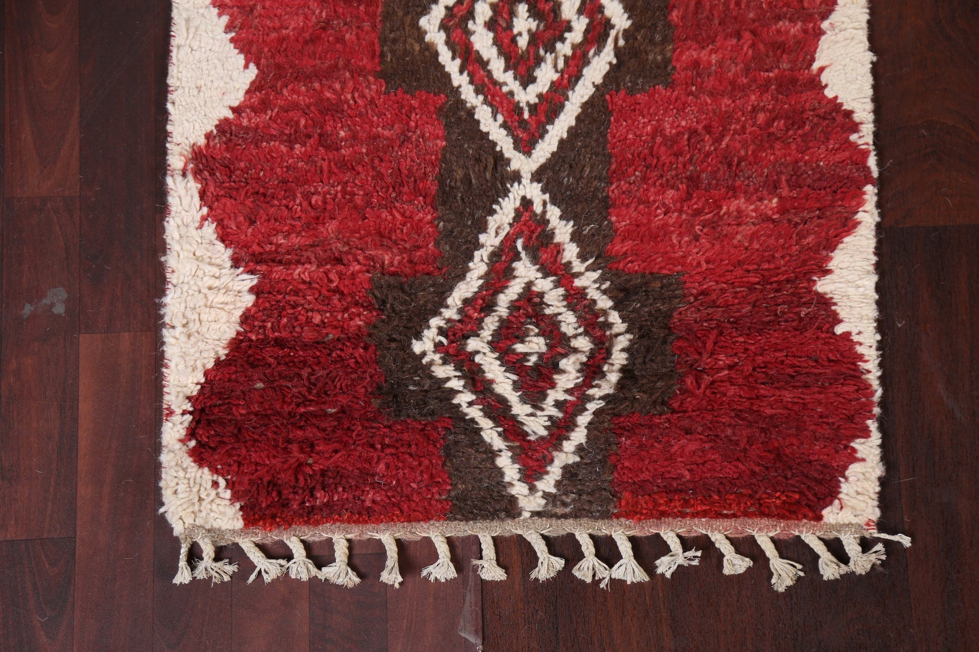 A Beautiful Genuine Morocco Moroccan rug is Hand Knotted by skillful weavers in Morocco with 100% Wool Material. This rug is in New, First Quality condition. dimensions are 12' 3'' X 2' 7'' in foot and 373 X 79 in centimeter. the primary color is Red.