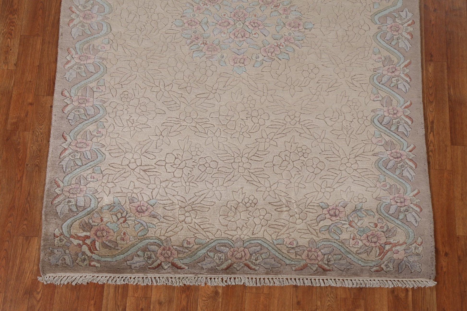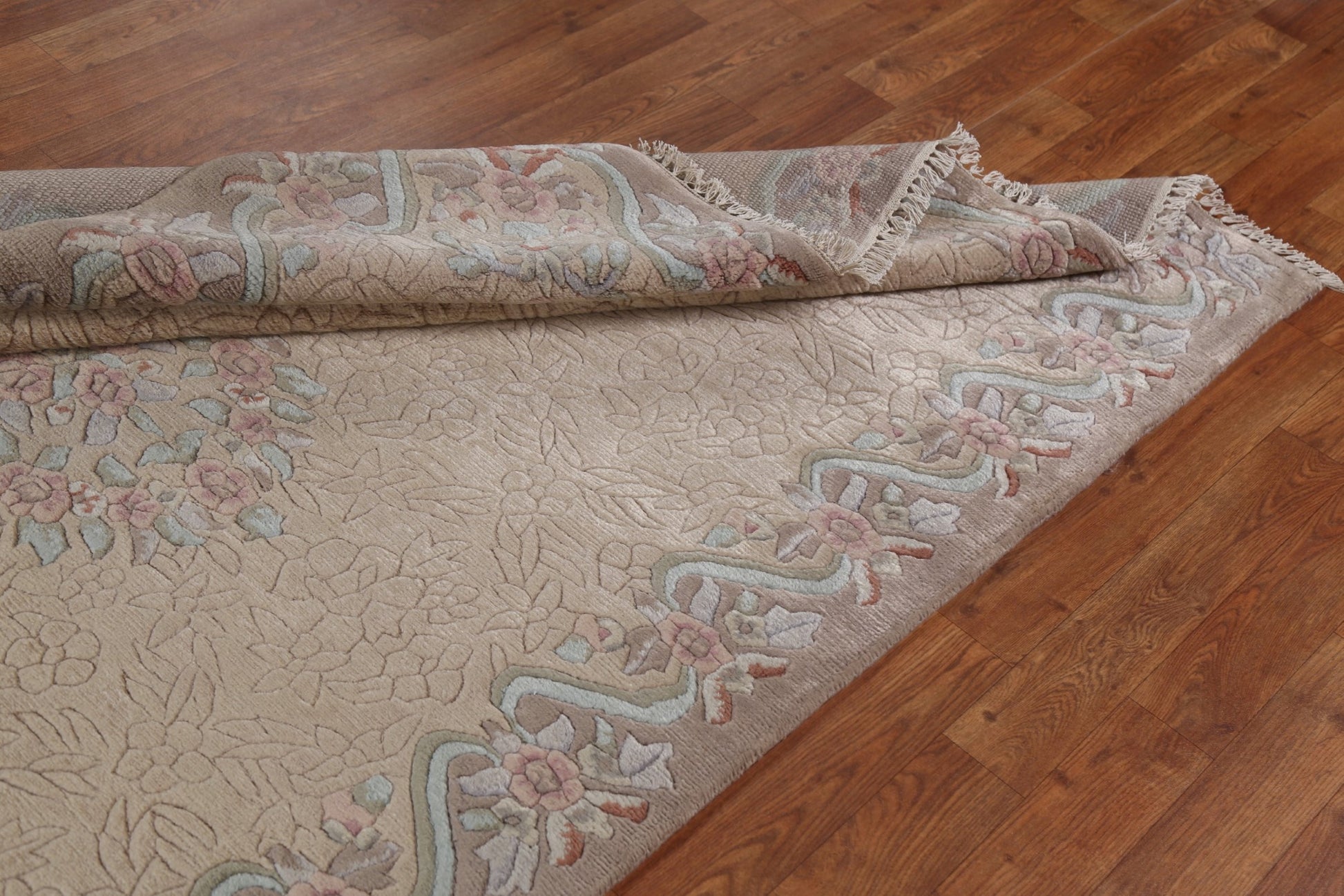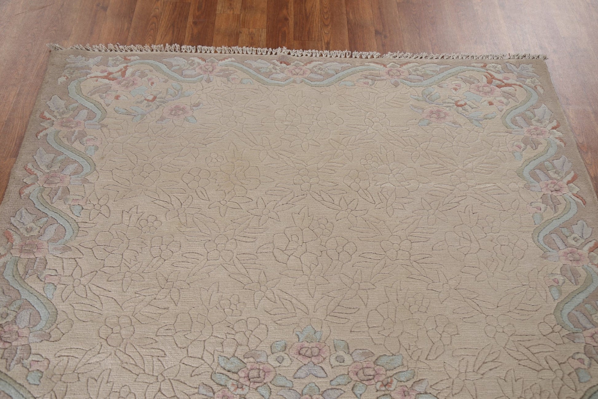 A Beautiful Genuine India Nepalese rug is Hand Knotted by skillful weavers in India with 100% Wool Material. This rug is in New, First Quality condition. dimensions are 6' 9'' X 4' 8'' in foot and 206 X 142 in centimeter. the primary color is Beige & Ivories.