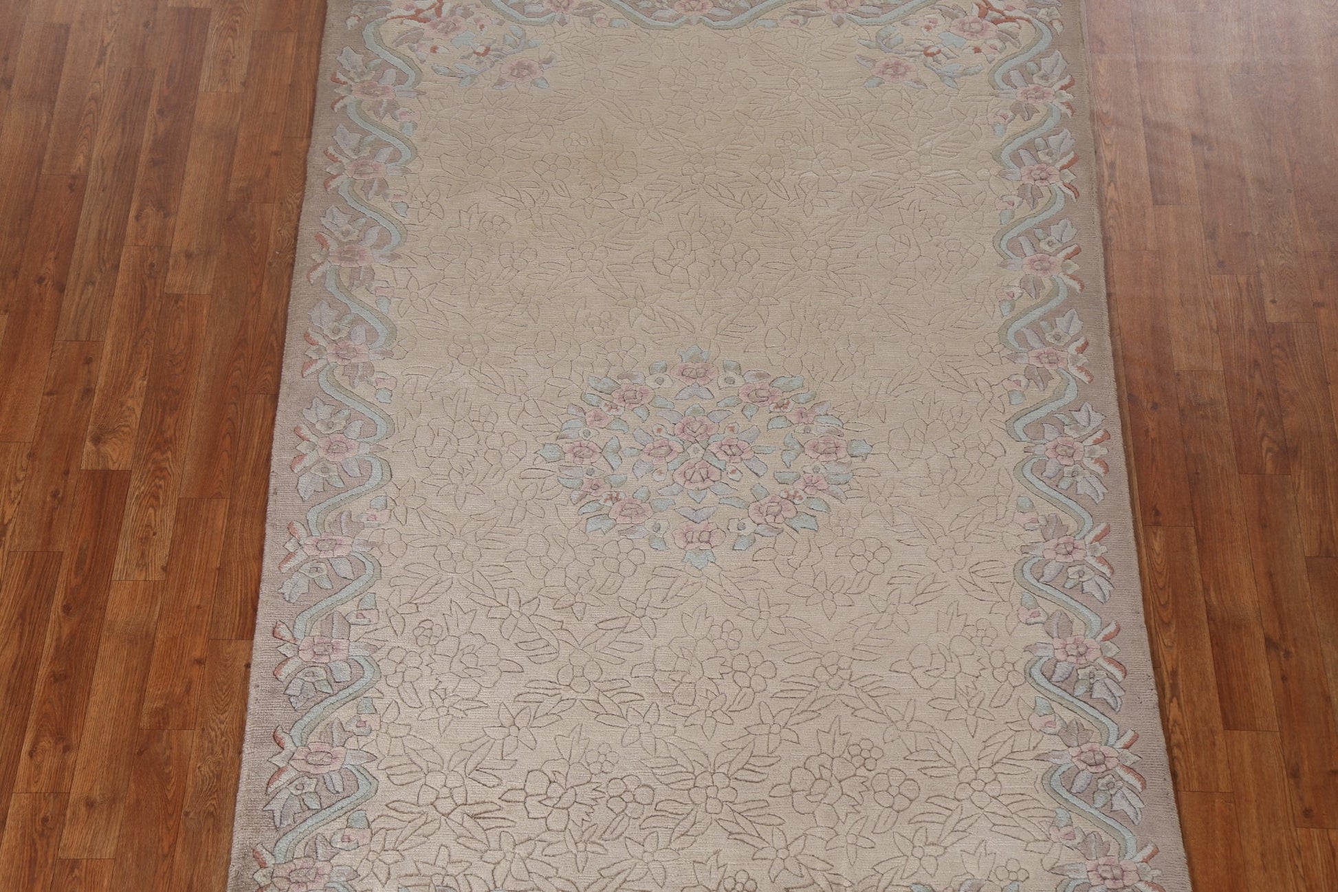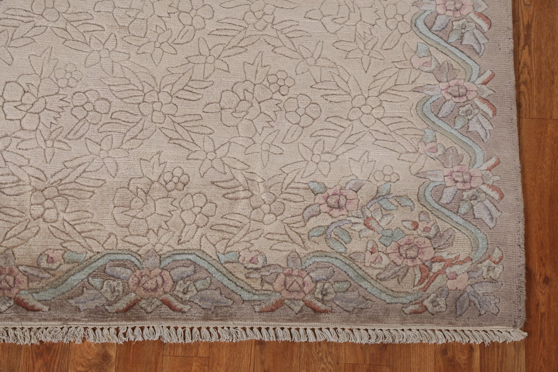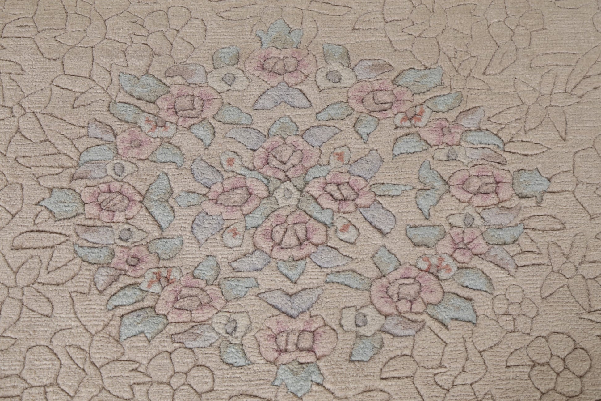 A Beautiful Genuine India Nepalese rug is Hand Knotted by skillful weavers in India with 100% Wool Material. This rug is in New, First Quality condition. dimensions are 6' 9'' X 4' 8'' in foot and 206 X 142 in centimeter. the primary color is Beige & Ivories.