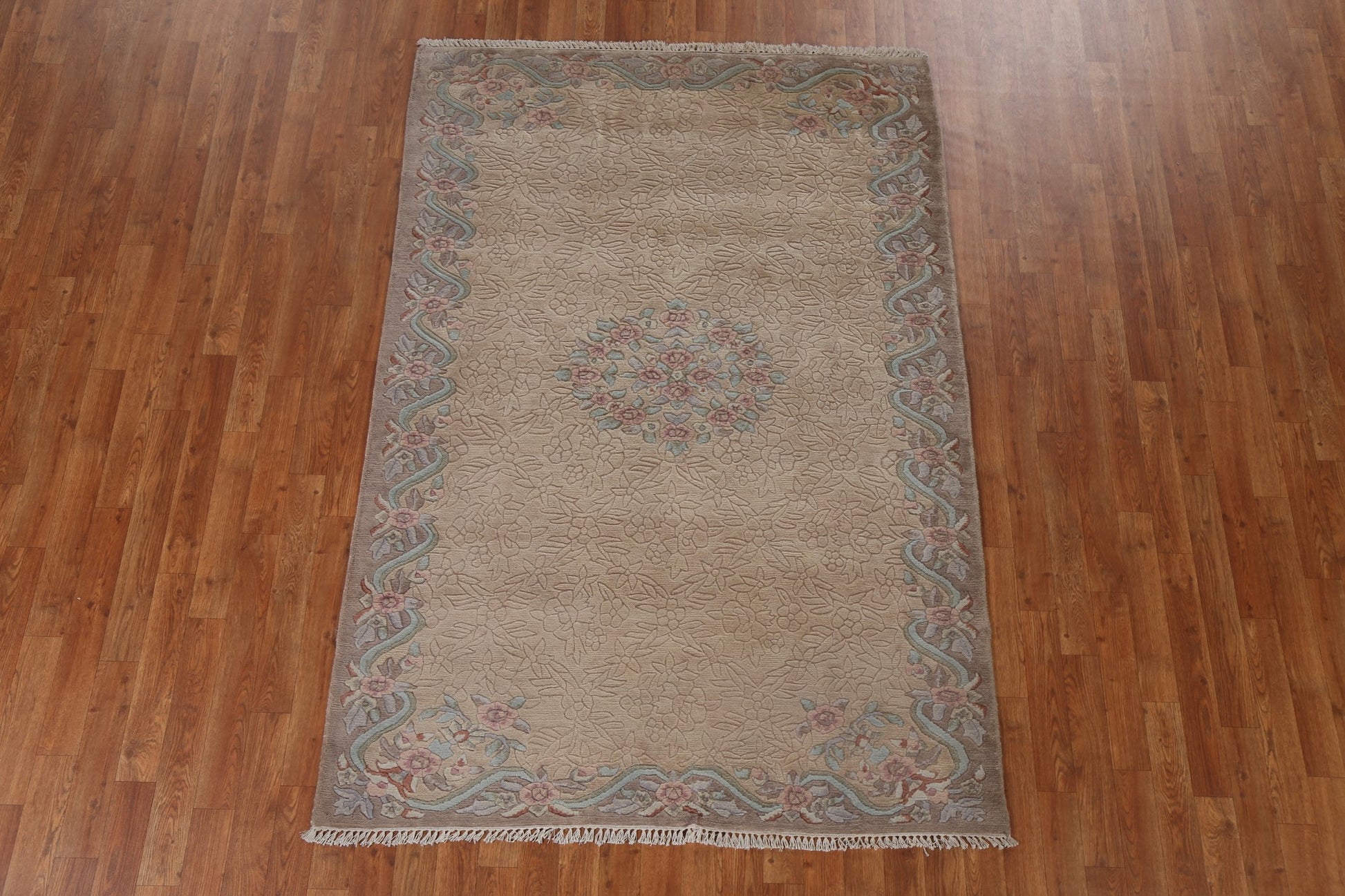 Handmade Nature Print Nepalese Oriental Wool Rug 5x7
