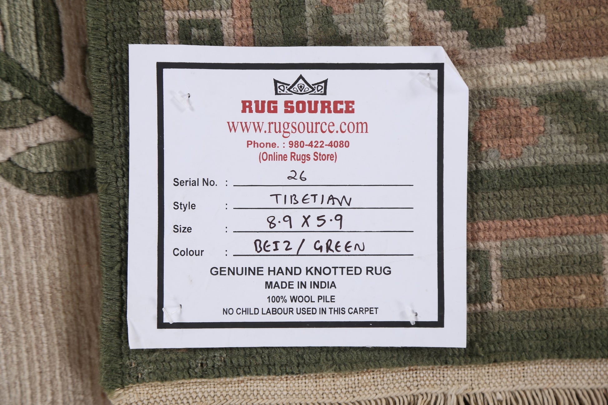 A Beautiful Genuine India Nepal ( Tibetan ) rug is Hand Knotted by skillful weavers in India with 100% Wool Material. This rug is in New, First Quality condition. dimensions are 8' 9'' X 5' 9'' in foot and 267 X 175 in centimeter. the primary color is Beige & Ivories.