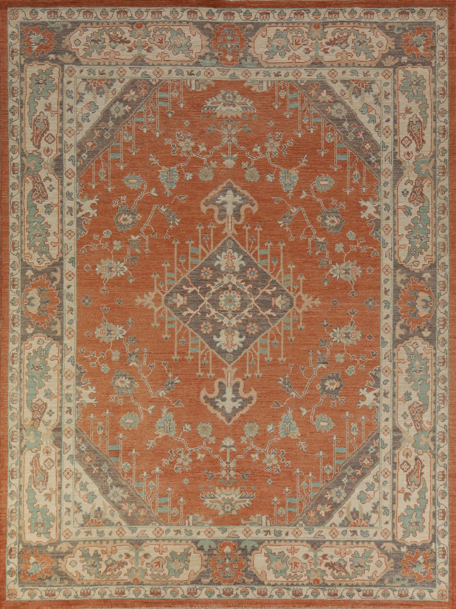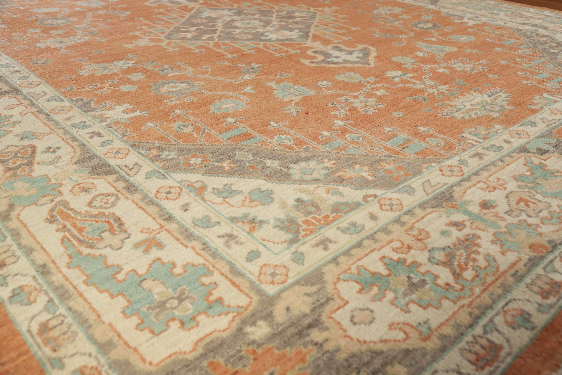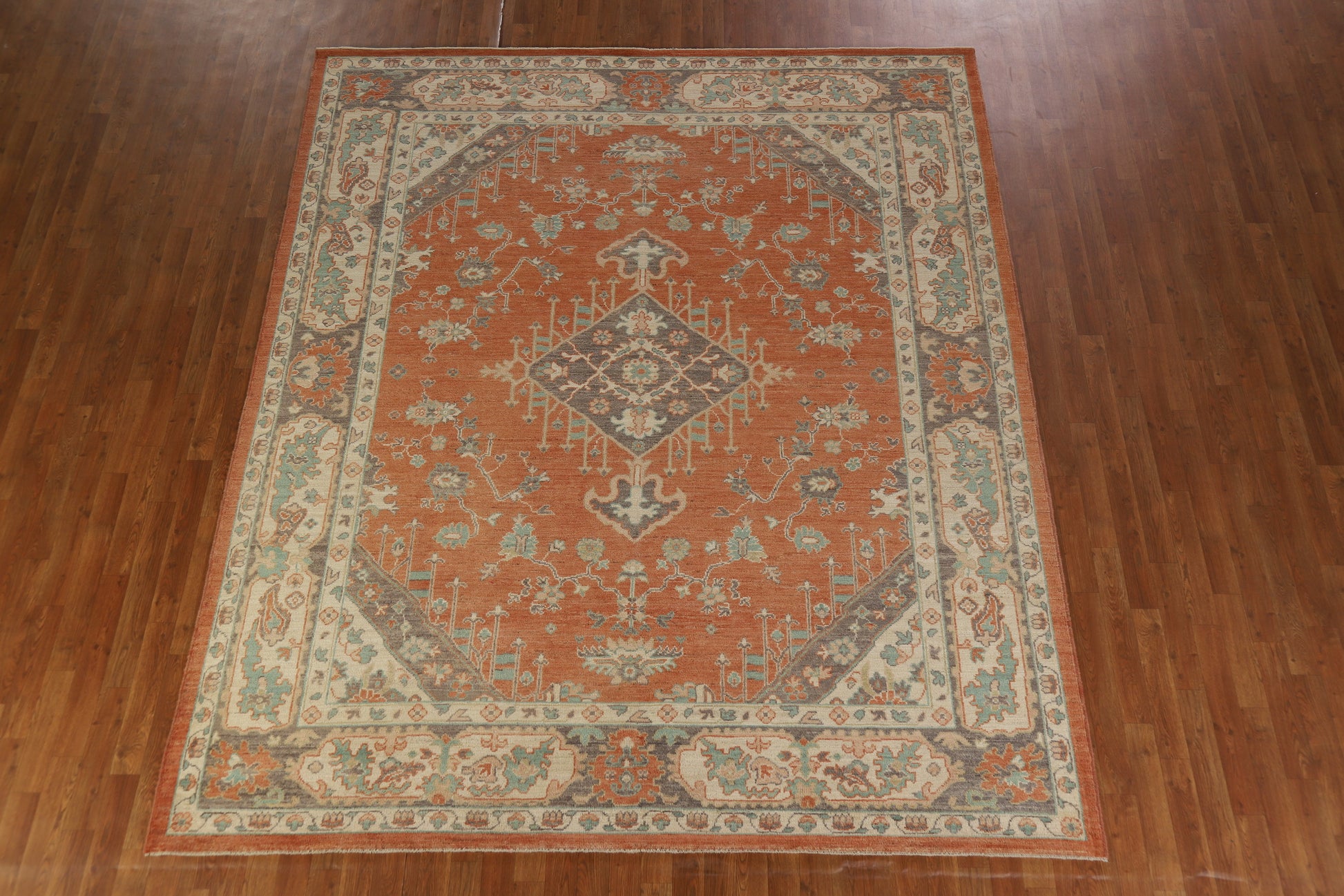 A Beautiful Genuine Turkey Oushak rug is Hand Knotted by skillful weavers in Turkey with 100% Wool Material. This rug is in New, First Quality condition. dimensions are 10' 1'' X 8' 5'' in foot and 307 X 257 in centimeter. the primary color is Oranges & Rust.