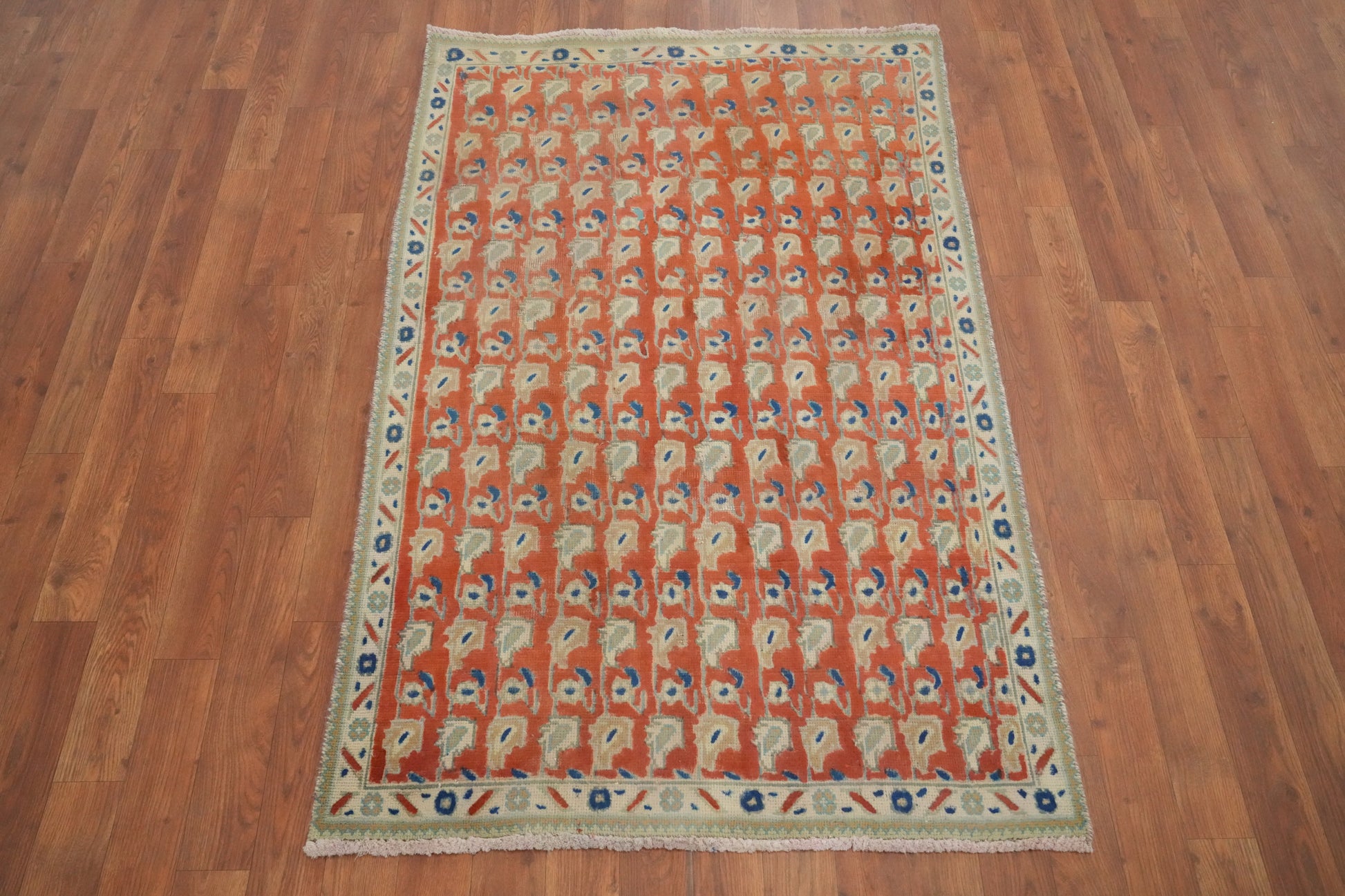 Handmade Orange Wool Tabriz Persian Rug 3x5