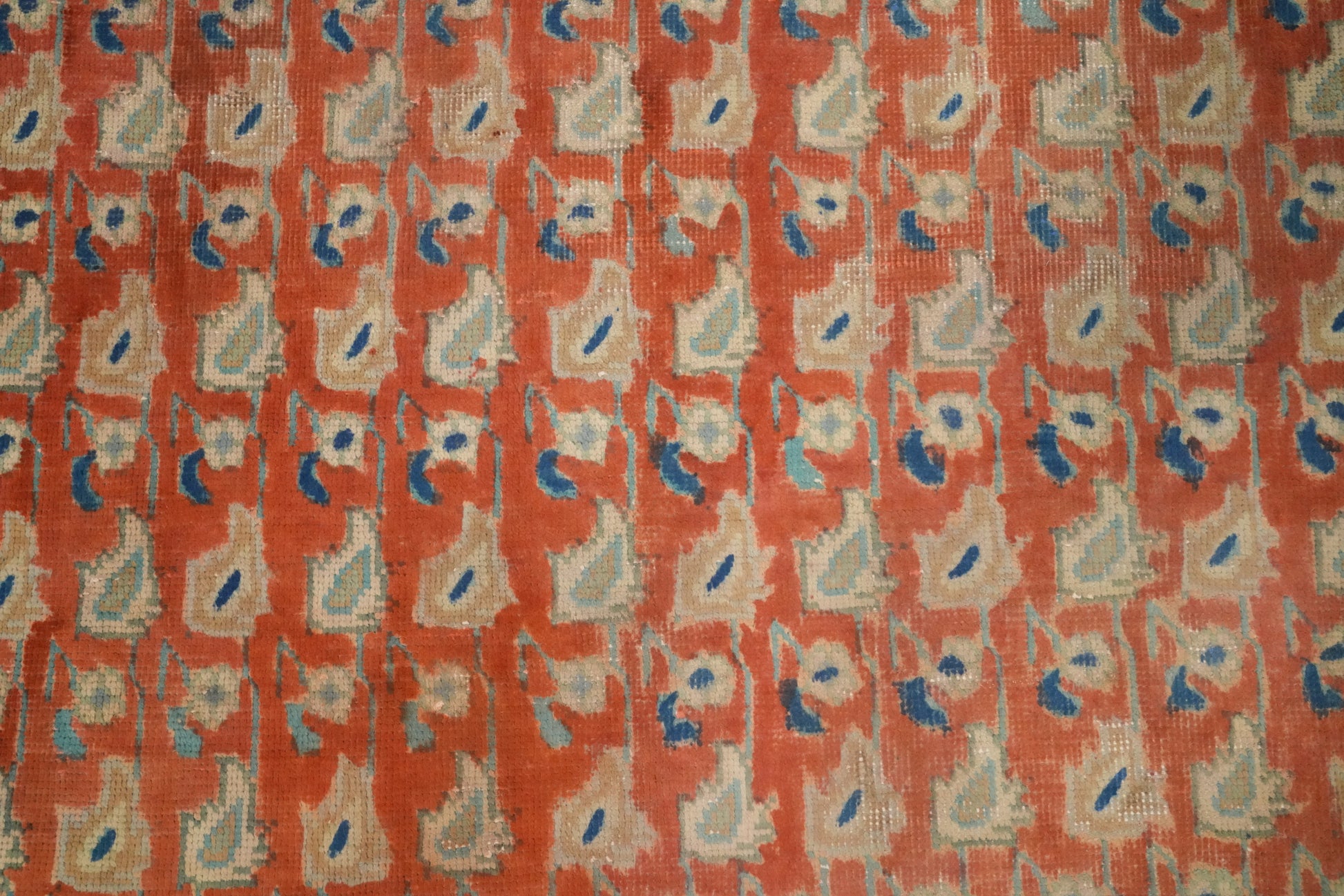A Beautiful Genuine Persia ( Persia ) Tabriz rug is Hand Knotted by skillful weavers in Persia ( Persia ) with 100% Wool Material. This rug is in Very Good (Evenly Low Pile) condition. dimensions are 4' 7'' X 3' 0'' in foot and 140 X 91 in centimeter. the primary color is Oranges & Rust.