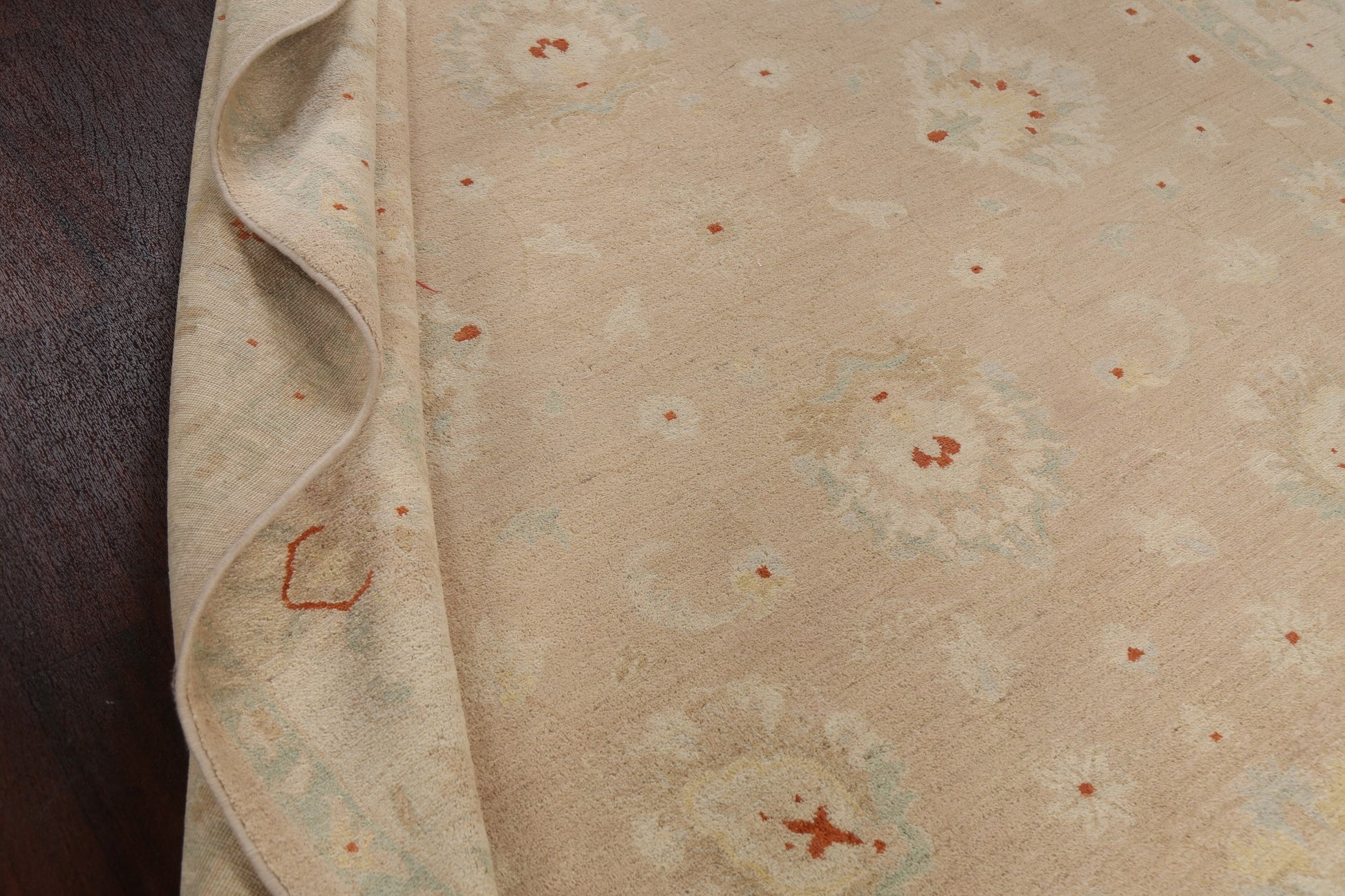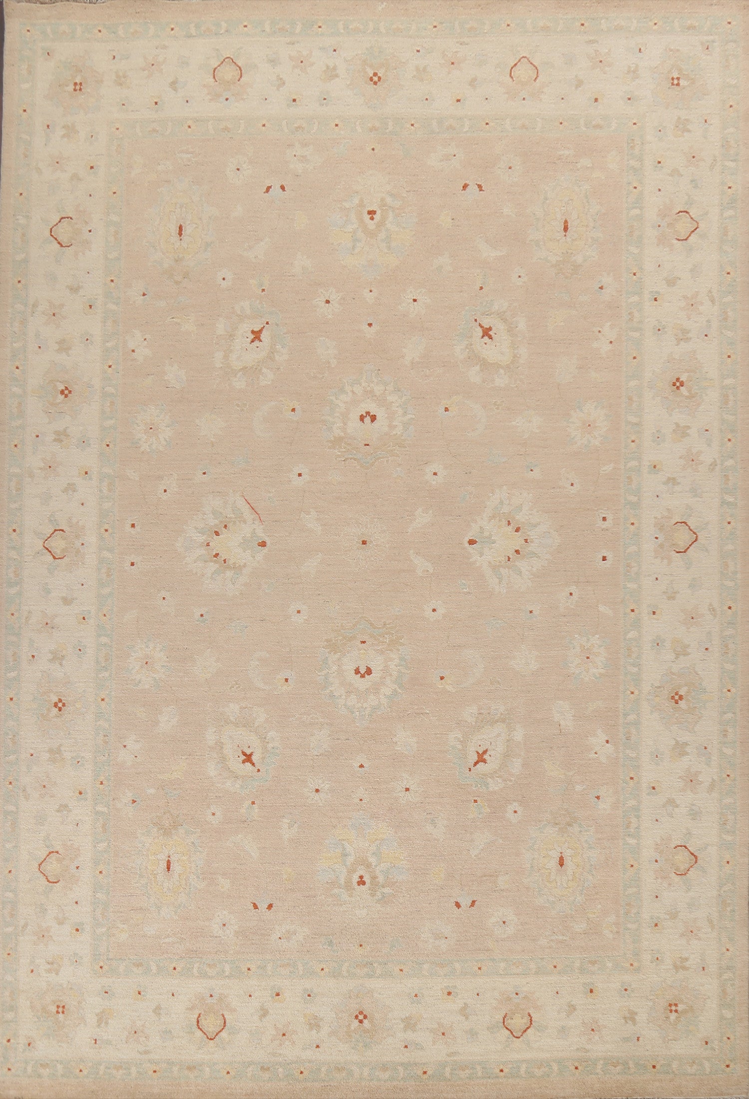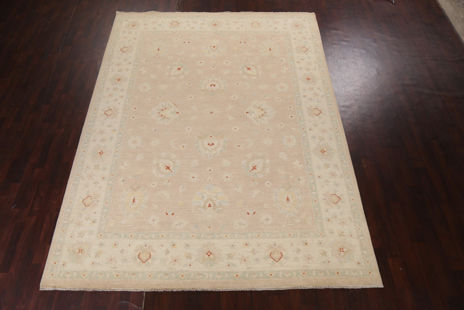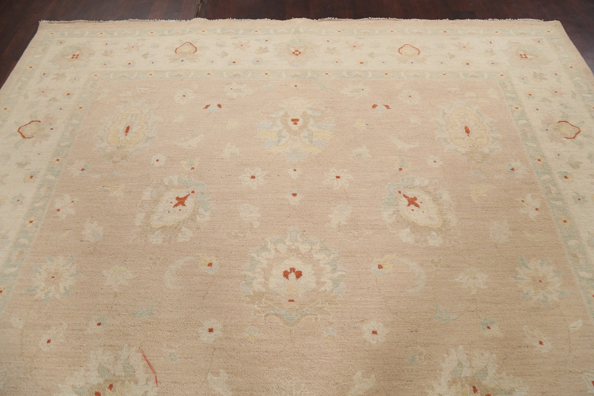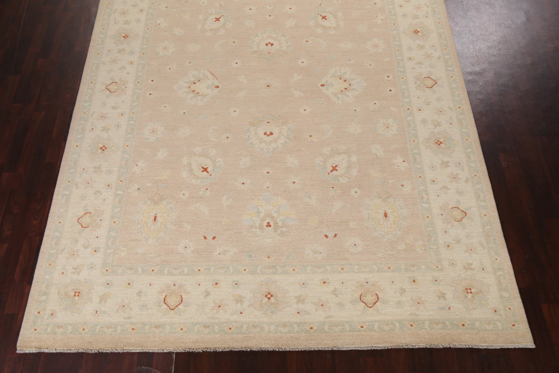 A Beautiful Genuine Pakistan Chobi-Peshawar rug is Hand Knotted by skillful weavers in Pakistan with 100% Wool Material. This rug is in New, First Quality condition. dimensions are 12' 0'' X 8' 10'' in foot and 366 X 269 in centimeter. the primary color is Peach.