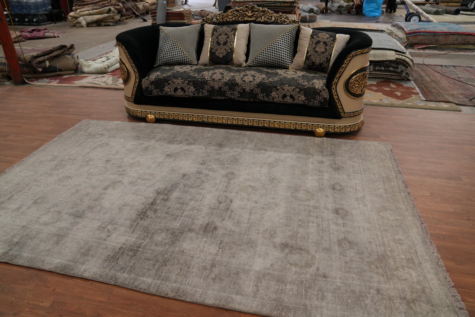 A Beautiful Genuine India Oushak rug is Hand Knotted by skillful weavers in India with Viscose Silk Material. This rug is in New, First Quality condition. dimensions are 9' 10'' X 6' 6'' in foot and  300 X 198 in centimeter. the primary color is Brown.