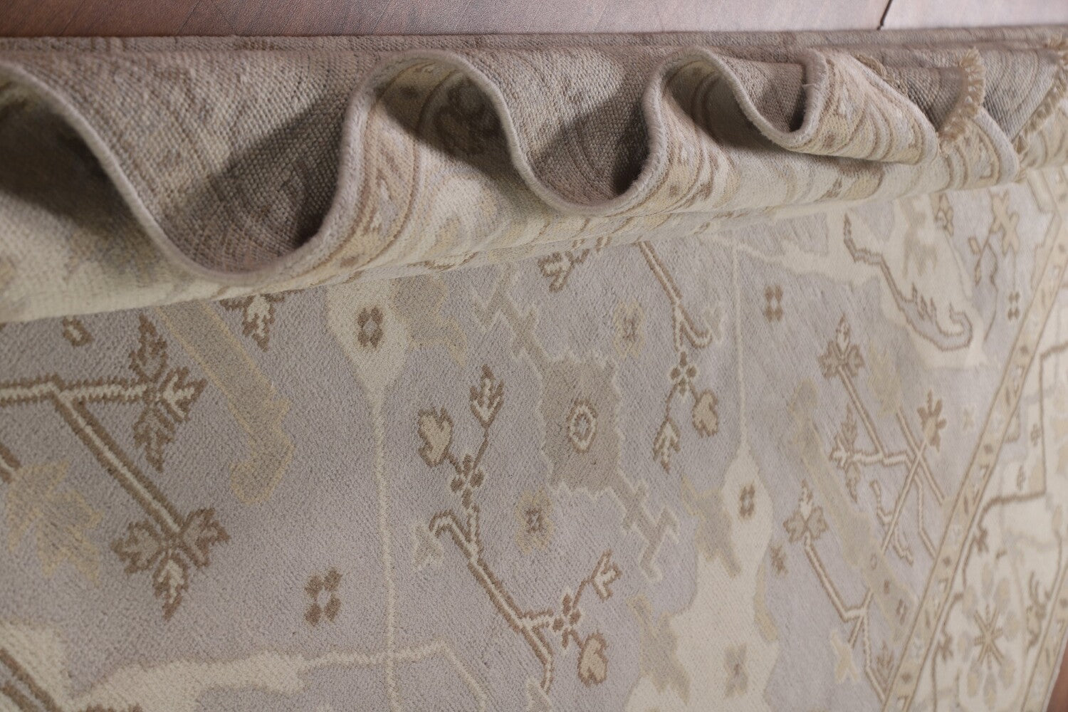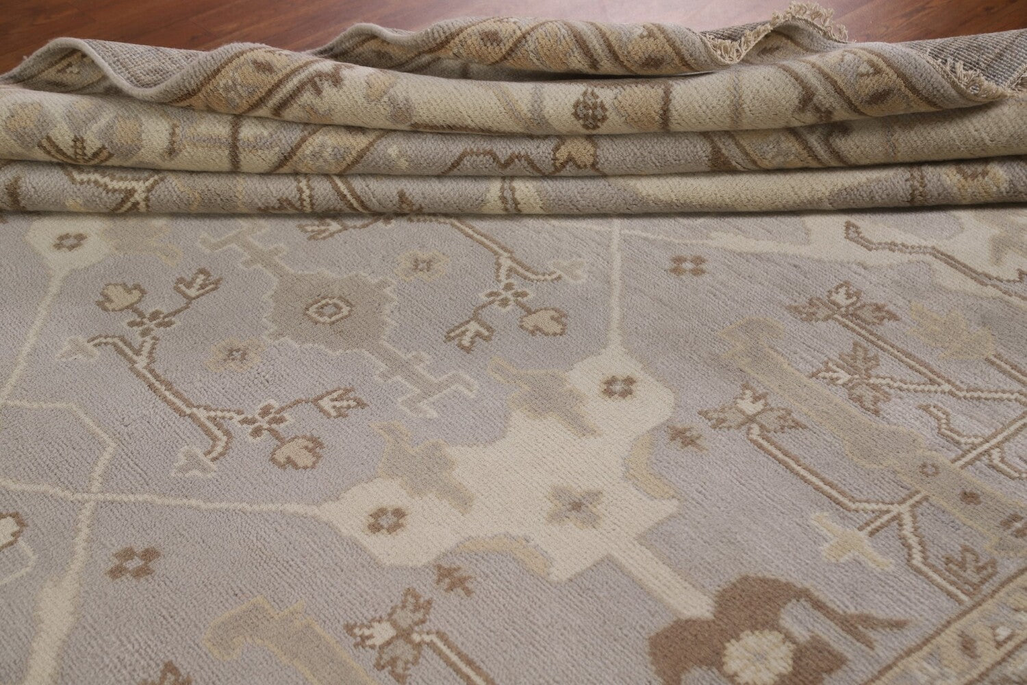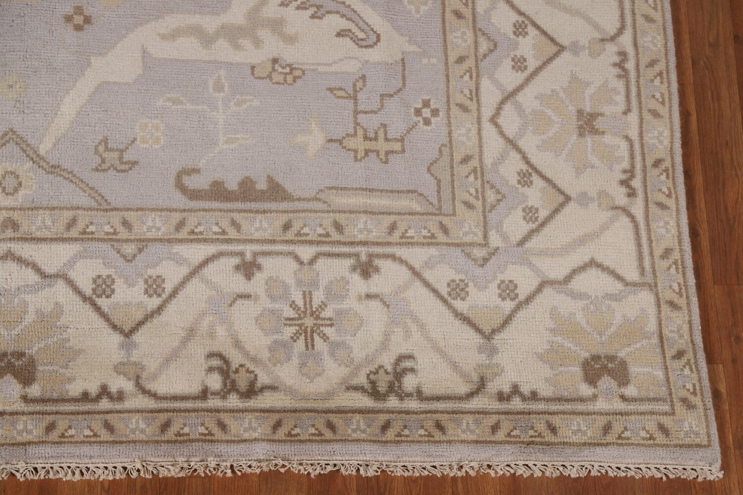 A Beautiful Genuine India Oushak rug is Hand Knotted by skillful weavers in India with 100% Wool Material. This rug is in New, First Quality condition. dimensions are 10' 0'' X 8' 0'' in foot and 305 X 244 in centimeter. the primary color is Greys & Charcoal.