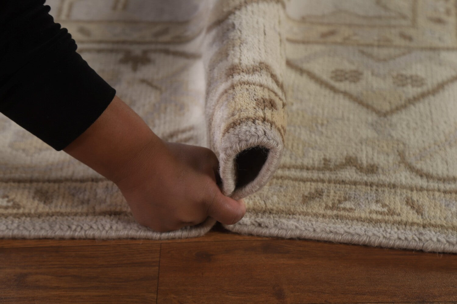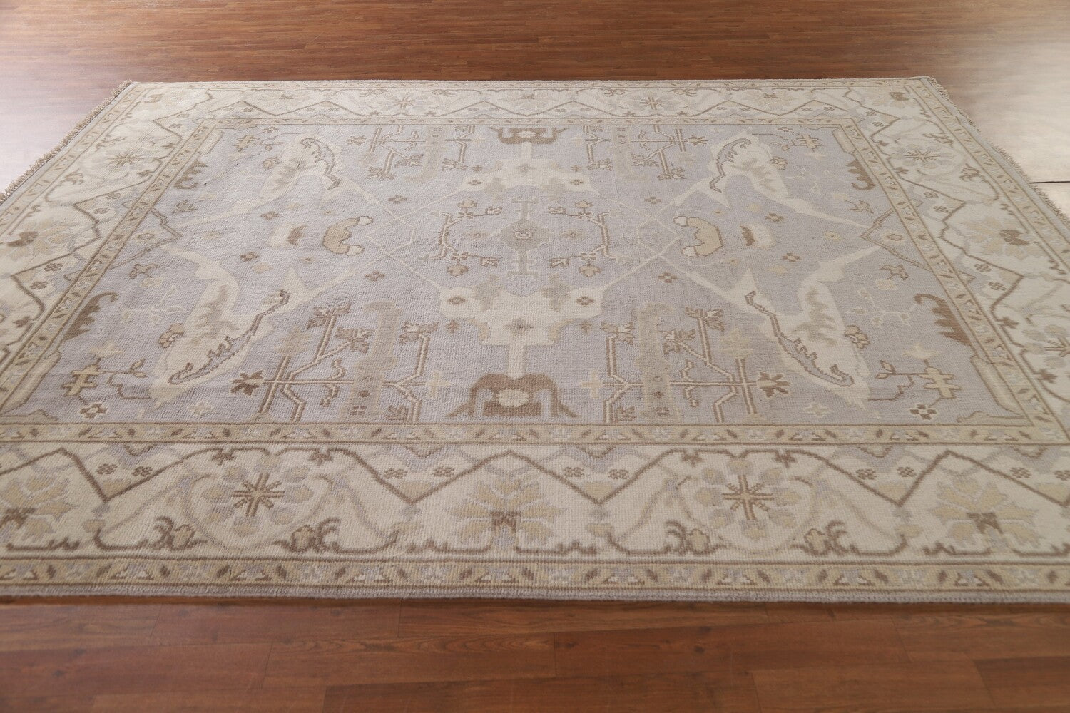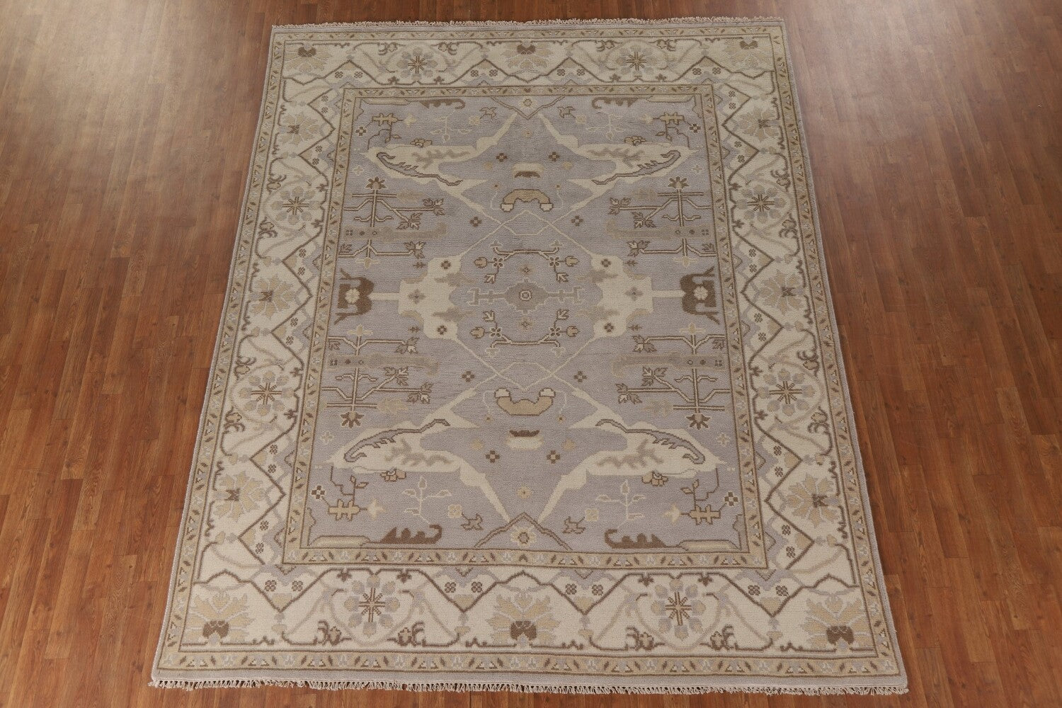 A Beautiful Genuine India Oushak rug is Hand Knotted by skillful weavers in India with 100% Wool Material. This rug is in New, First Quality condition. dimensions are 10' 0'' X 8' 0'' in foot and 305 X 244 in centimeter. the primary color is Greys & Charcoal.