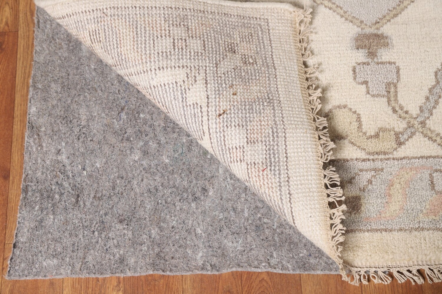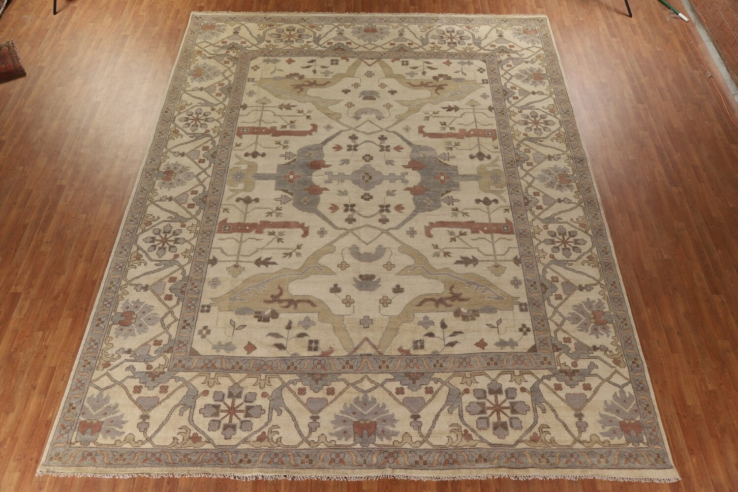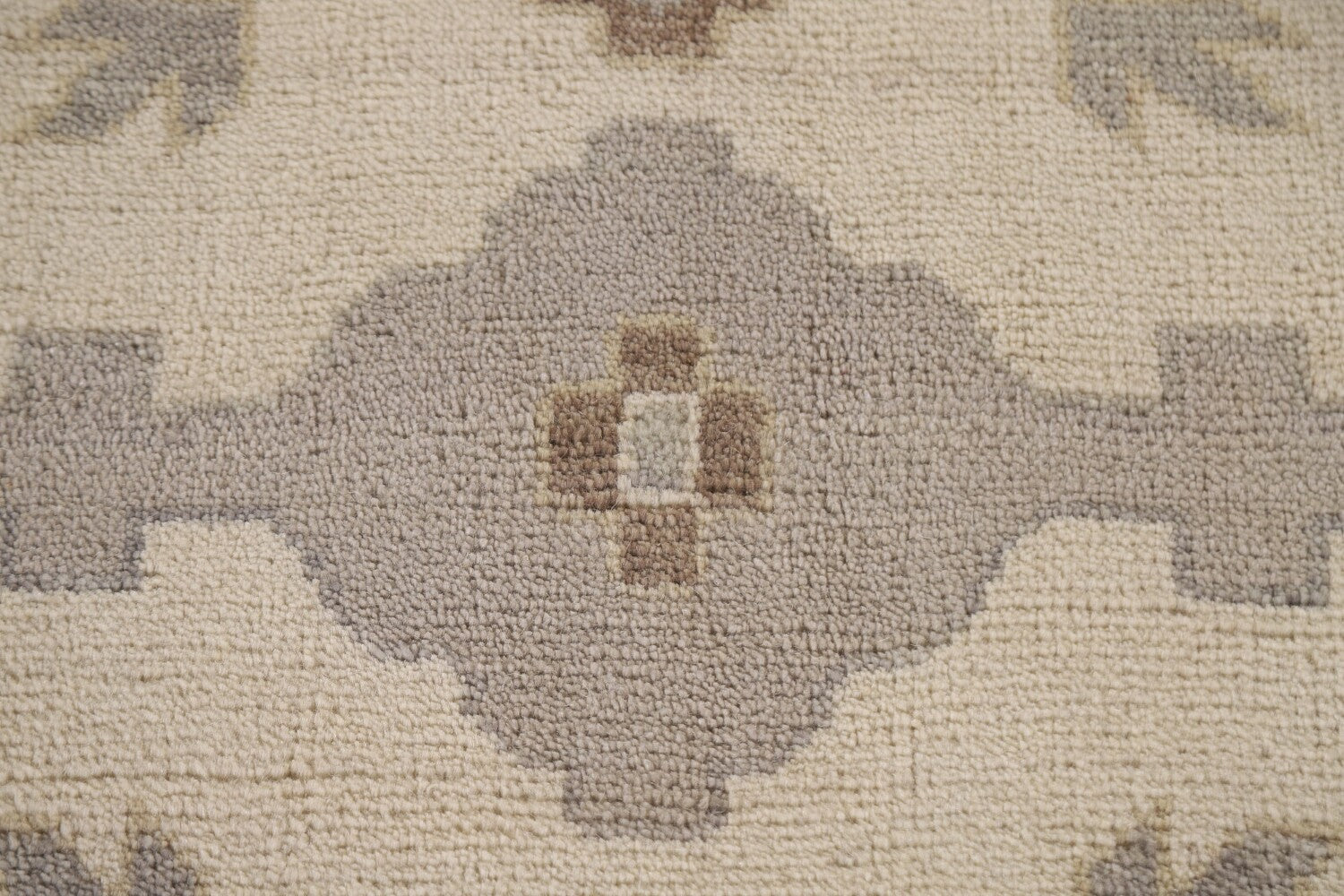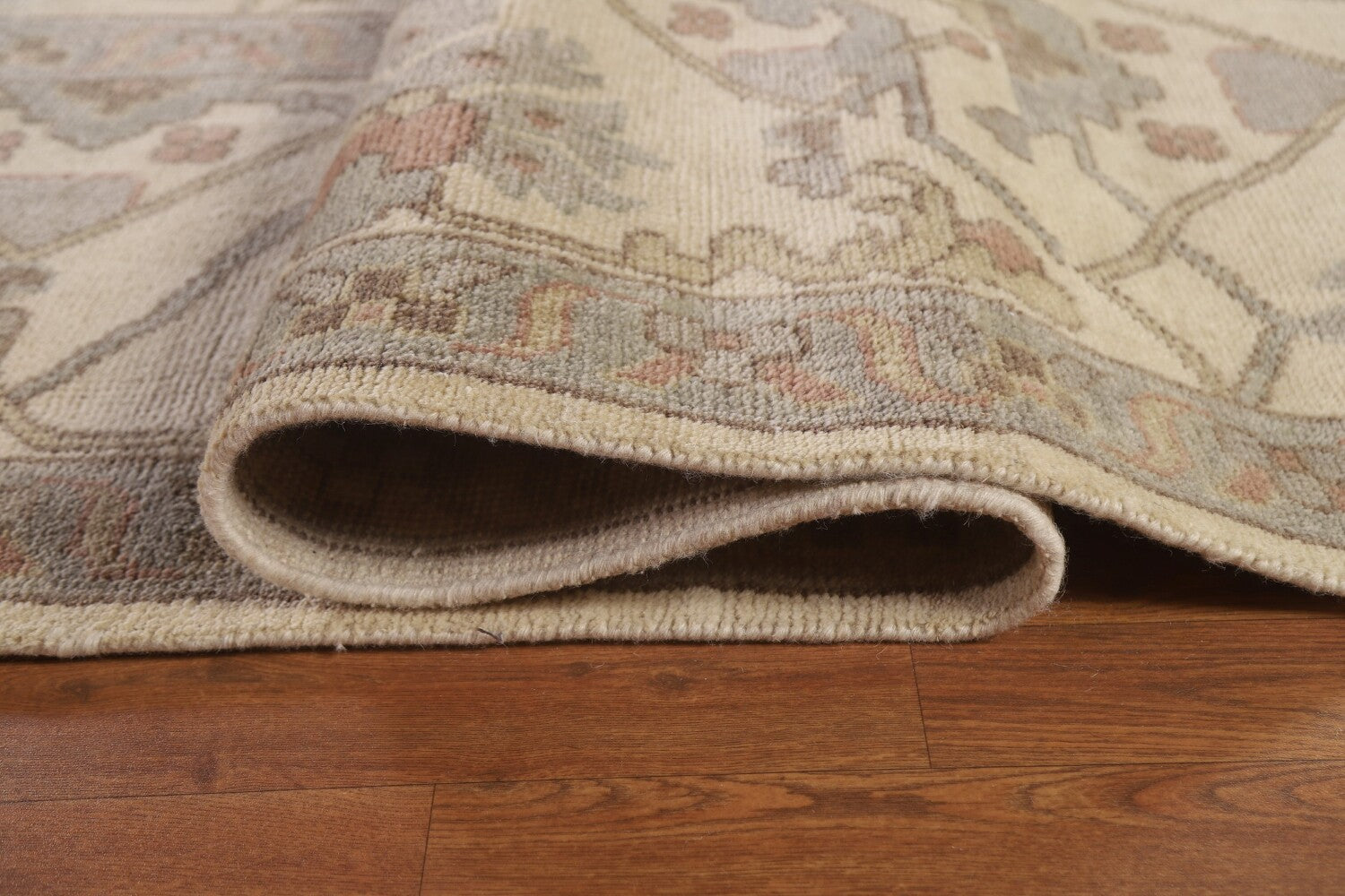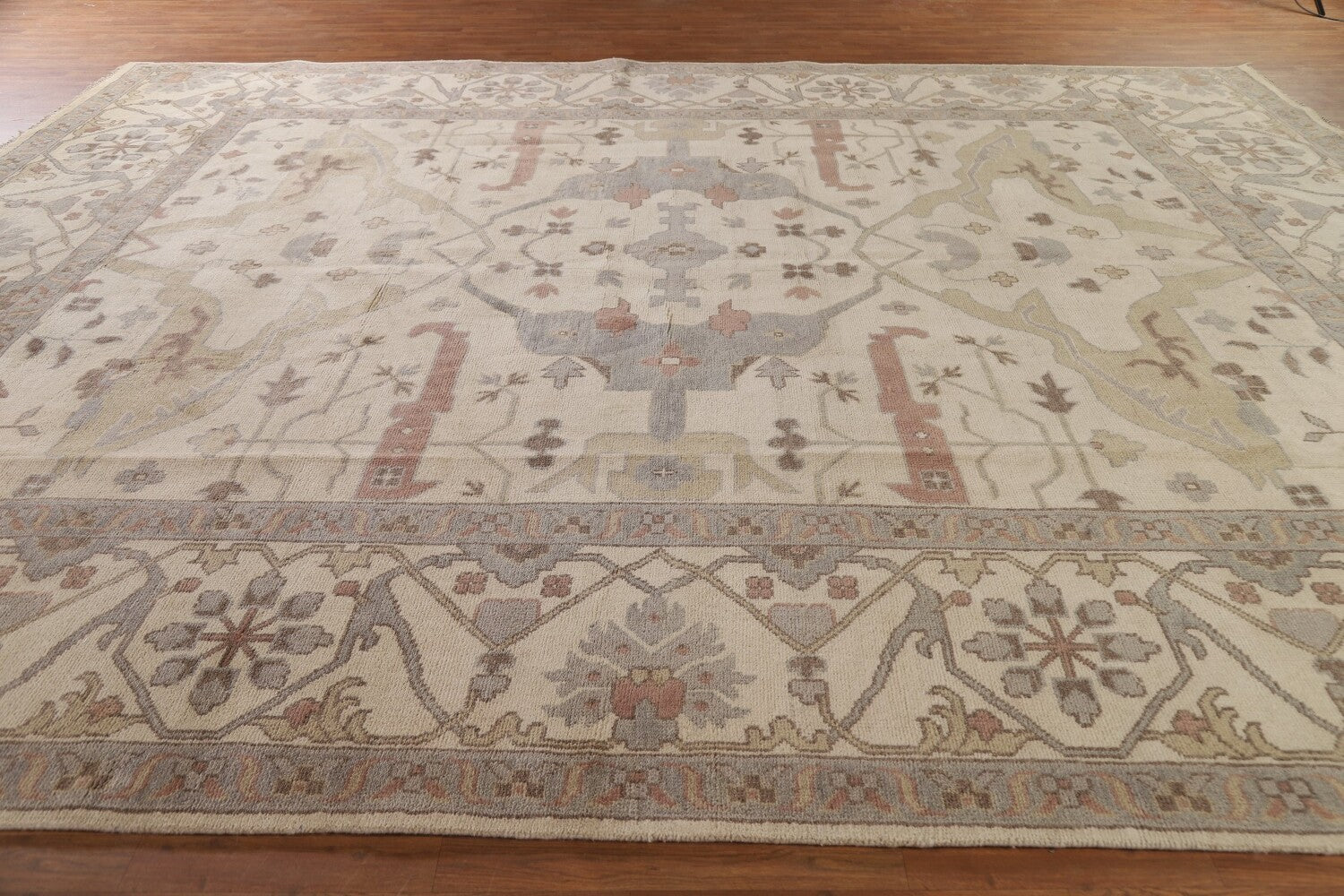 A Beautiful Genuine India Oushak rug is Hand Knotted by skillful weavers in India with 100% Wool Material. This rug is in condition. dimensions are 14' 11'' X 12' 0'' in foot and 455 X 366 in centimeter. the primary color is Beige & Ivories.