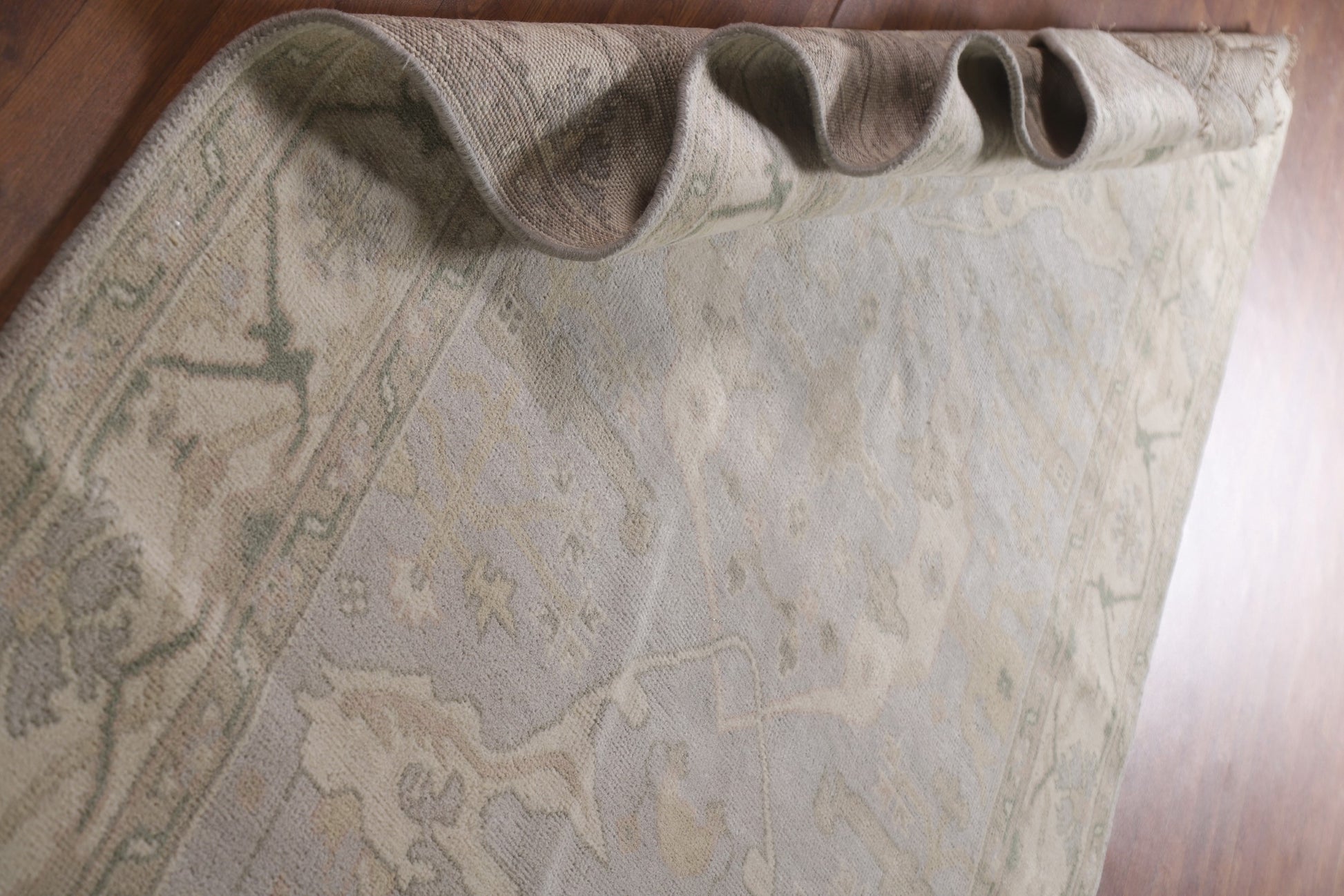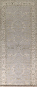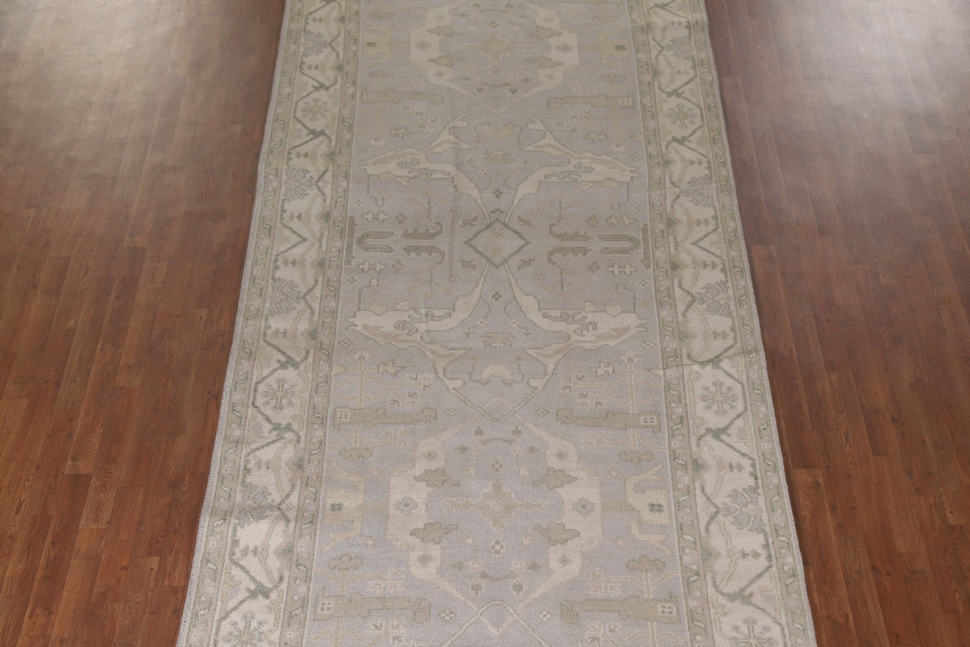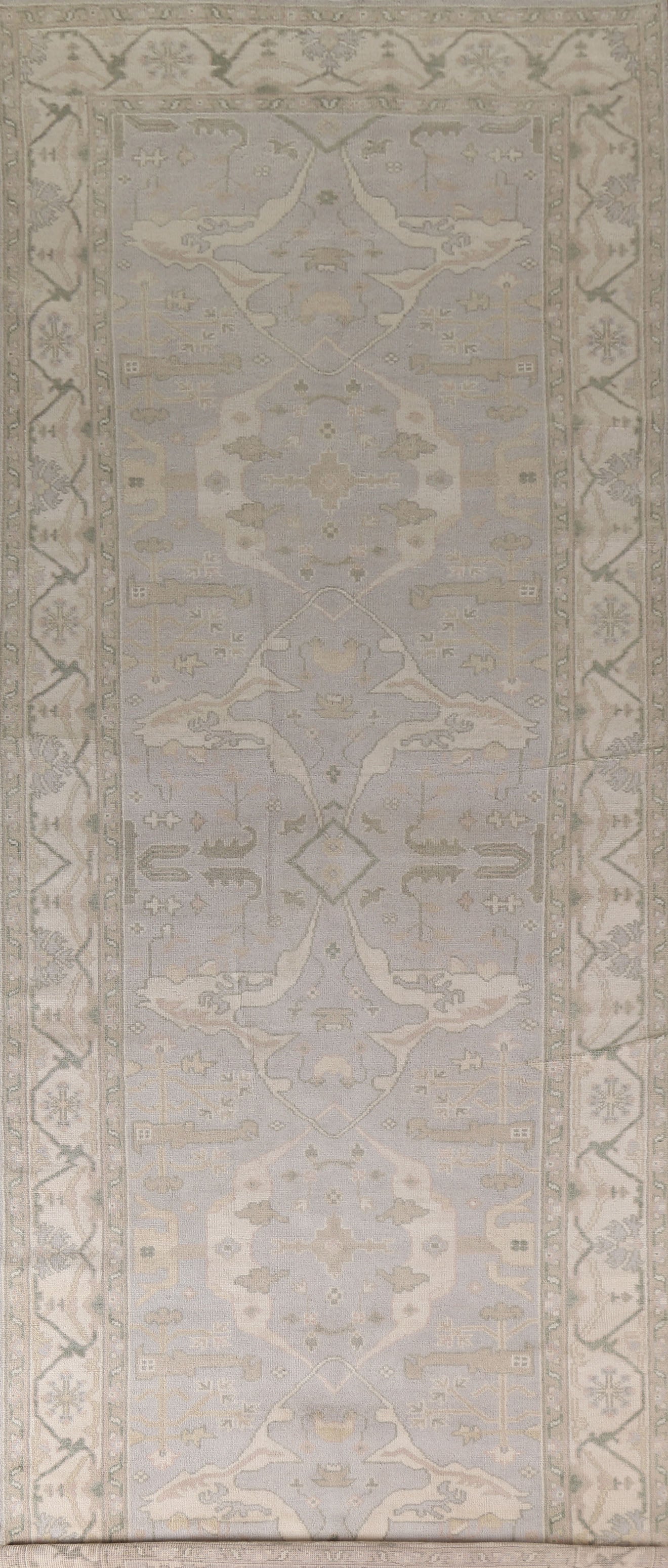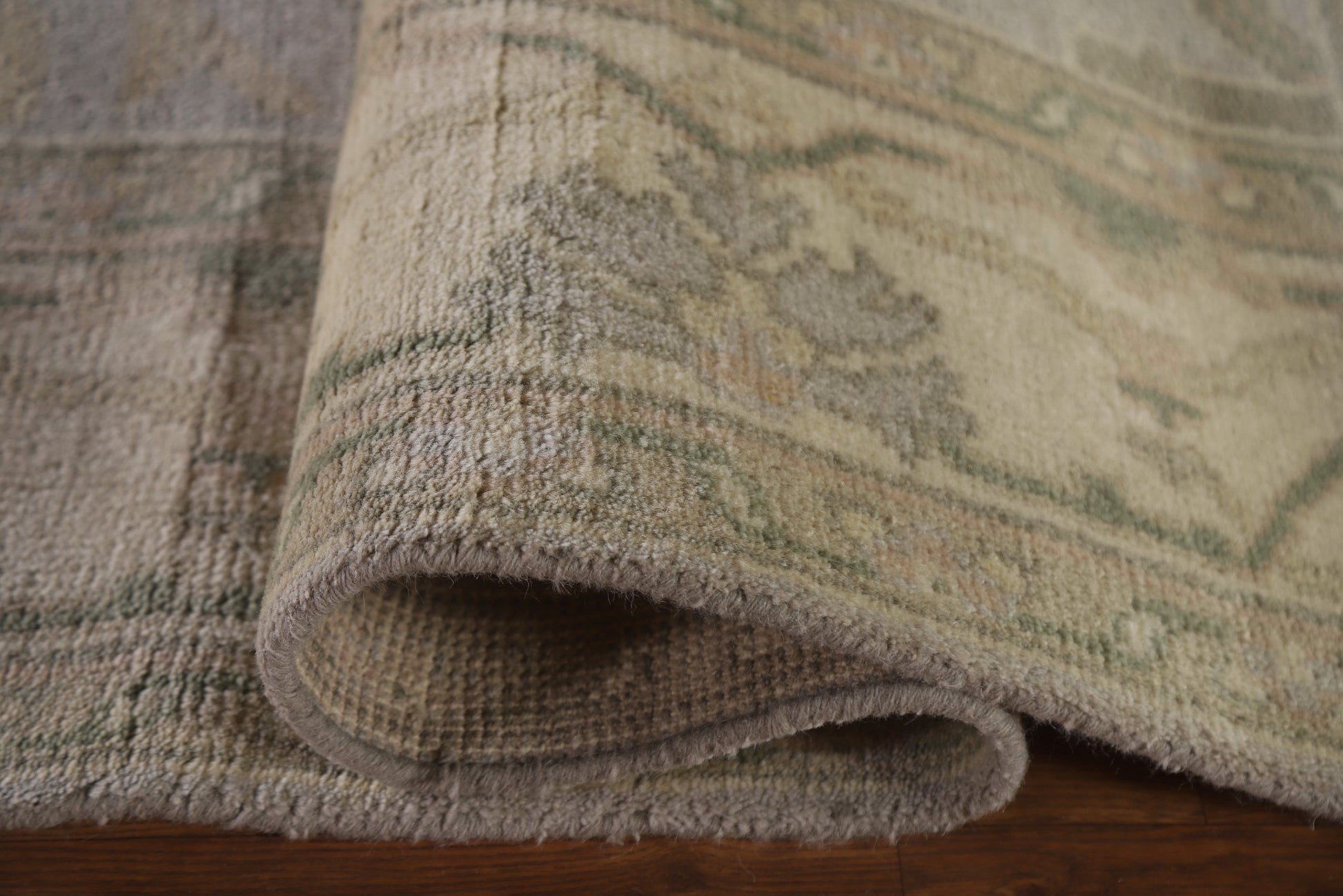 A Beautiful Genuine India Oushak rug is Hand Knotted by skillful weavers in India with 100% Wool Material. This rug is in New, First Quality condition. dimensions are 17' 5'' X 5' 9'' in foot and 531 X 175 in centimeter. the primary color is Greys & Charcoal.