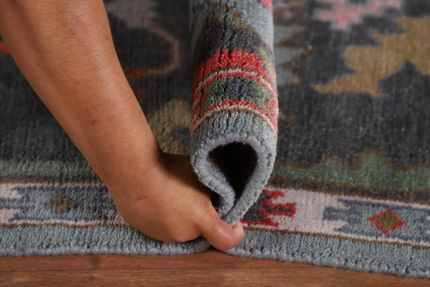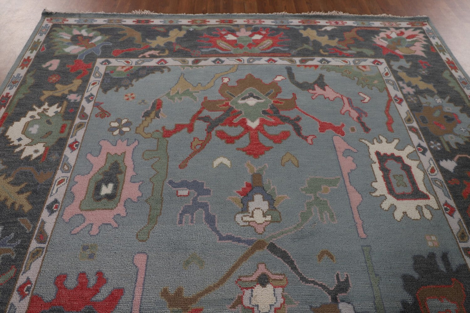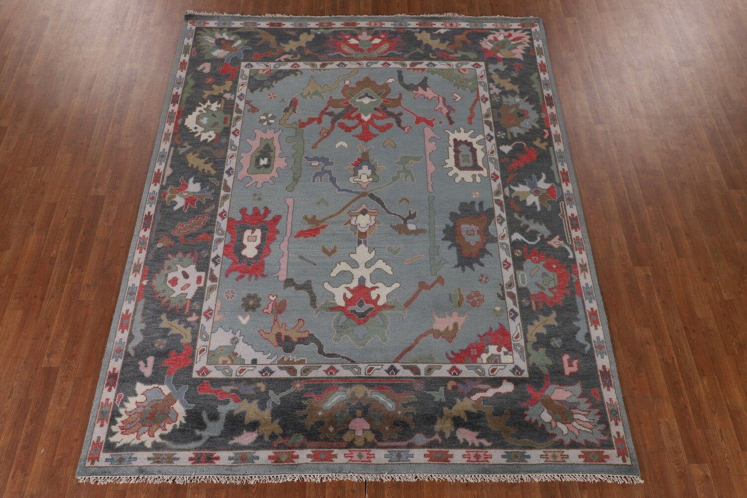 A Beautiful Genuine India Oushak rug is Hand Knotted by skillful weavers in India with 100% Wool Material. This rug is in New, First Quality condition. dimensions are 9' 11'' X 7' 11'' in foot and 302 X 241 in centimeter. the primary color is Greys & Charcoal.