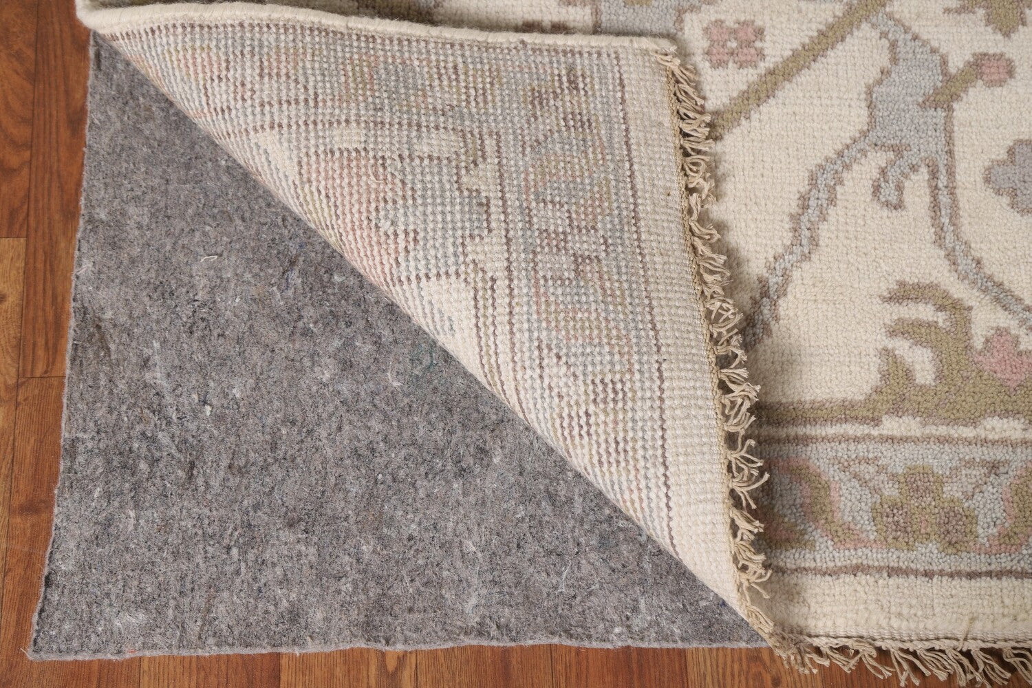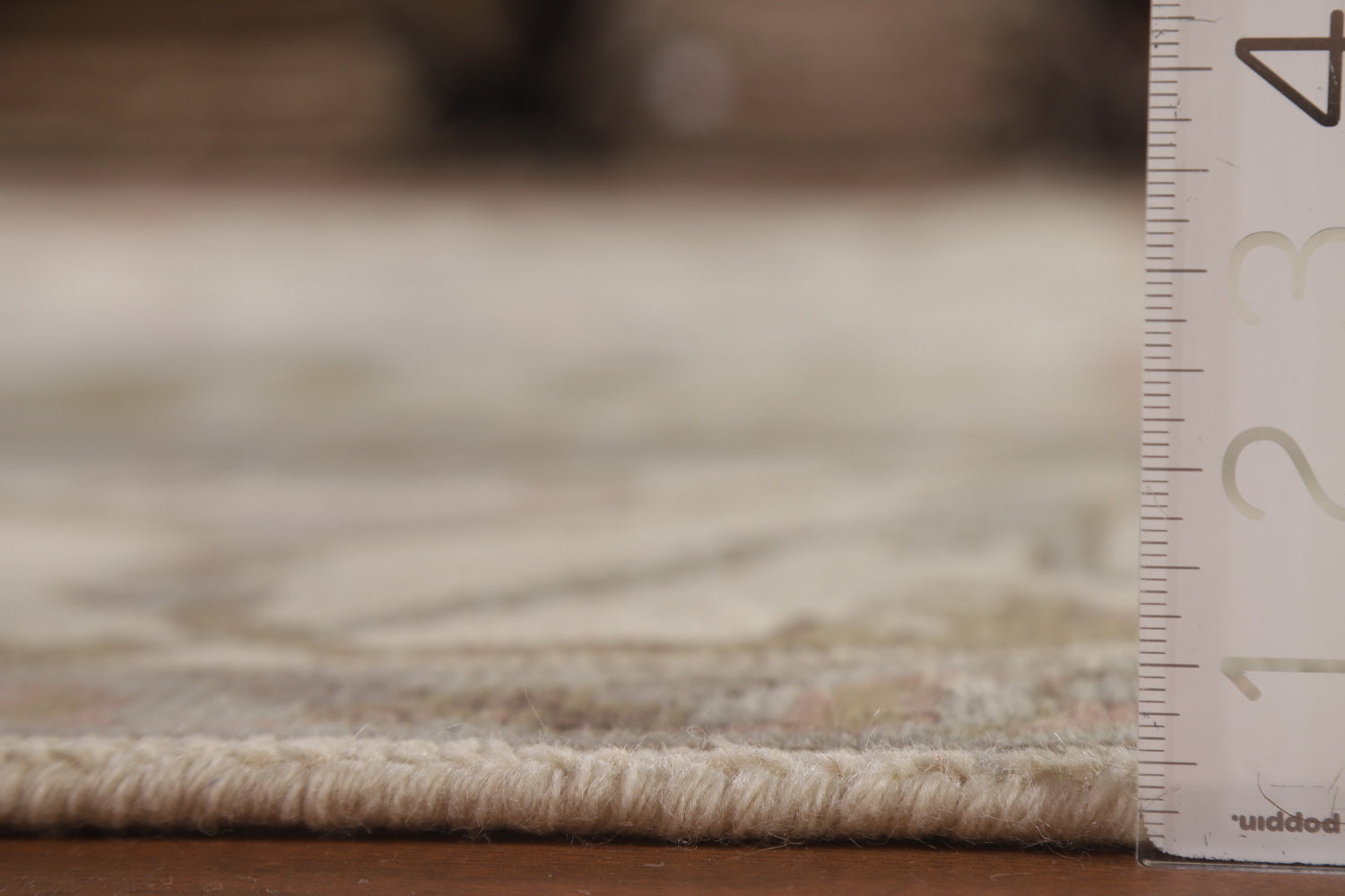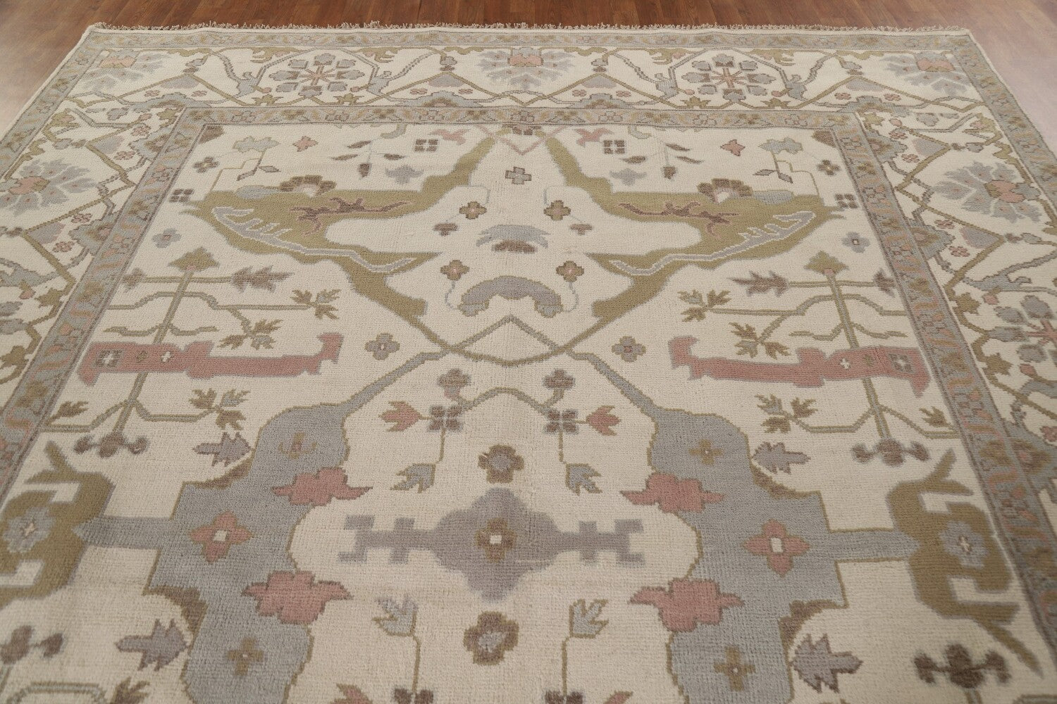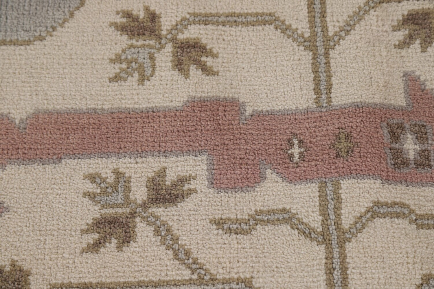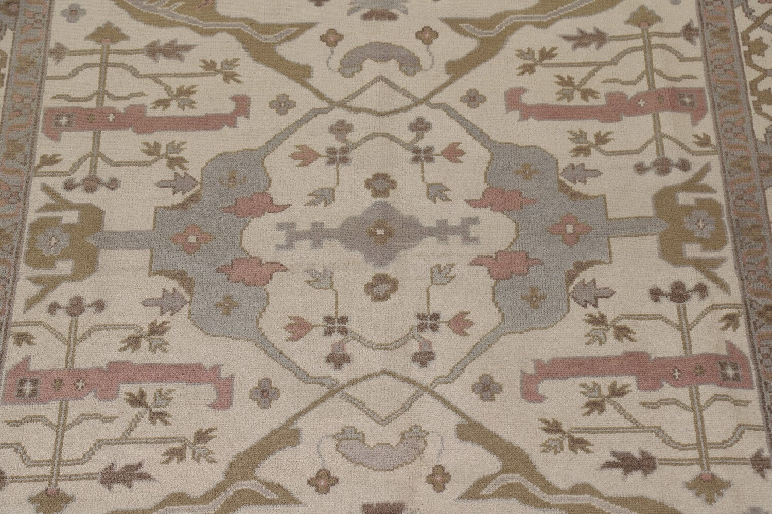 A Beautiful Genuine India Oushak rug is Hand Knotted by skillful weavers in India with 100% Wool Material. This rug is in New, First Quality condition. dimensions are 12' 2'' X 9' 1'' in foot and 371 X 277 in centimeter. the primary color is Beige & Ivories.