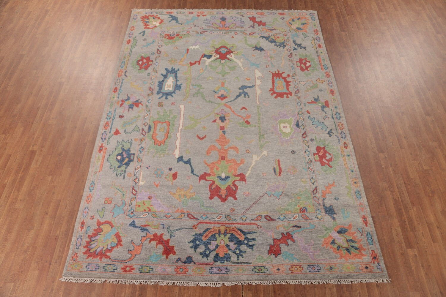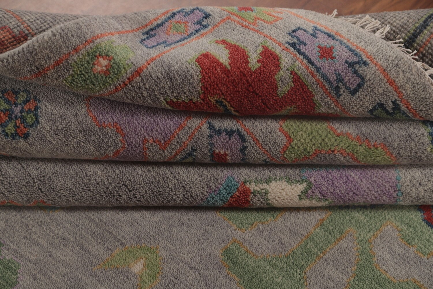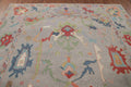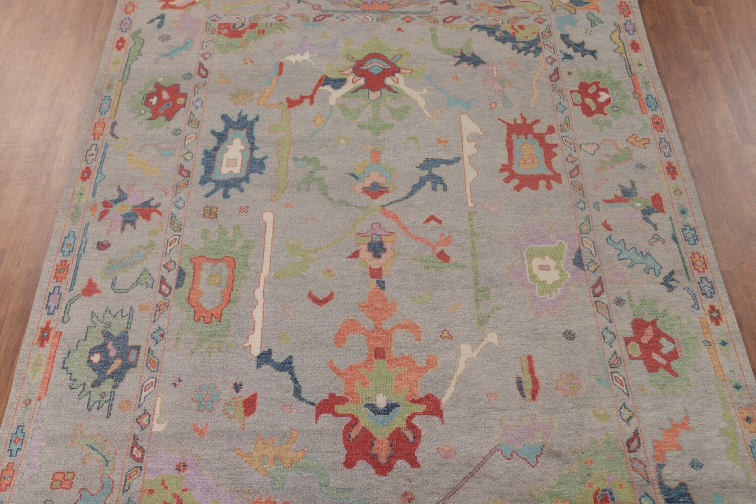 A Beautiful Genuine India Oushak rug is Hand Knotted by skillful weavers in India with 100% Wool Material. This rug is in New, First Quality condition. dimensions are 12' 3'' X 8' 9'' in foot and 373 X 267 in centimeter. the primary color is Greys & Charcoal.