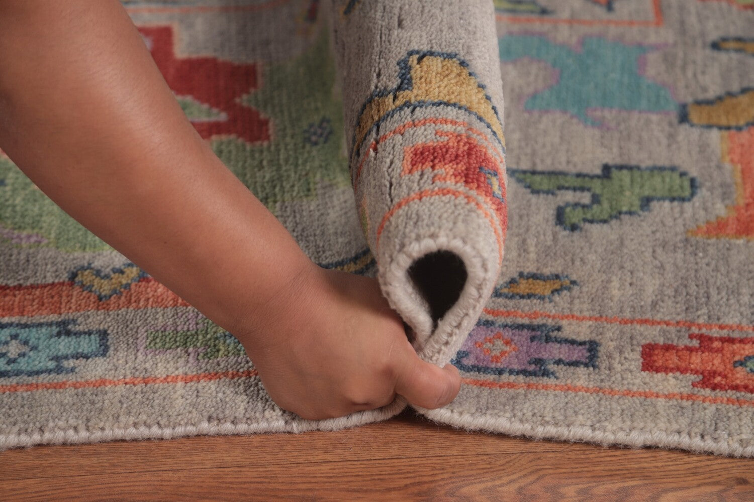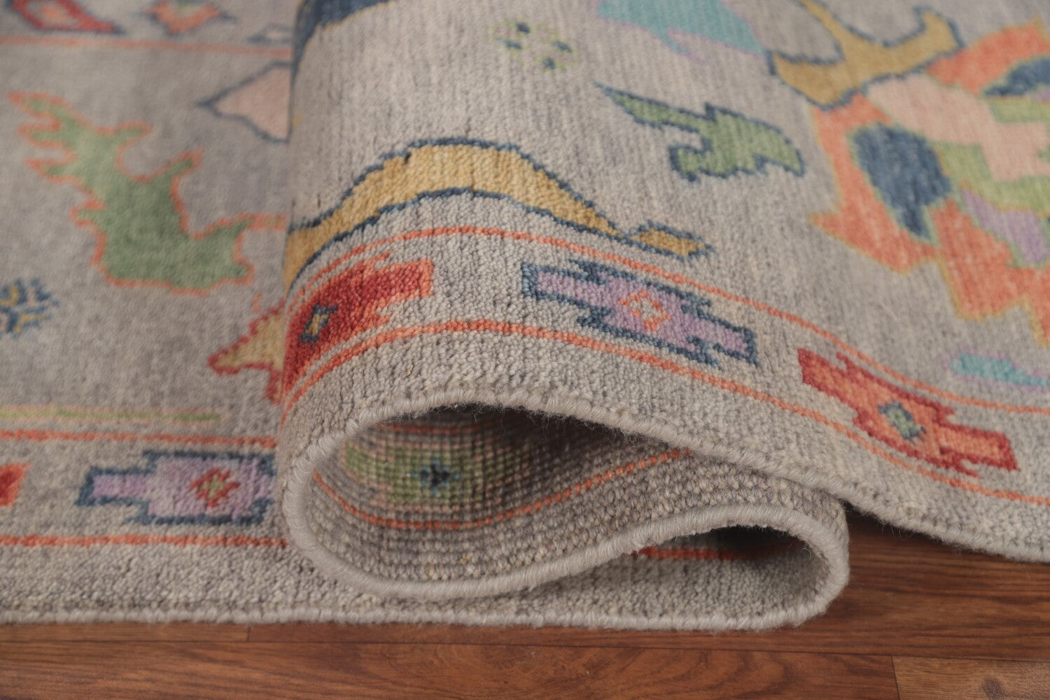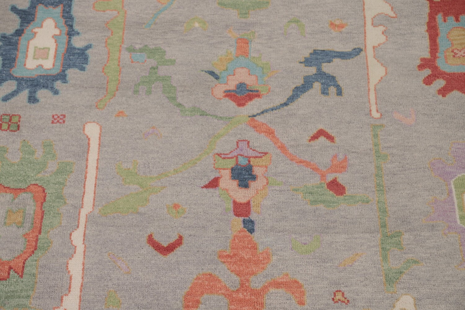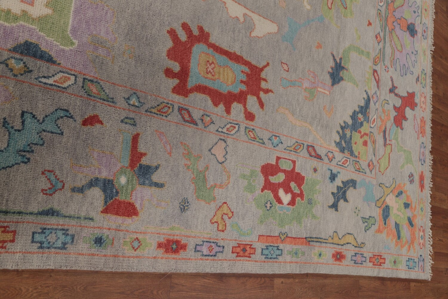 A Beautiful Genuine India Oushak rug is Hand Knotted by skillful weavers in India with 100% Wool Material. This rug is in New, First Quality condition. dimensions are 12' 3'' X 8' 9'' in foot and 373 X 267 in centimeter. the primary color is Greys & Charcoal.