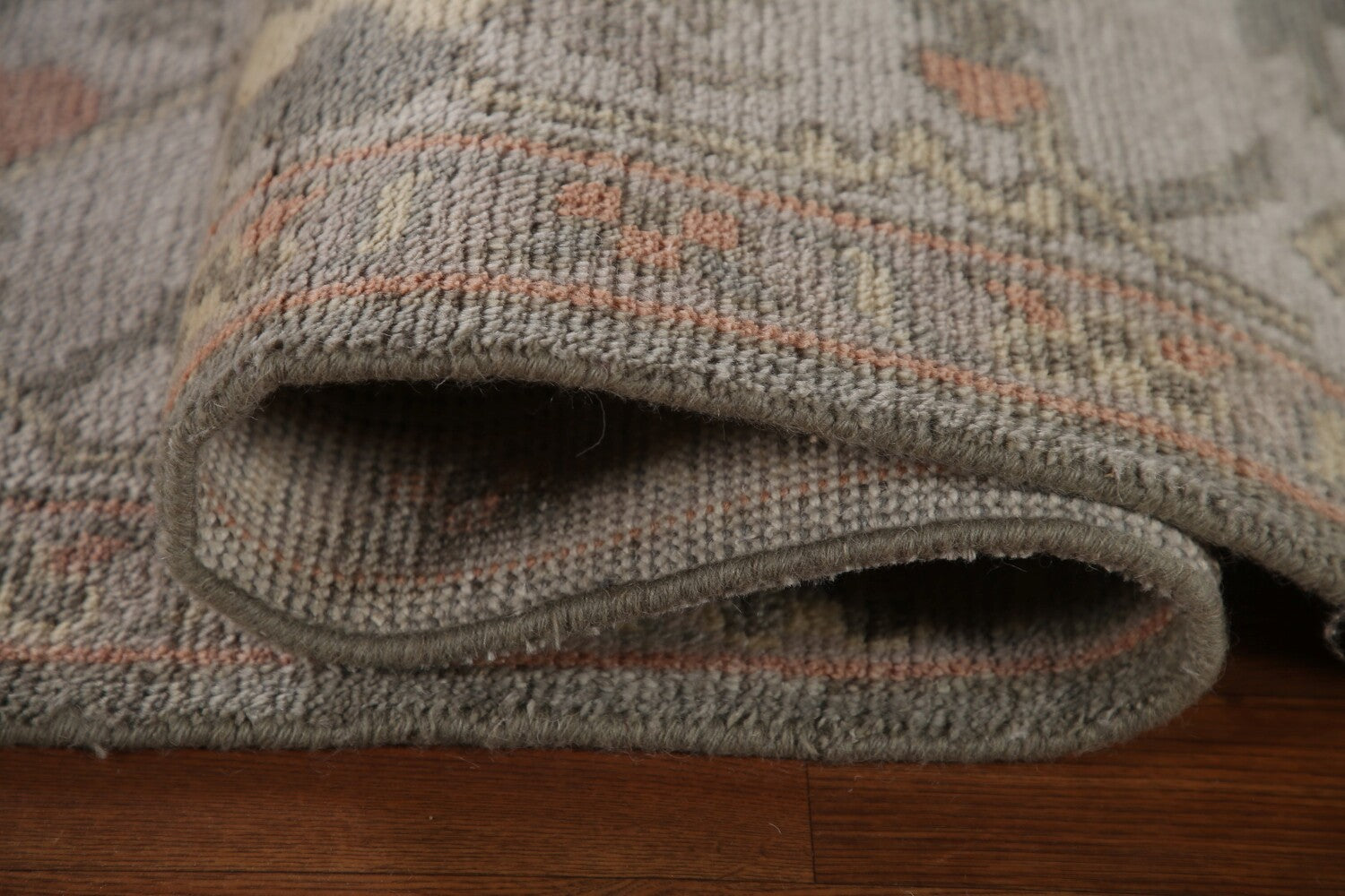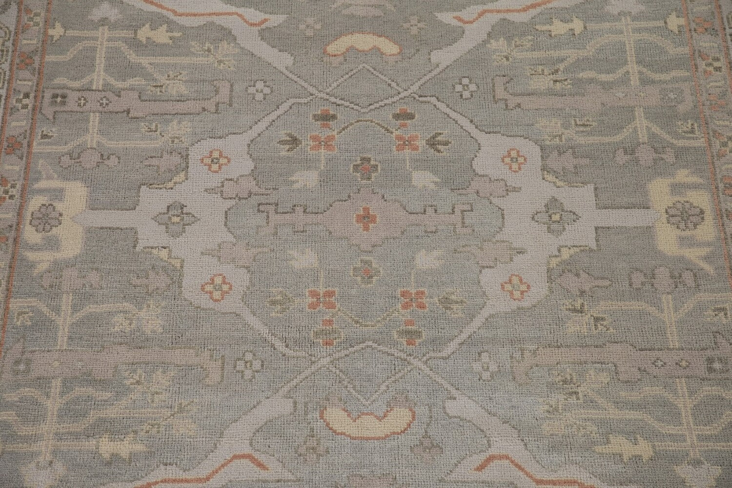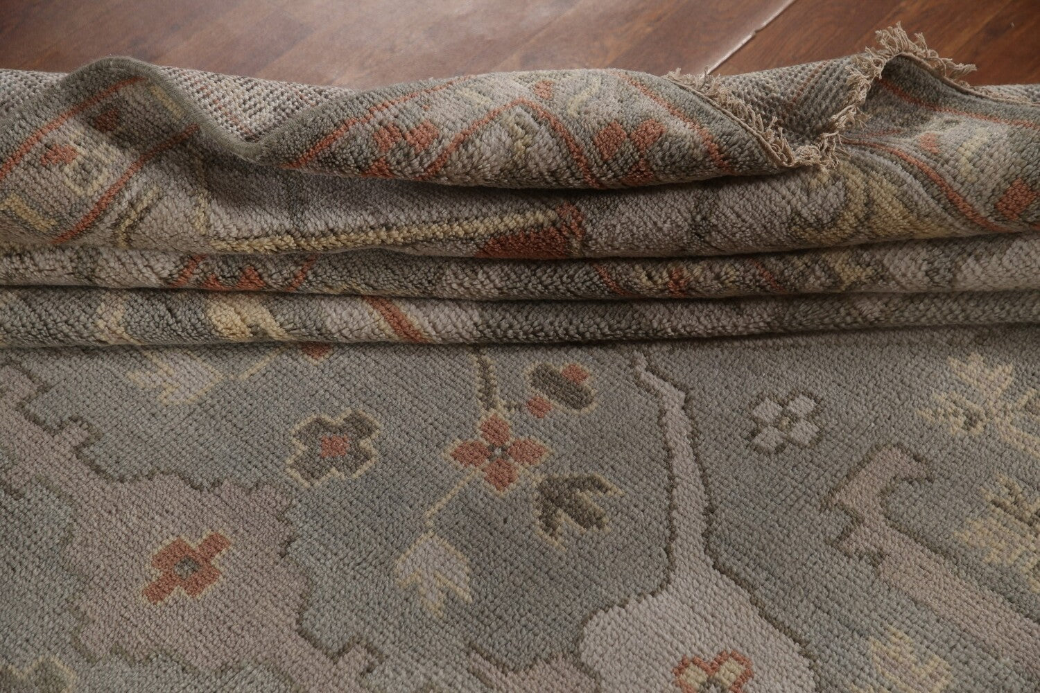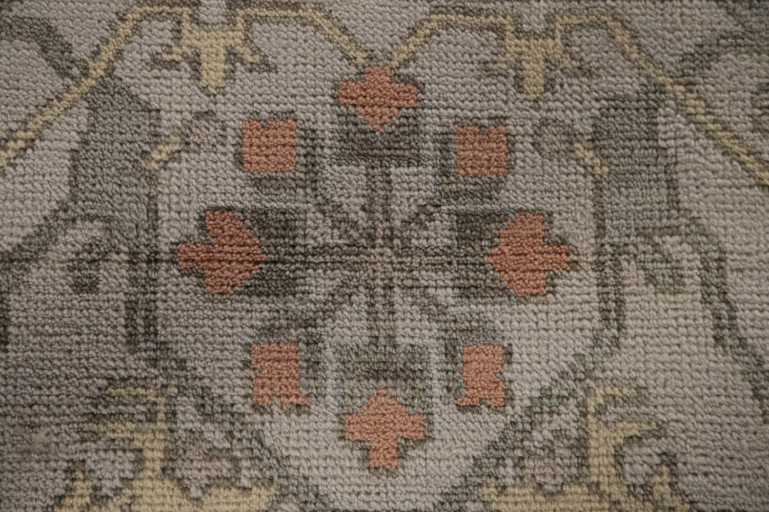 A Beautiful Genuine India Oushak rug is Hand Knotted by skillful weavers in India with 100% Wool Material. This rug is in New, First Quality condition. dimensions are 11' 10'' X 9' 1'' in foot and 361 X 277 in centimeter. the primary color is Greys & Charcoal.