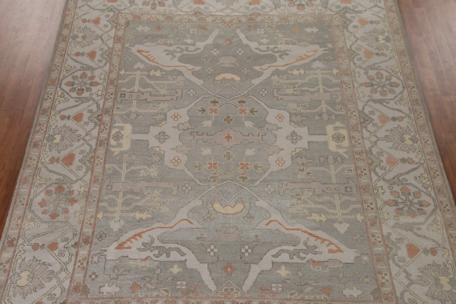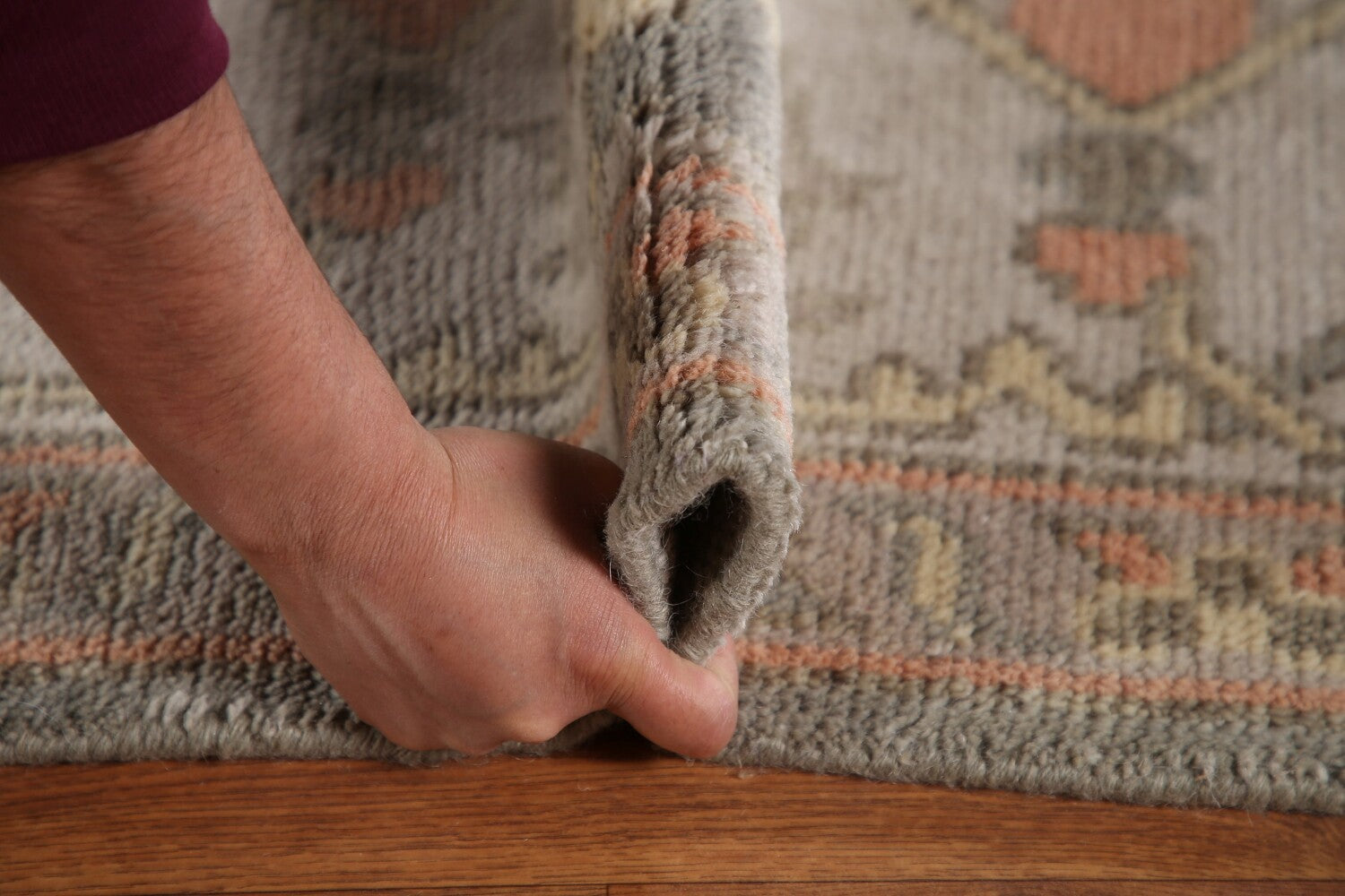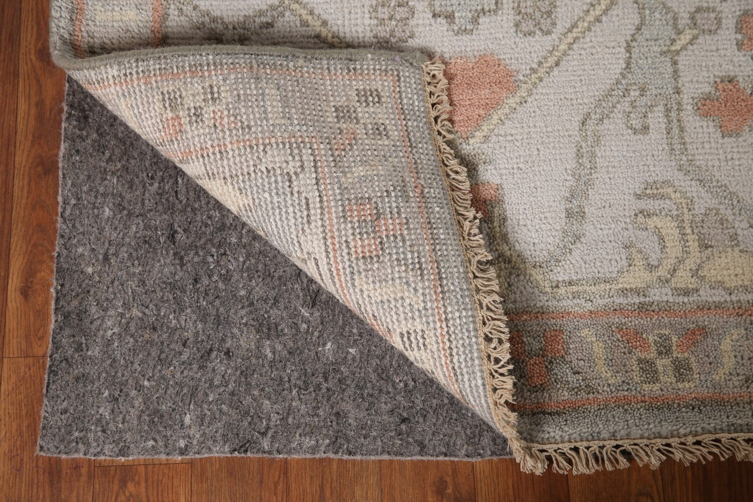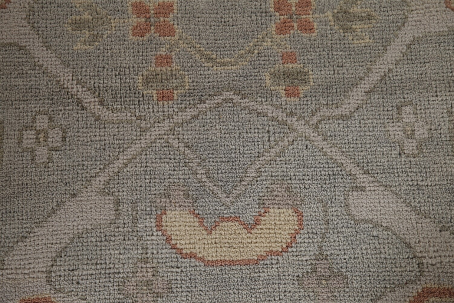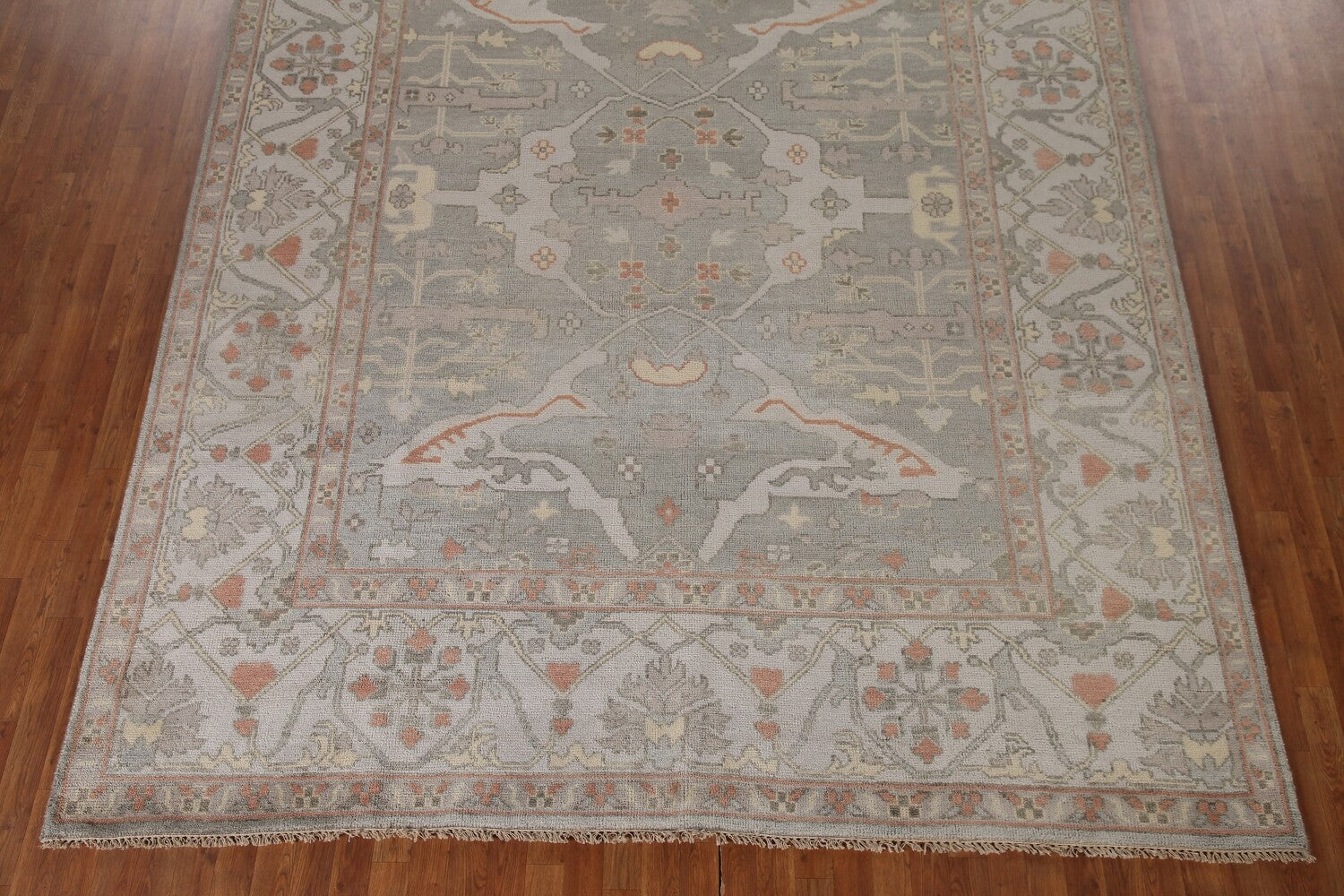 A Beautiful Genuine India Oushak rug is Hand Knotted by skillful weavers in India with 100% Wool Material. This rug is in New, First Quality condition. dimensions are 11' 10'' X 9' 1'' in foot and 361 X 277 in centimeter. the primary color is Greys & Charcoal.