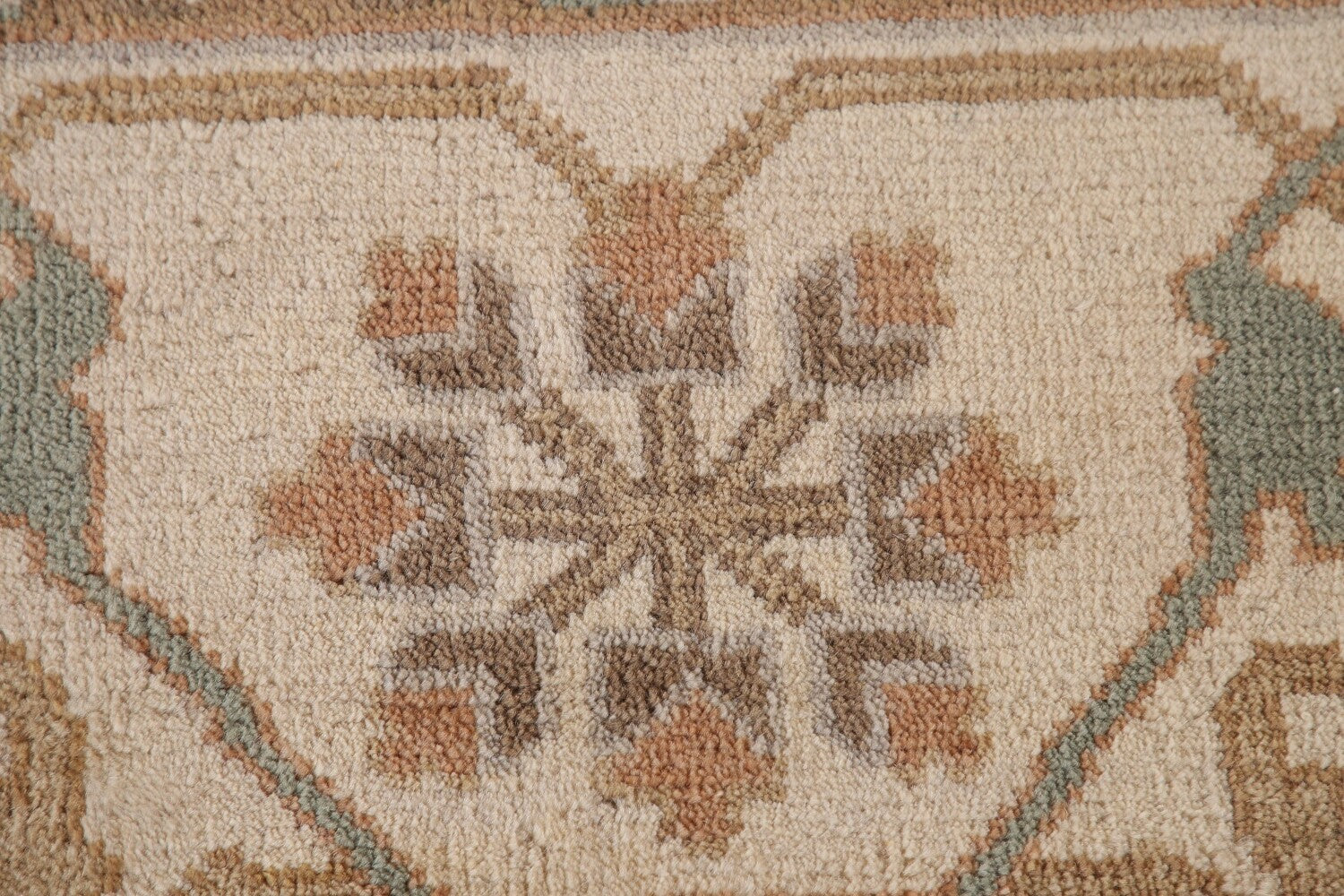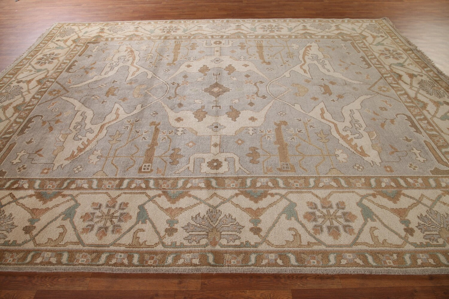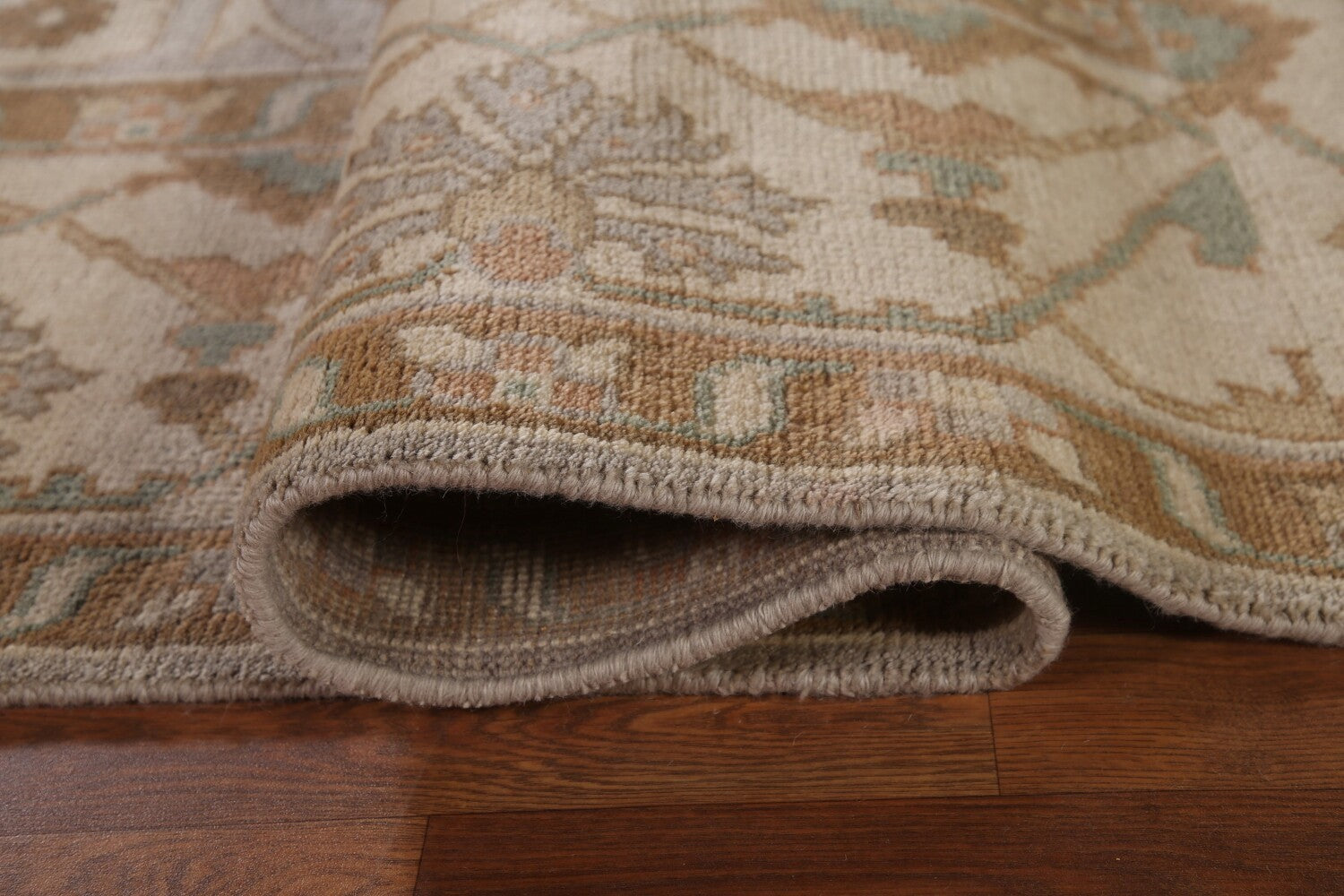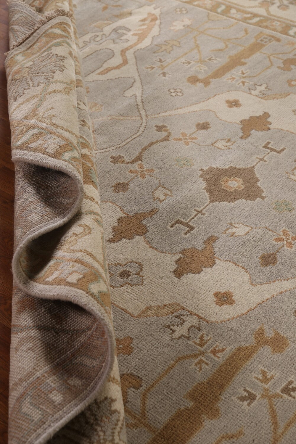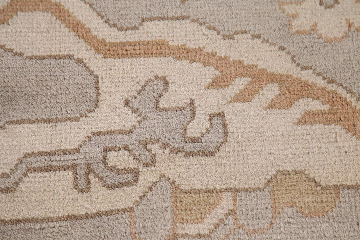 A Beautiful Genuine India Oushak rug is Hand Knotted by skillful weavers in India with 100% Wool Material. This rug is in New, First Quality condition. dimensions are 11' 8'' X 9' 2'' in foot and 356 X 279 in centimeter. the primary color is Beige & Ivories.
