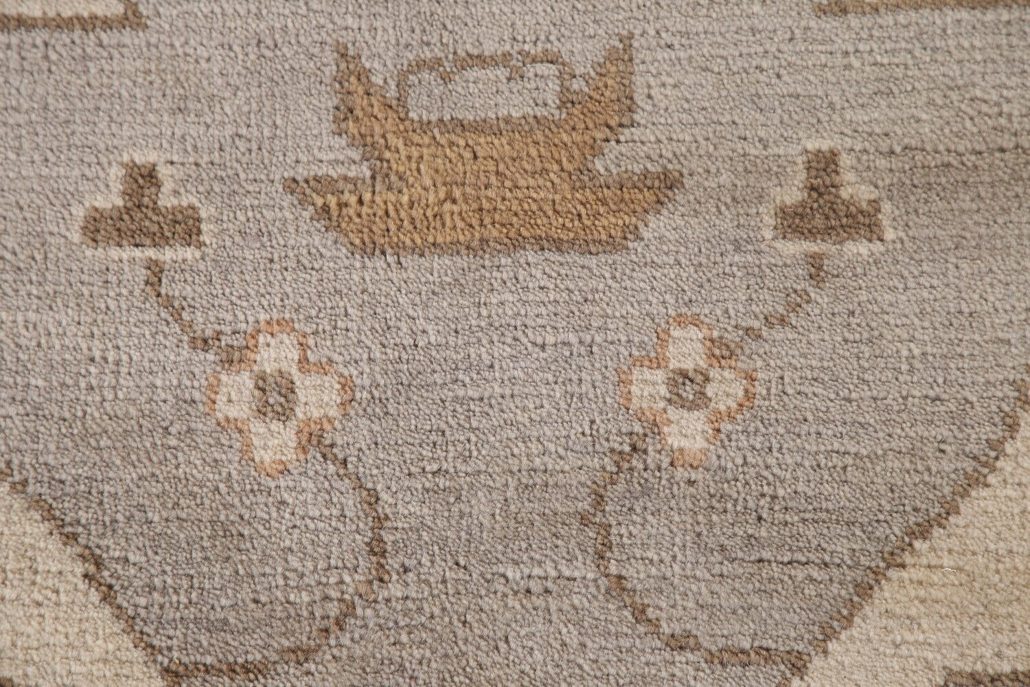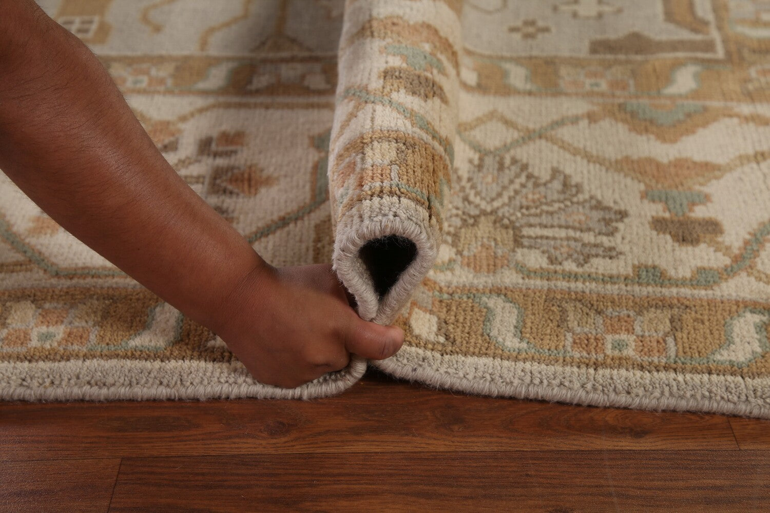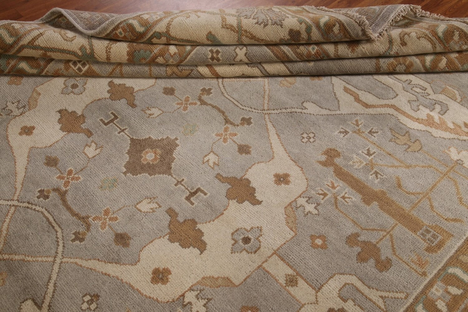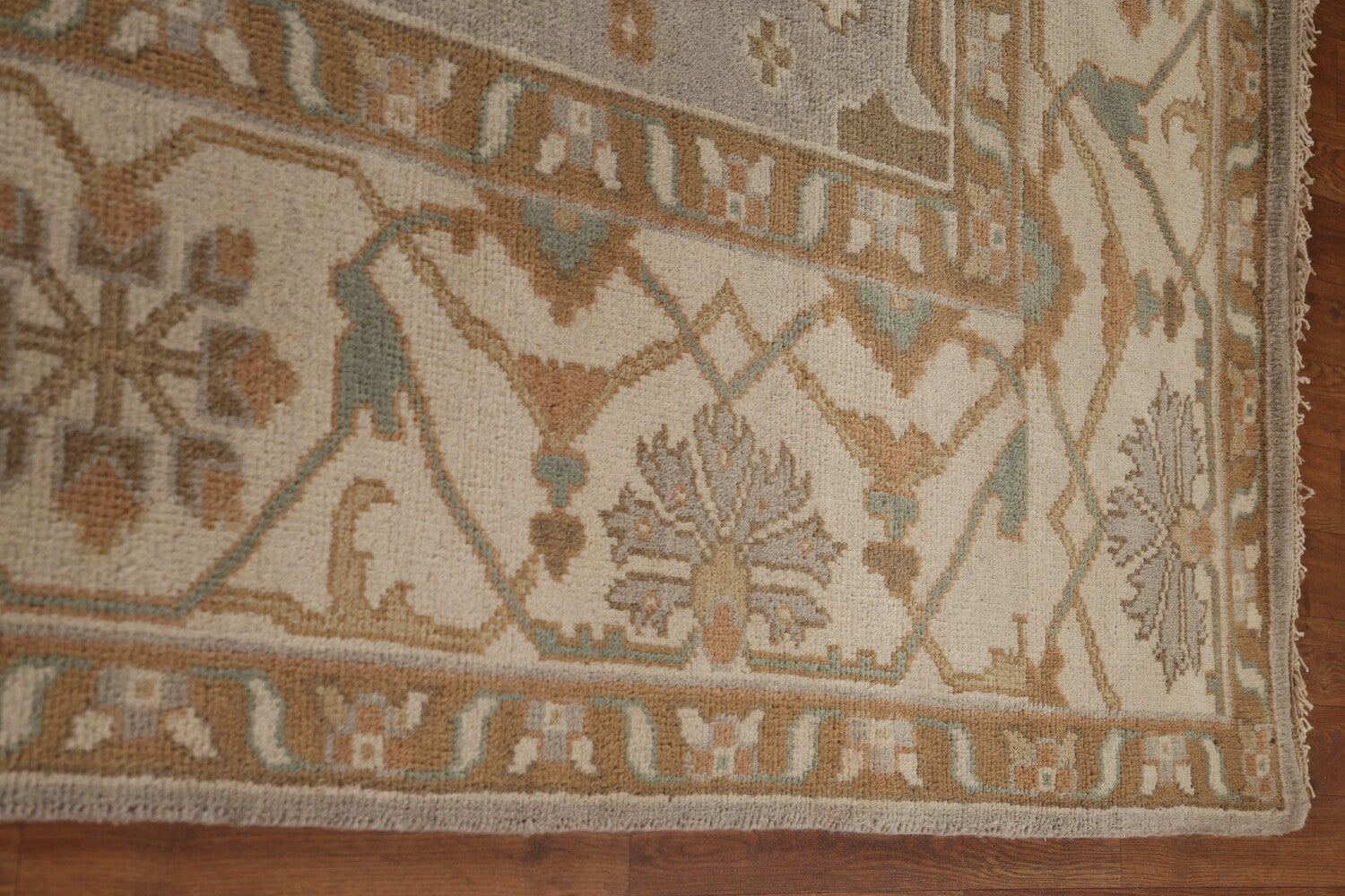A Beautiful Genuine India Oushak rug is Hand Knotted by skillful weavers in India with 100% Wool Material. This rug is in New, First Quality condition. dimensions are 11' 8'' X 9' 2'' in foot and 356 X 279 in centimeter. the primary color is Beige & Ivories.