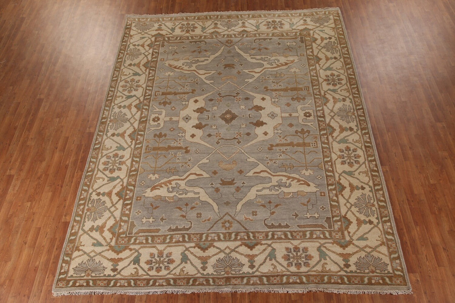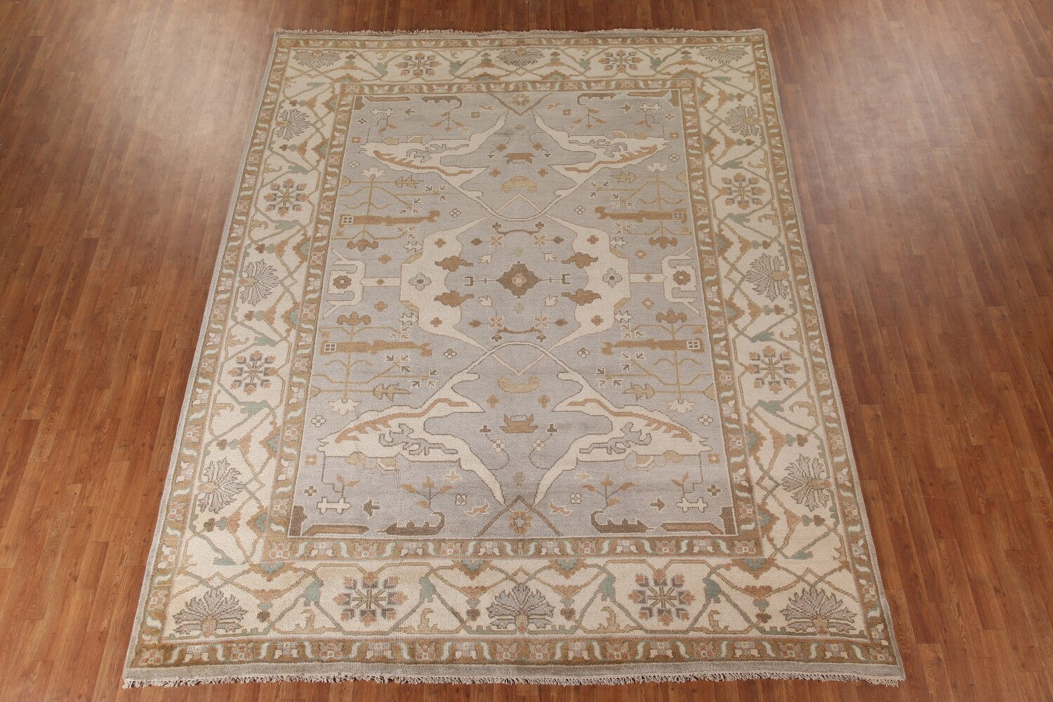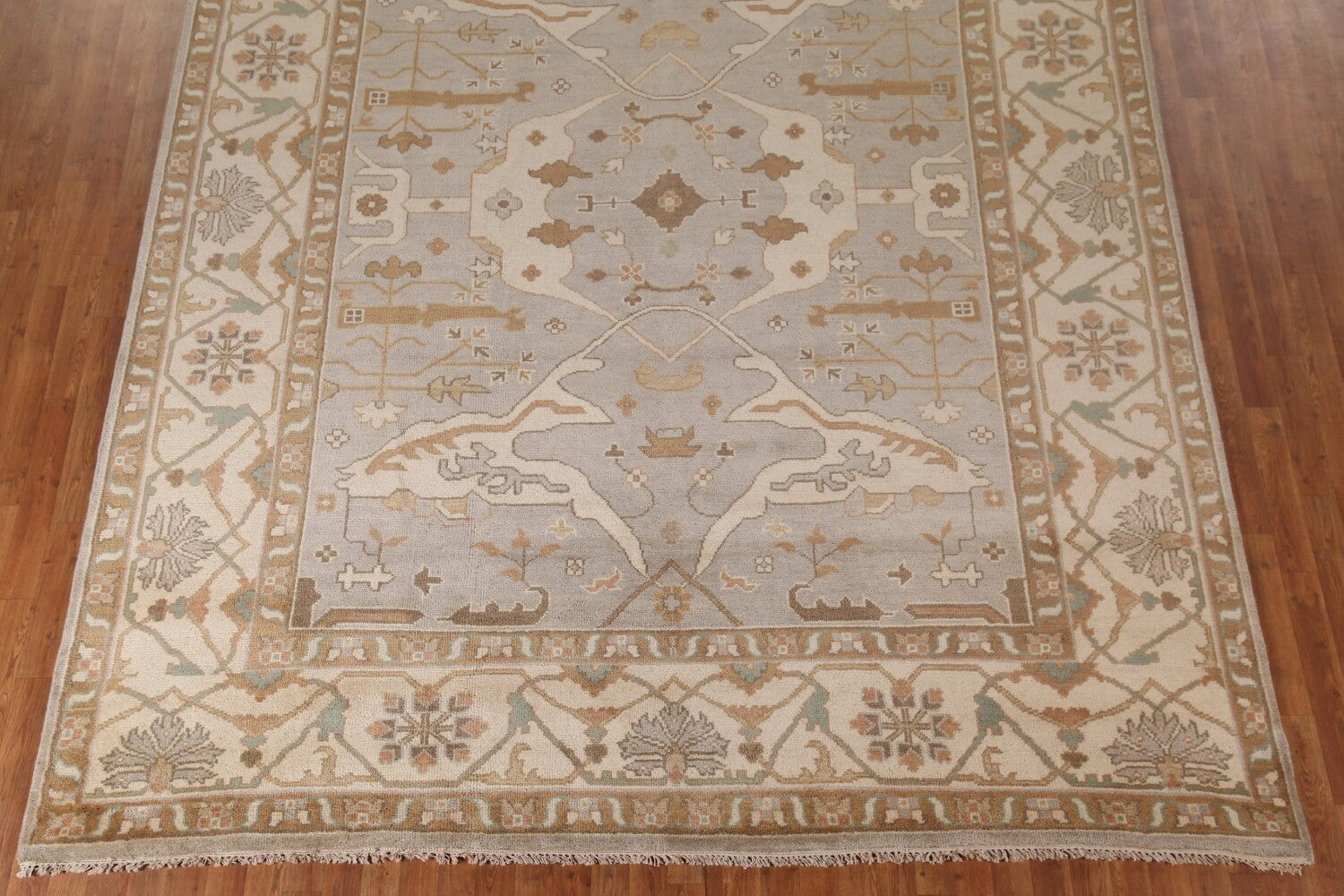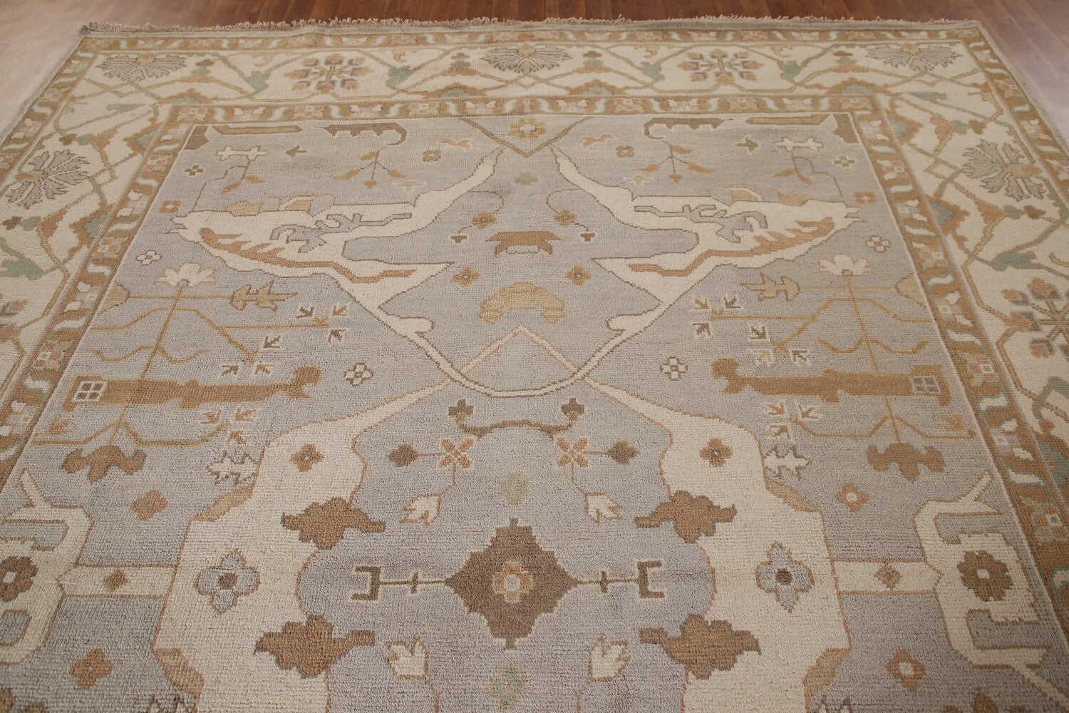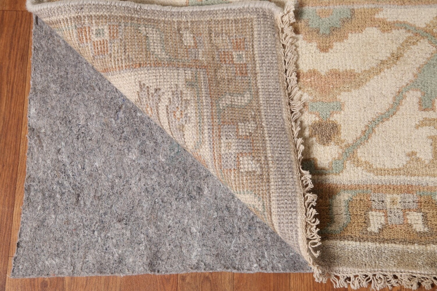 A Beautiful Genuine India Oushak rug is Hand Knotted by skillful weavers in India with 100% Wool Material. This rug is in New, First Quality condition. dimensions are 11' 8'' X 9' 2'' in foot and 356 X 279 in centimeter. the primary color is Beige & Ivories.