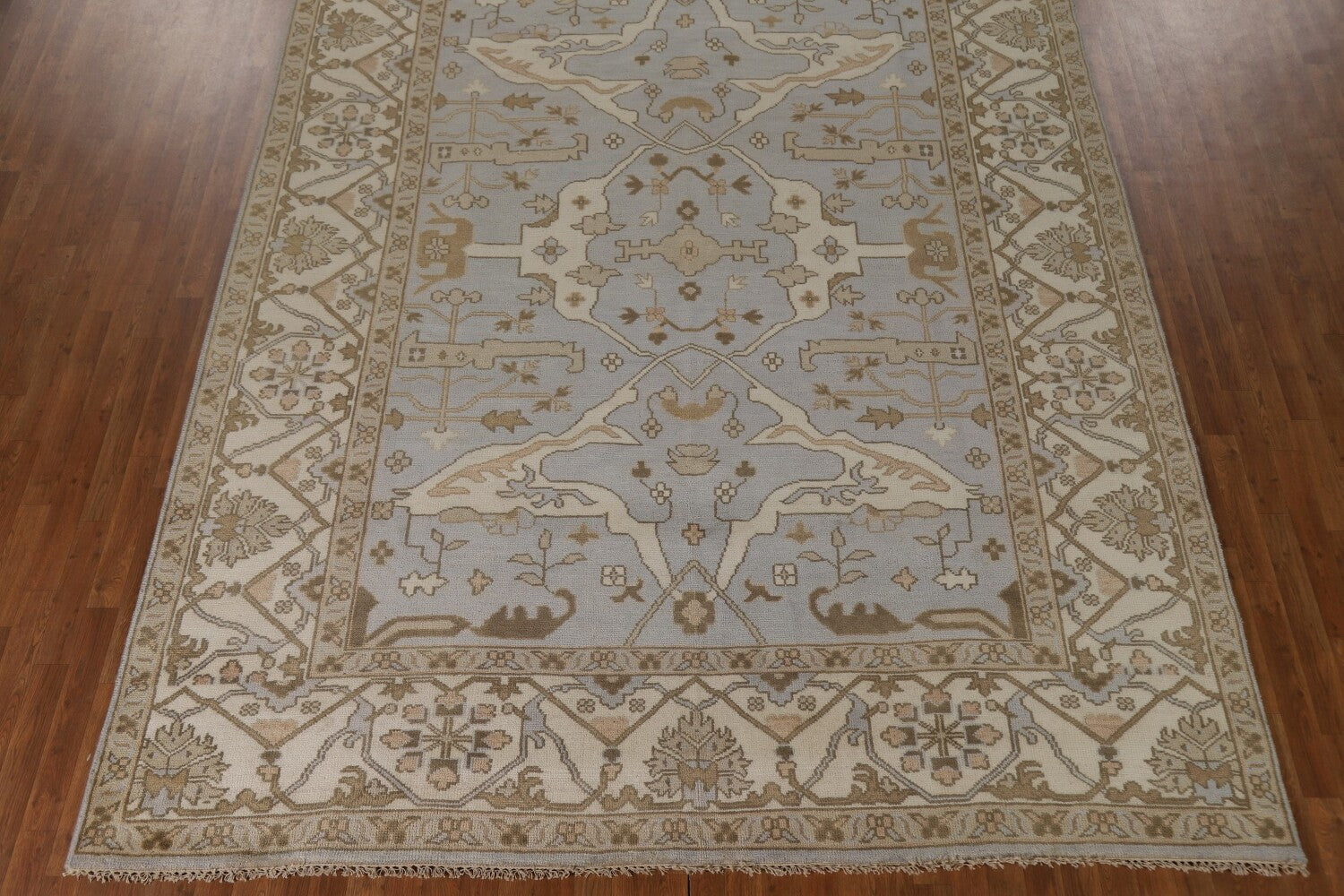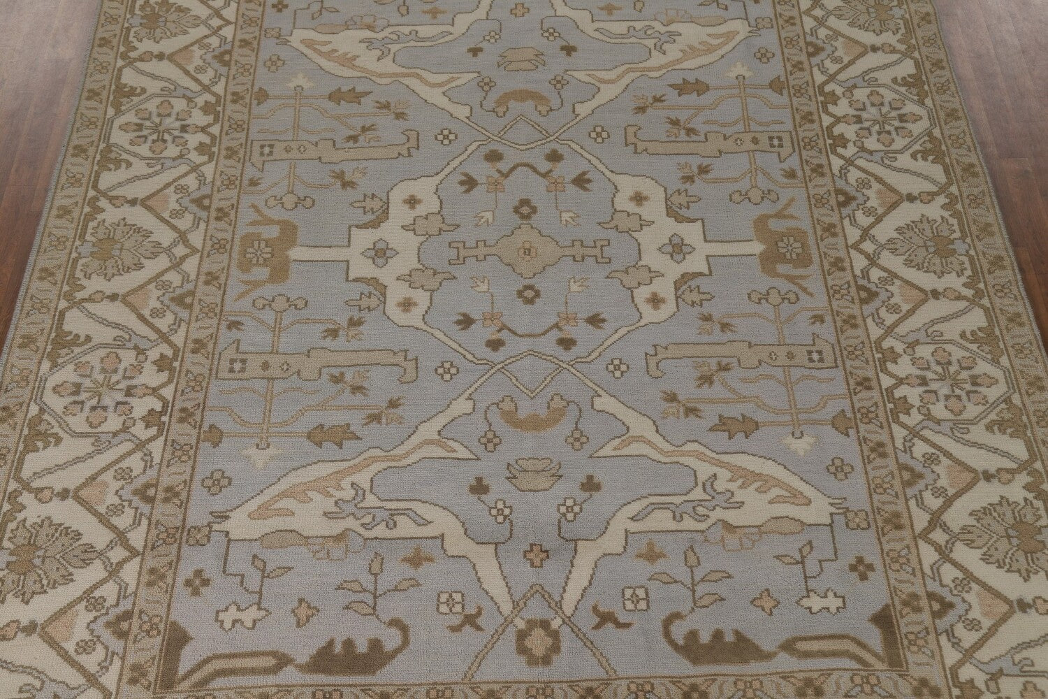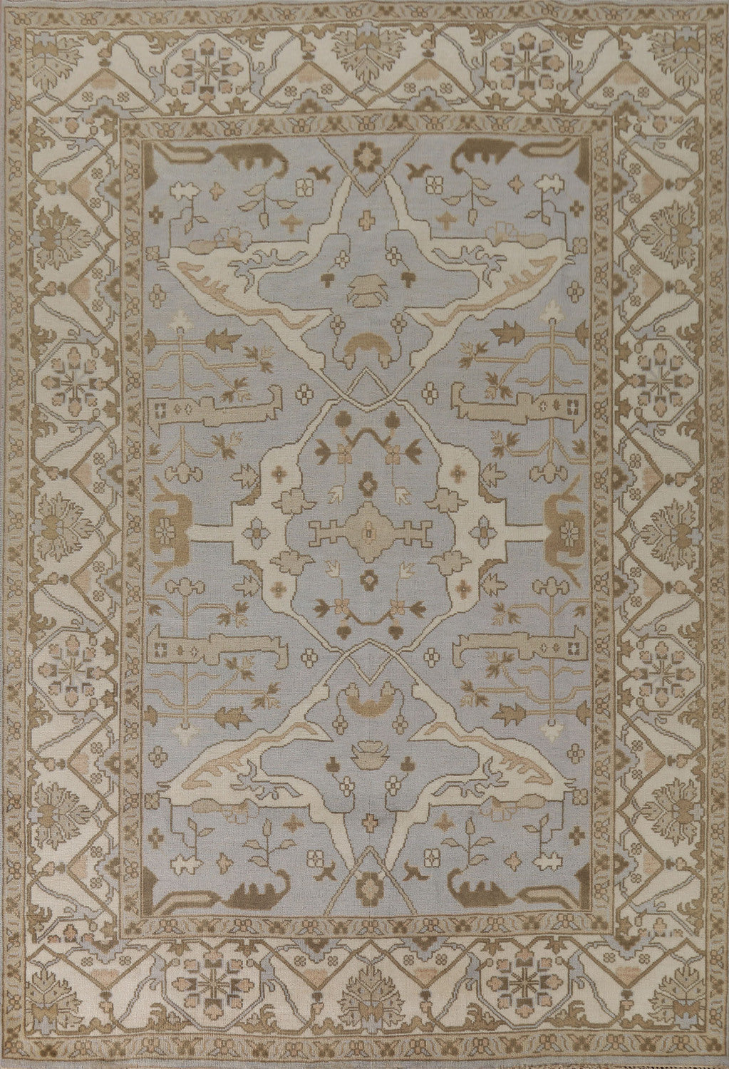 A Beautiful Genuine India Oushak rug is Hand Knotted by skillful weavers in India with 100% Wool Material. This rug is in condition. dimensions are 11' 10'' X 9' 0'' in foot and 361 X 274 in centimeter. the primary color is Greys & Charcoal.