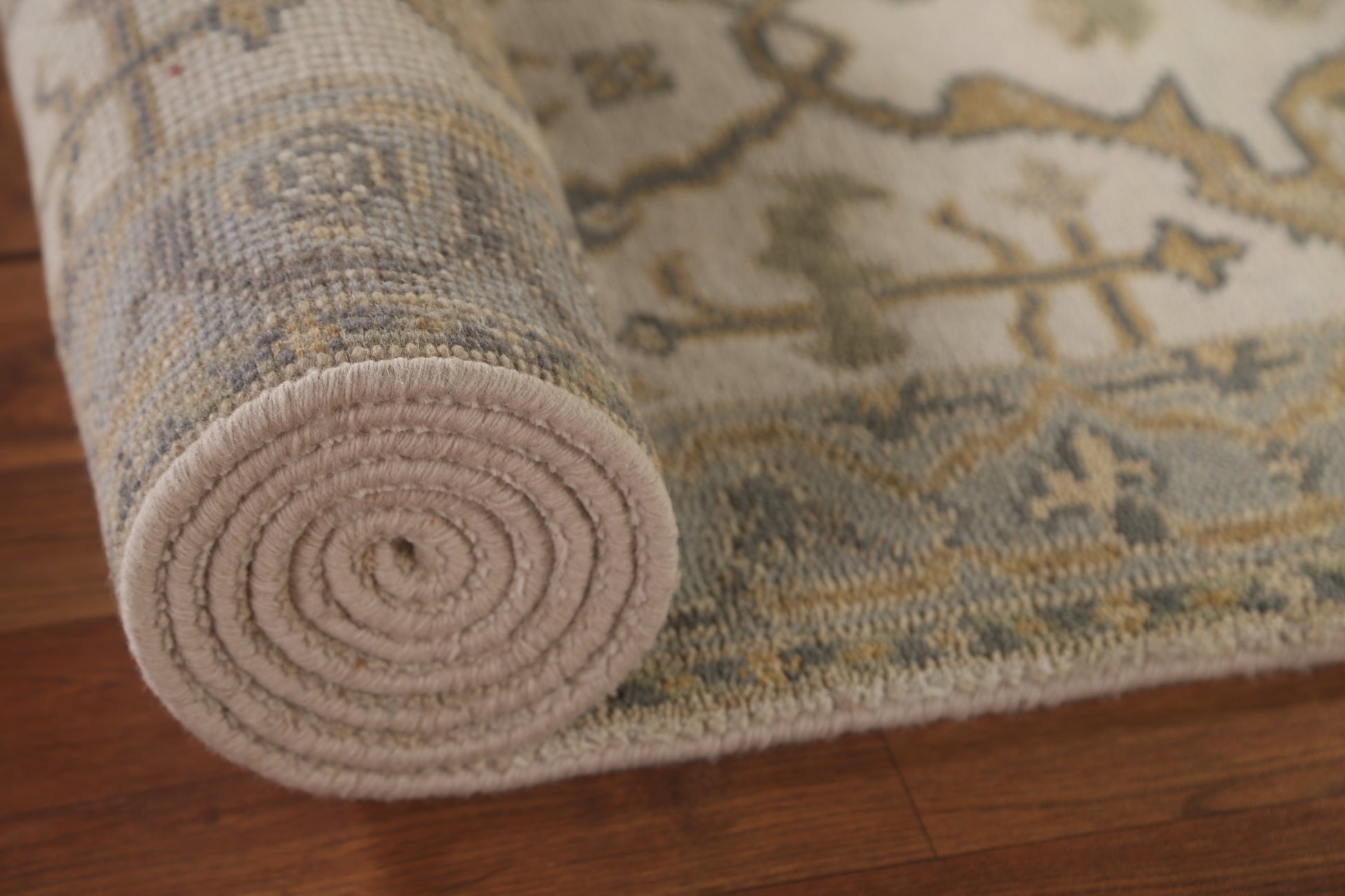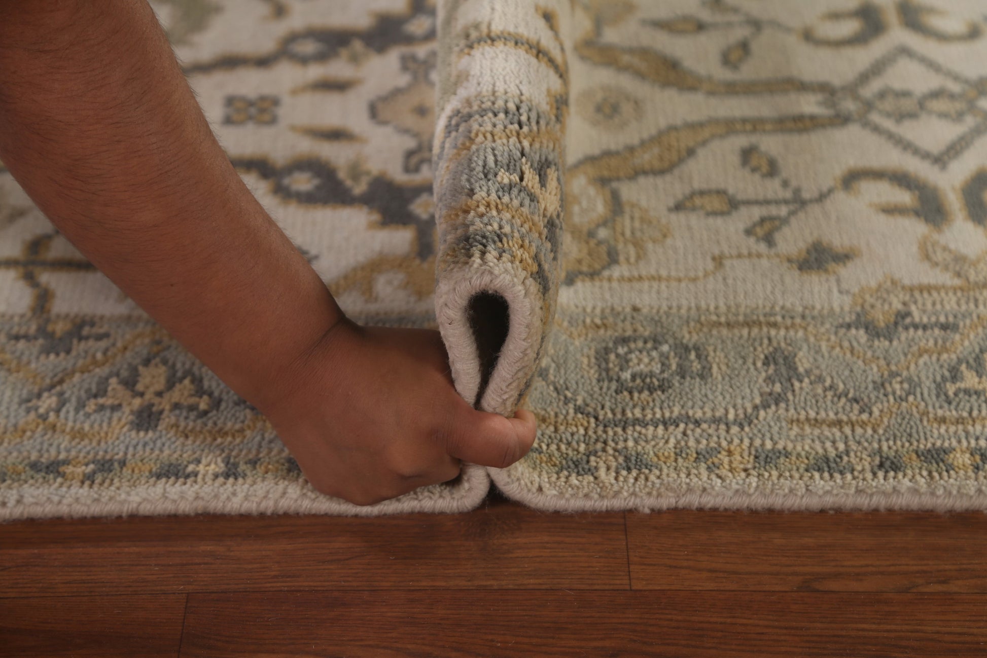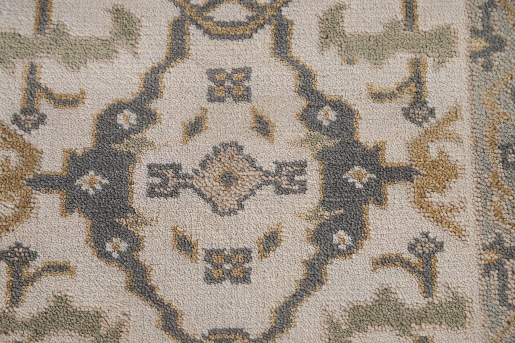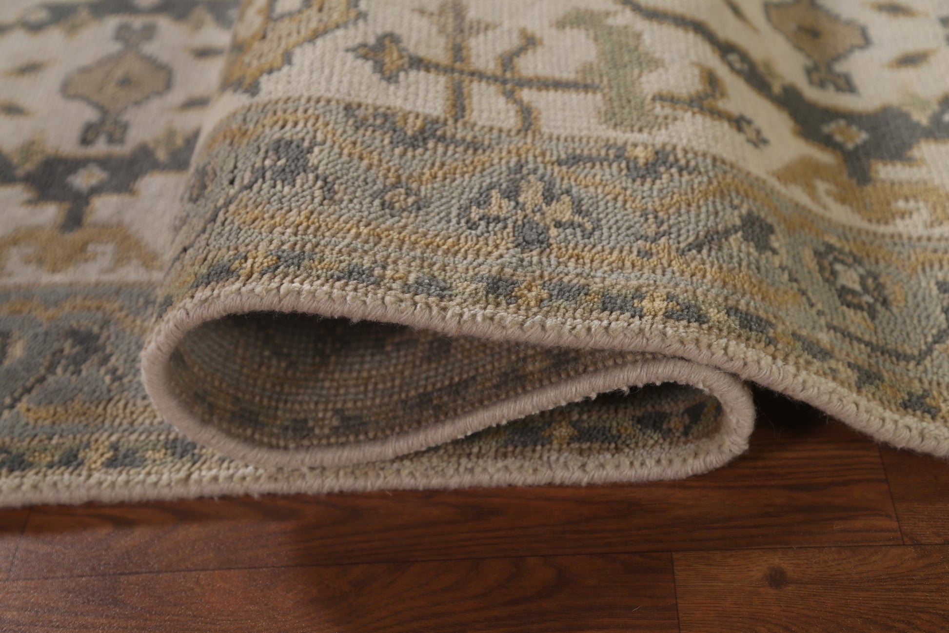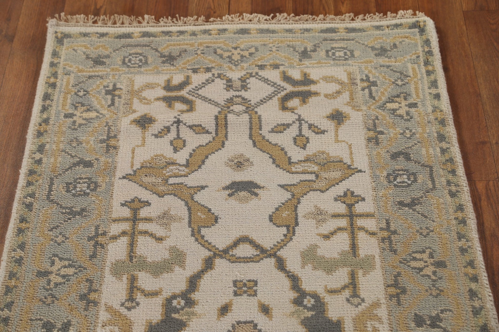 A Beautiful Genuine India Oushak rug is Hand Knotted by skillful weavers in India with 100% Wool Material. This rug is in New, First Quality condition. dimensions are 11' 6'' X 2' 5'' in foot and 351 X 74 in centimeter. the primary color is Beige & Ivories.