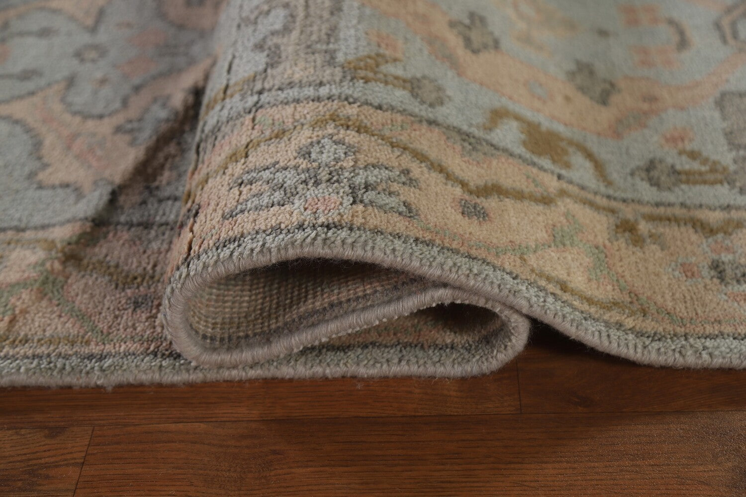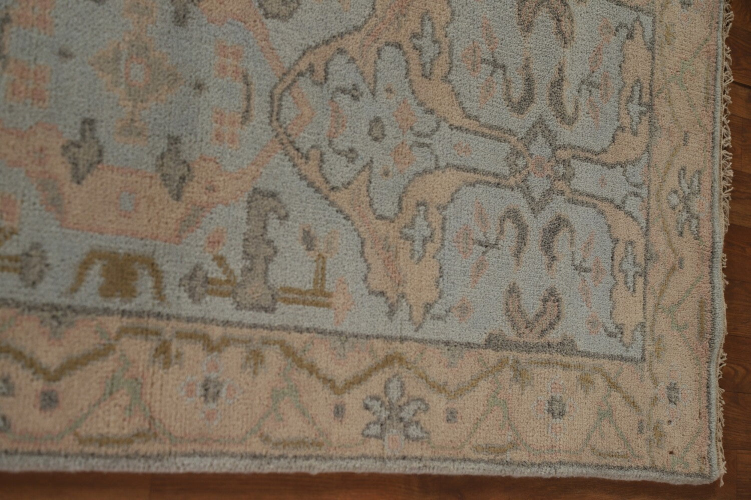 A Beautiful Genuine India Oushak rug is Hand Knotted by skillful weavers in India with 100% Wool Material. This rug is in New, First Quality condition. dimensions are 16' 0'' X 2' 8'' in foot and 488 X 81 in centimeter. the primary color is Navy Blue & Blues.