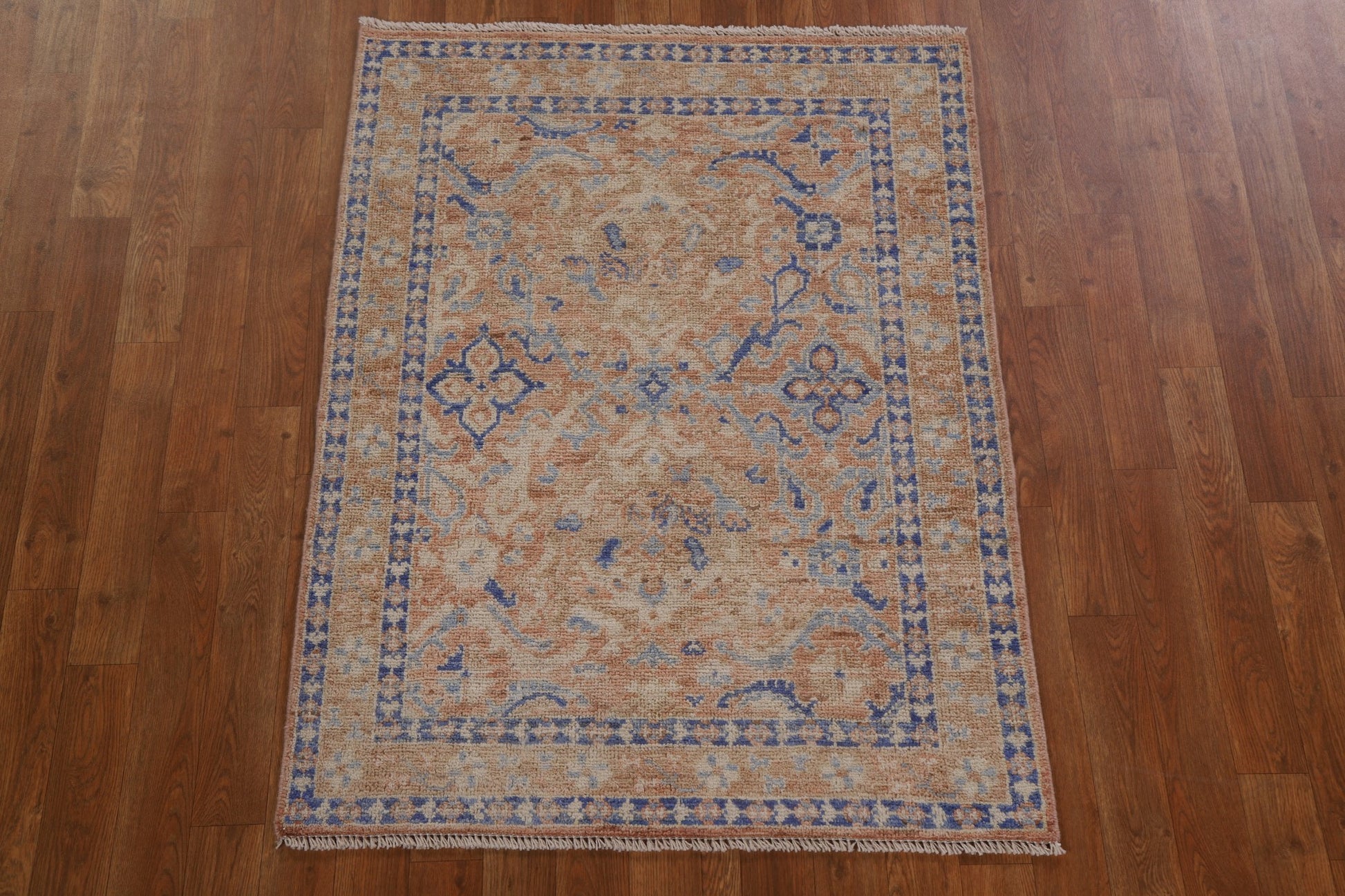 A Beautiful Genuine Turkey Oushak rug is Hand Knotted by skillful weavers in Turkey with 100% Wool Material. This rug is in New, First Quality condition. dimensions are 3' 11'' X 2' 11'' in foot and 119 X 89 in centimeter. the primary color is Oranges & Rust.