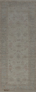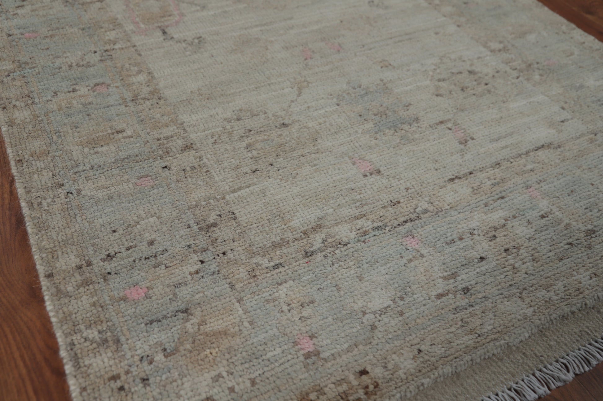 A Beautiful Genuine Turkey Oushak rug is Hand Knotted by skillful weavers in Turkey with 100% Wool Material. This rug is in New, First Quality condition. dimensions are 9' 10'' X 3' 1'' in foot and 300 X 94 in centimeter. the primary color is Beige & Ivories.